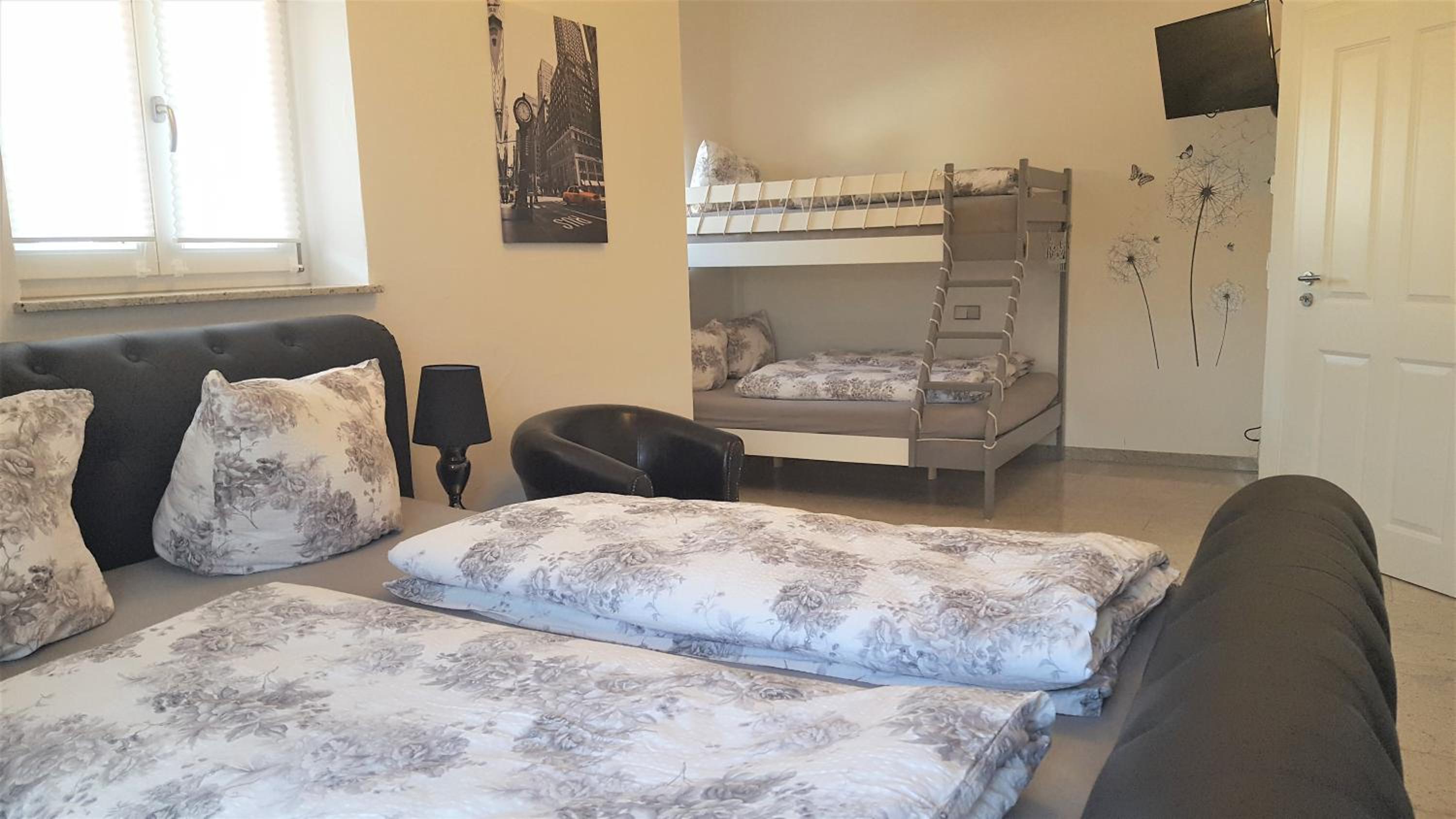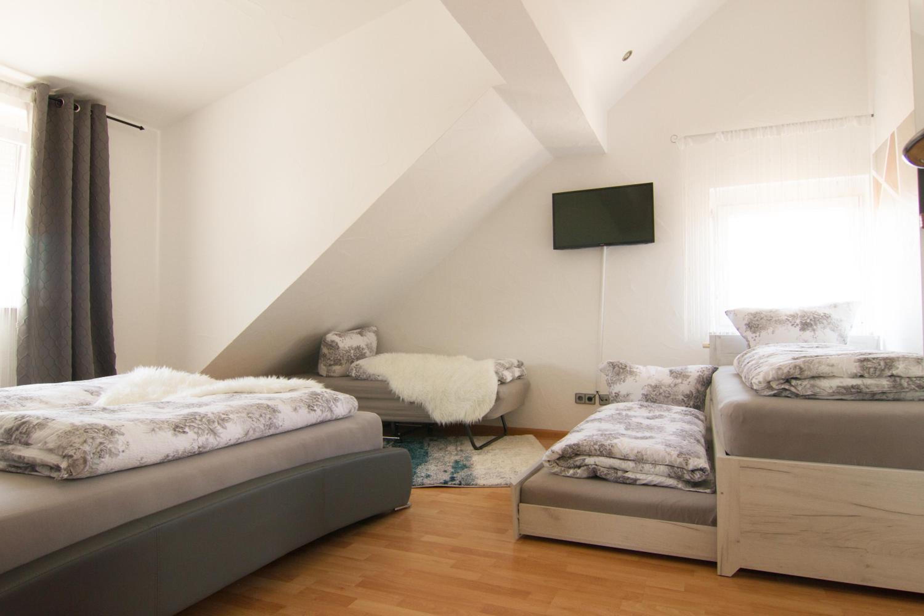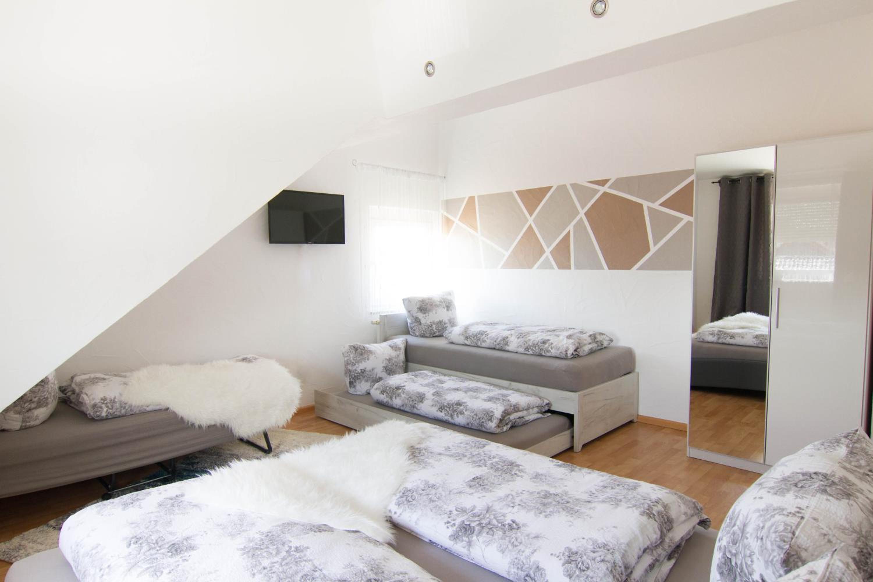 Nous avons eu le plaisir et la surprise d’être surclassés dans le grand appartement de l’établissement. Très grand, très bien équipé, climatisé, calme, à proximité d’europa-park. Idéal pour une famille nombreuse ou entre amis. Possibilité de prendre le petit déjeuner dans un autre établissement situé à proximité.