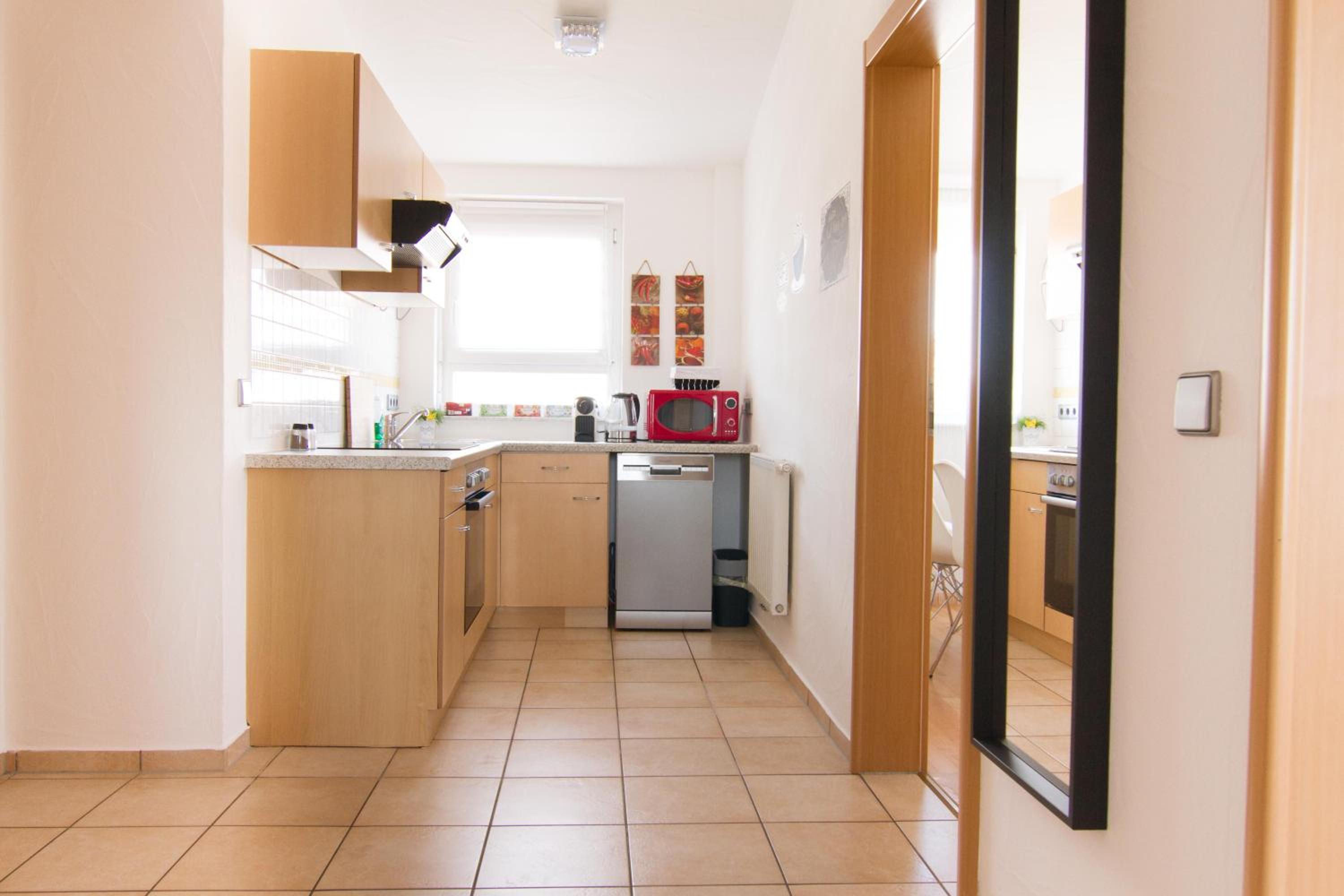 Convenient Amenities: Rust-Fewo offers free WiFi, a fully equipped kitchen with a dishwasher, and private bathrooms with complimentary toiletries.