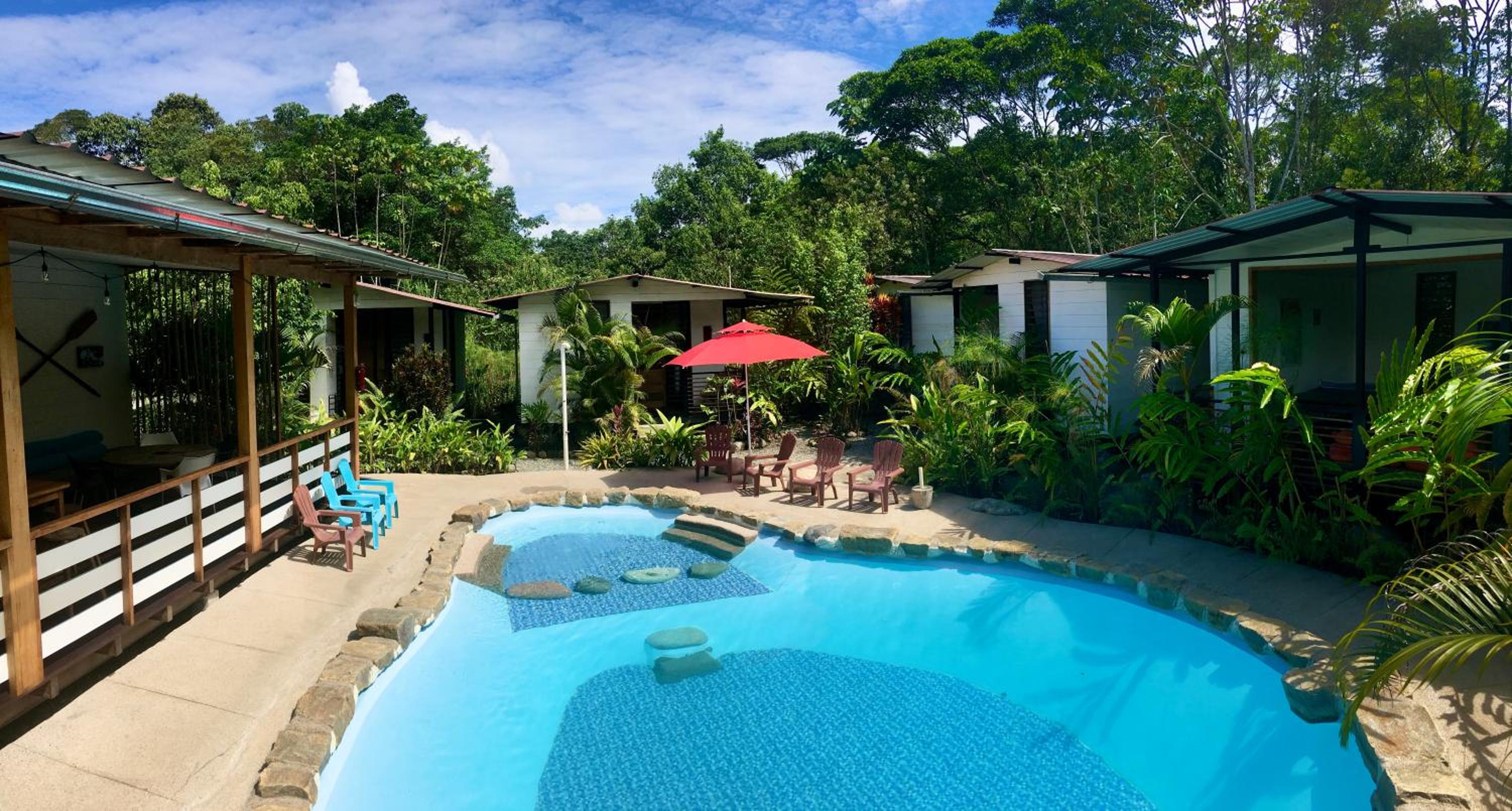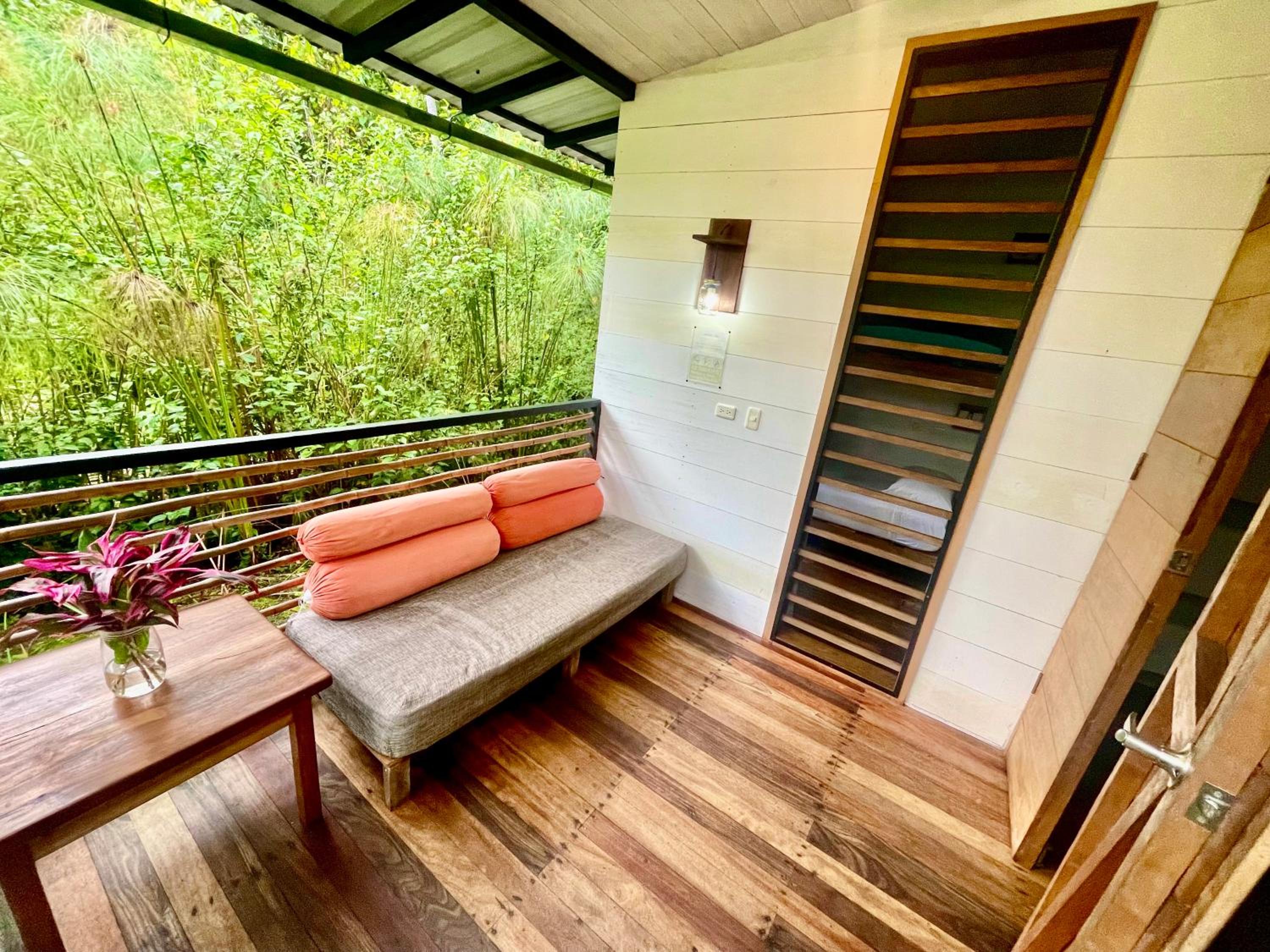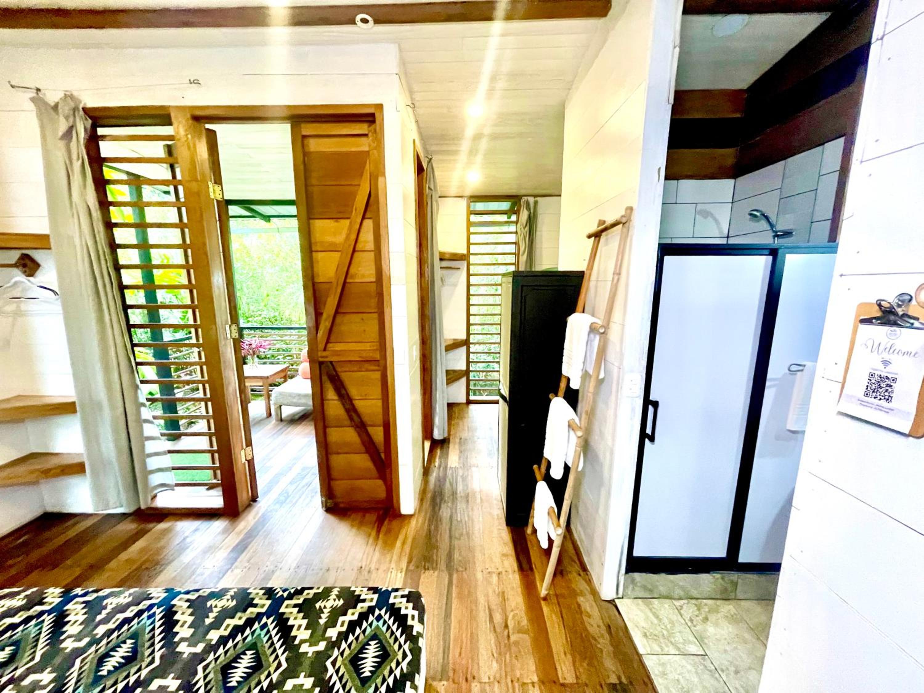 I lucked out and was the only one there the first night, so having the place all to my own was a bonus. The sounds of nature and the feeling of being out of the city noise were great. The acces to the bus stop and being near a river were a plus. The quality of the drinking water was superb. The cabins are very well decorated and the bed was amazing. Plenty of space and the setup of the property with all the plants, lounging area, and pool made the place feel very relaxing. I would have loved to stay longer.