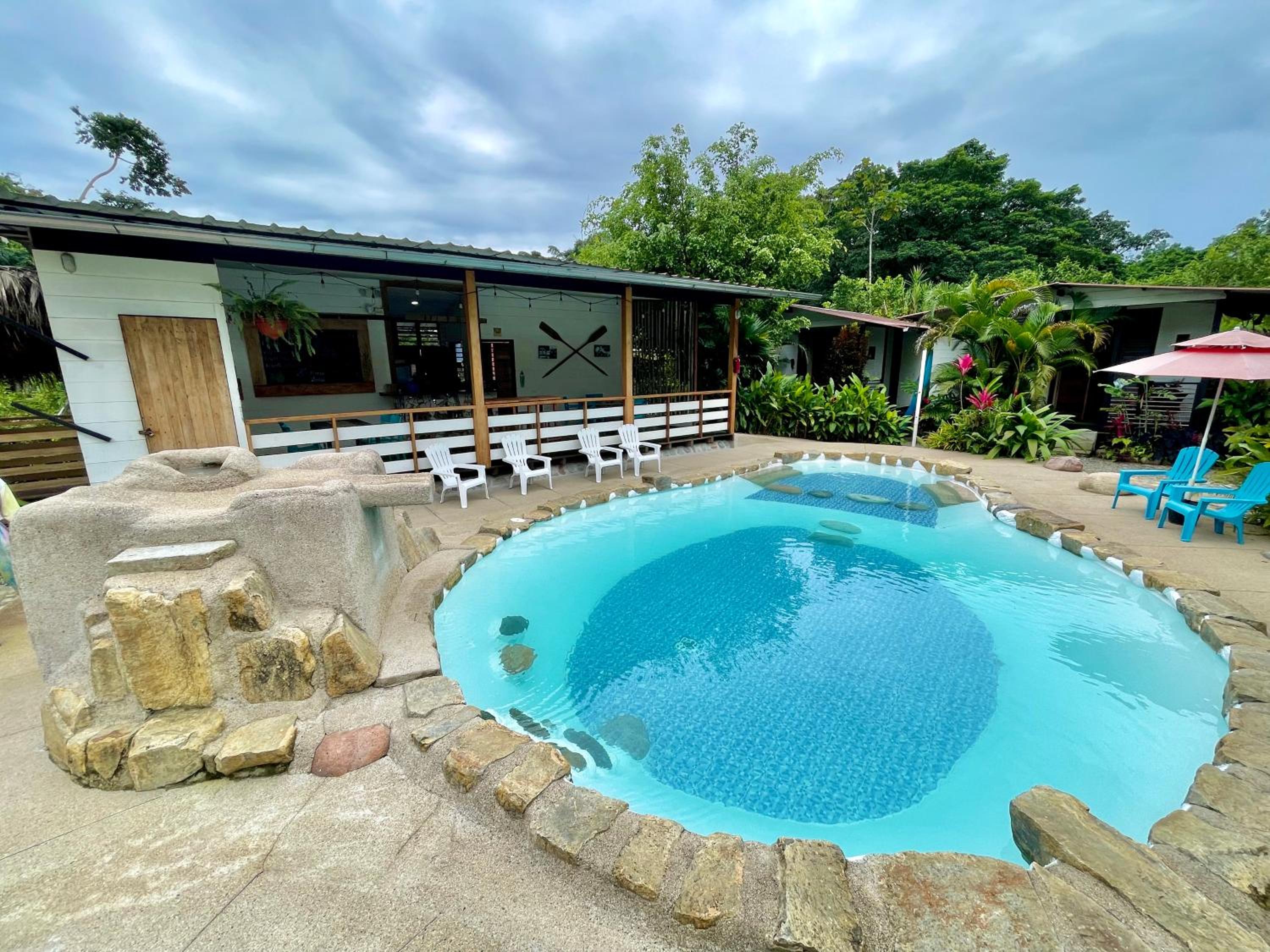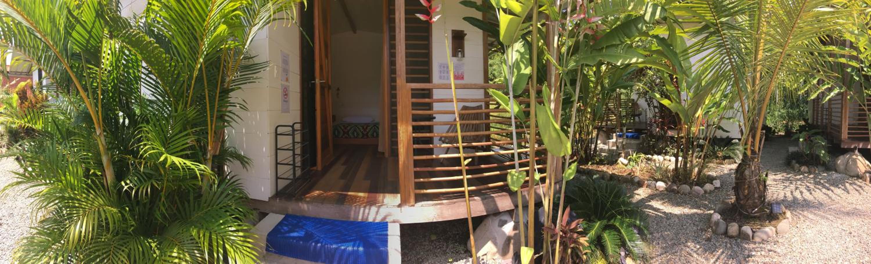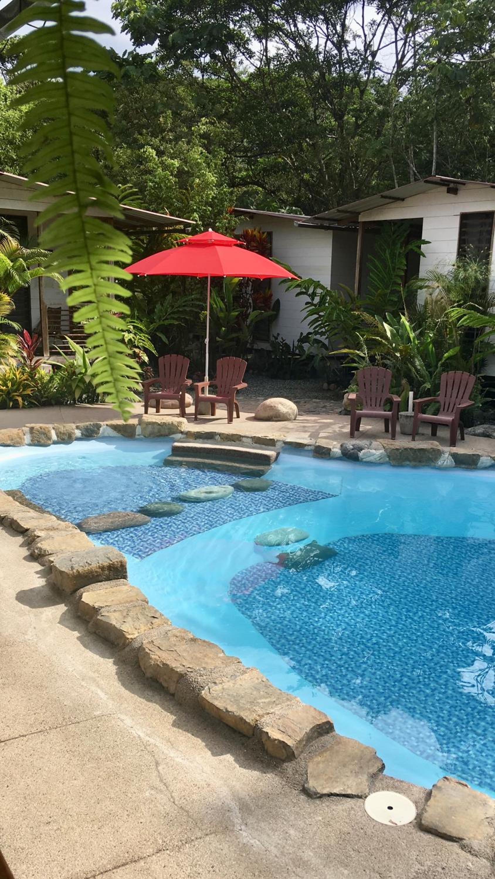 I lucked out and was the only one there the first night, so having the place all to my own was a bonus. The sounds of nature and the feeling of being out of the city noise were great. The acces to the bus stop and being near a river were a plus. The quality of the drinking water was superb. The cabins are very well decorated and the bed was amazing. Plenty of space and the setup of the property with all the plants, lounging area, and pool made the place feel very relaxing. I would have loved to stay longer.