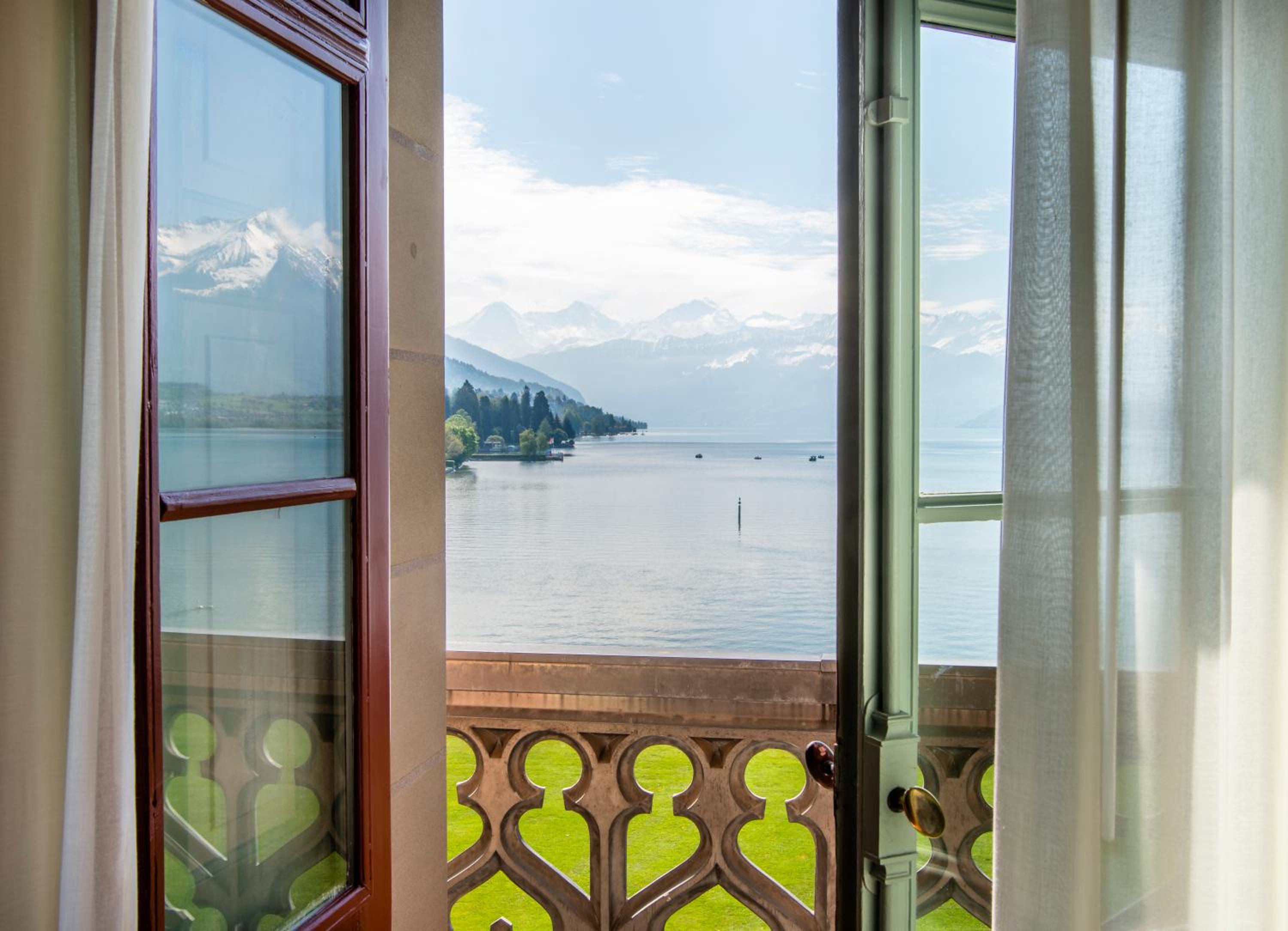 Schloss Schadau - Swiss Historic Hotel in Thun offers elegant rooms with modern amenities like flat-screen TVs, private bathrooms, and stunning views of the mountains from select rooms. Guests can unwind in comfort with plush bed linens and complimentary toiletries provided.