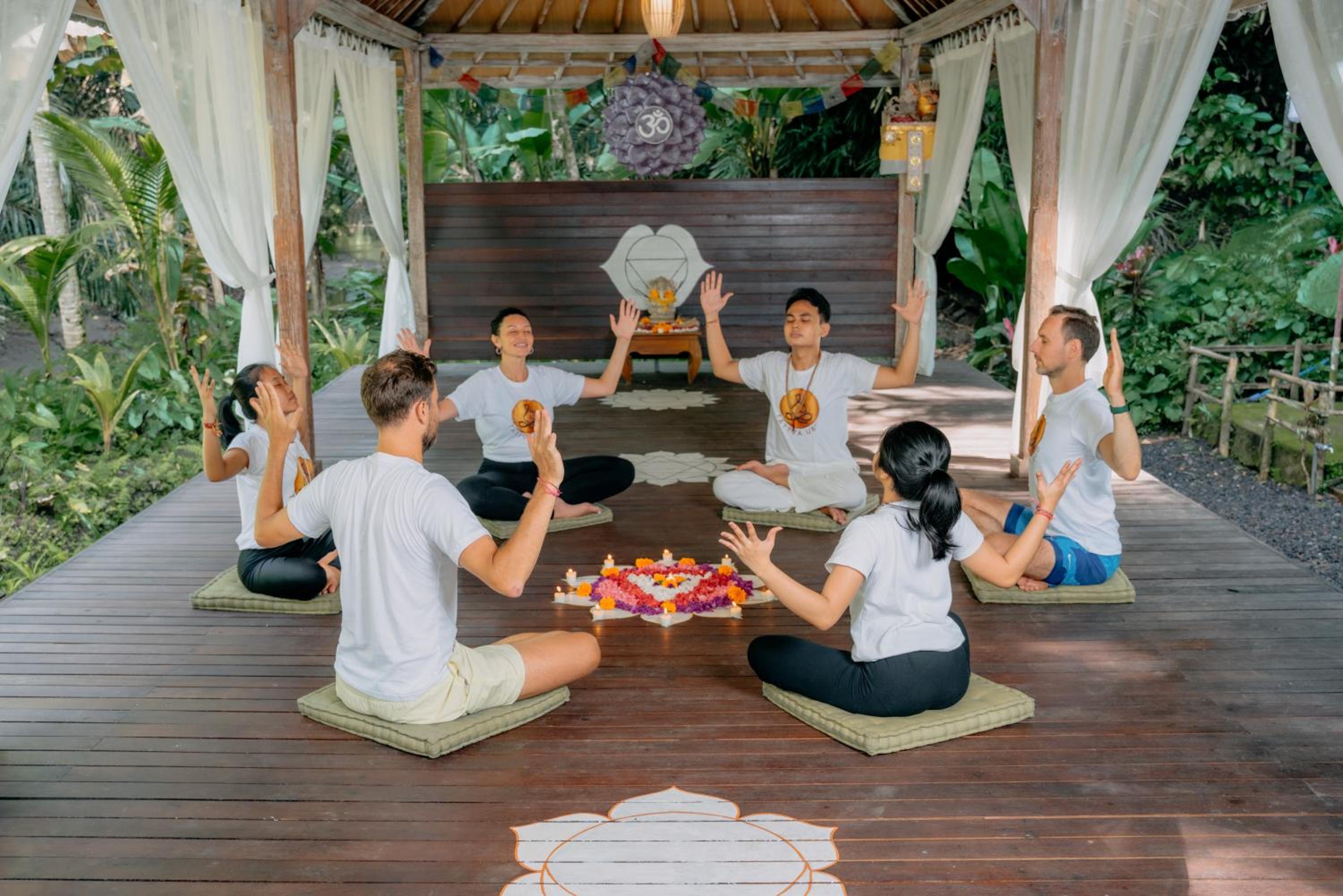 The activities offered: Yoga, water purification blessing, massage, somatic therapy, and floating breakfast.