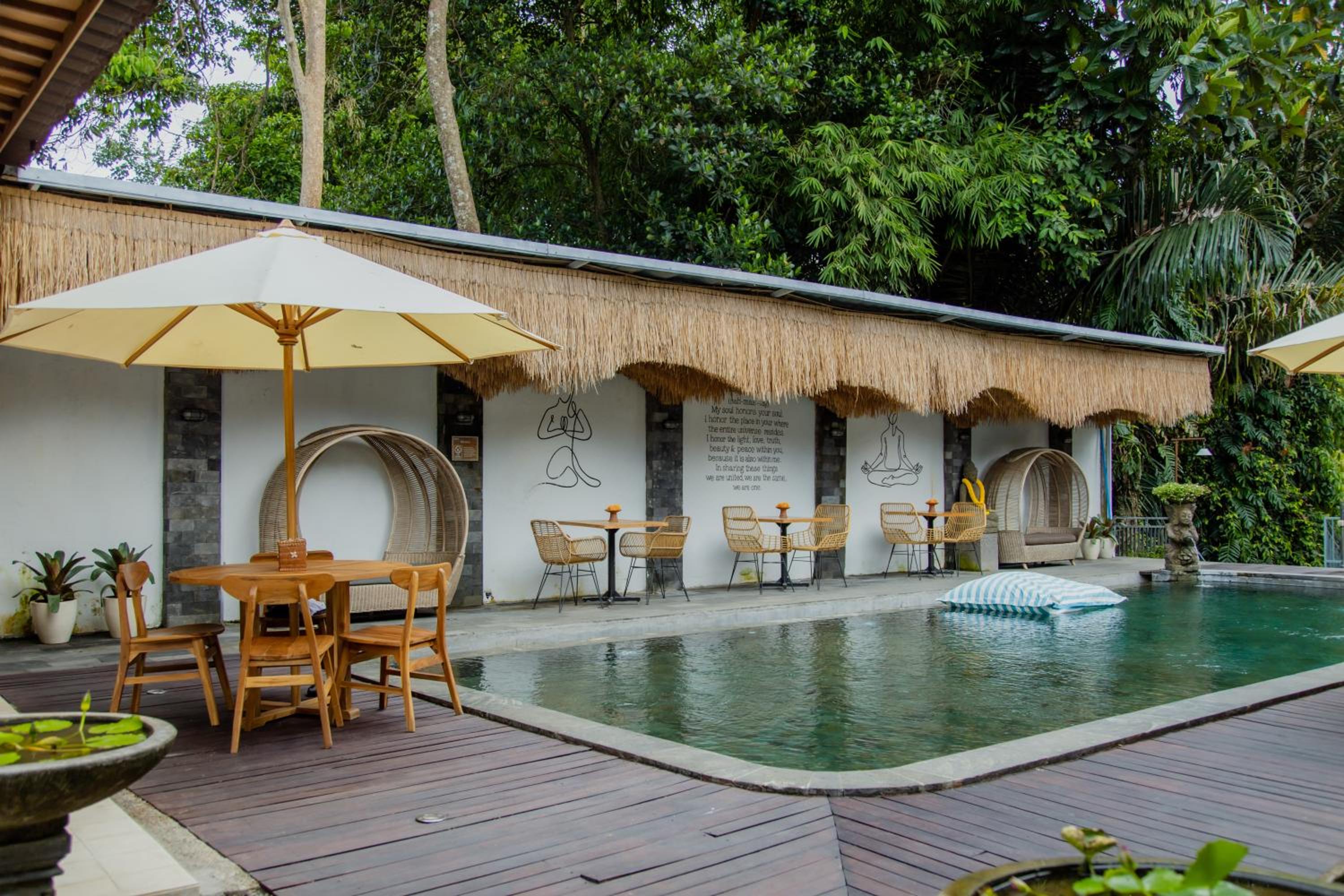 The place was quiet and relaxing, good pool and space for yoga down the river. We hadn’t booked any yoga class or messages as their massage room is quite small. We were actually interested in a more high end Spa close by. Good experience overall!