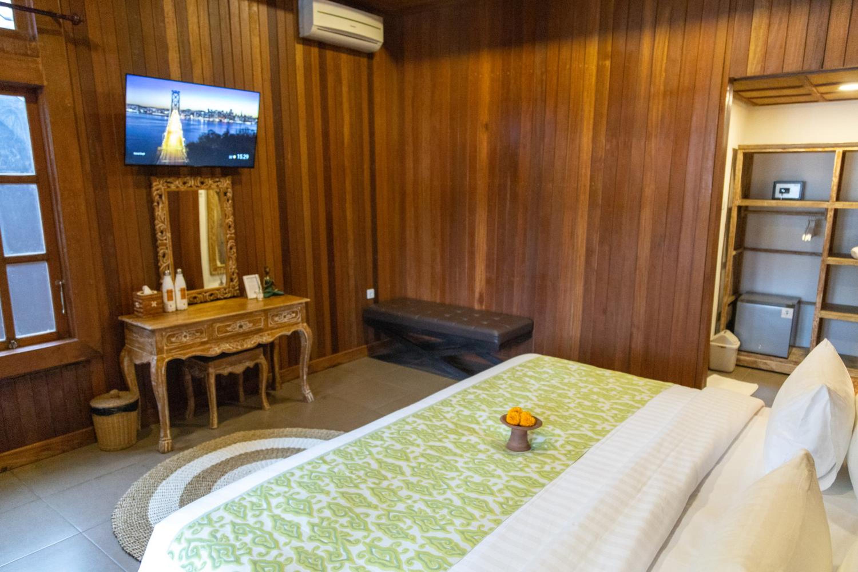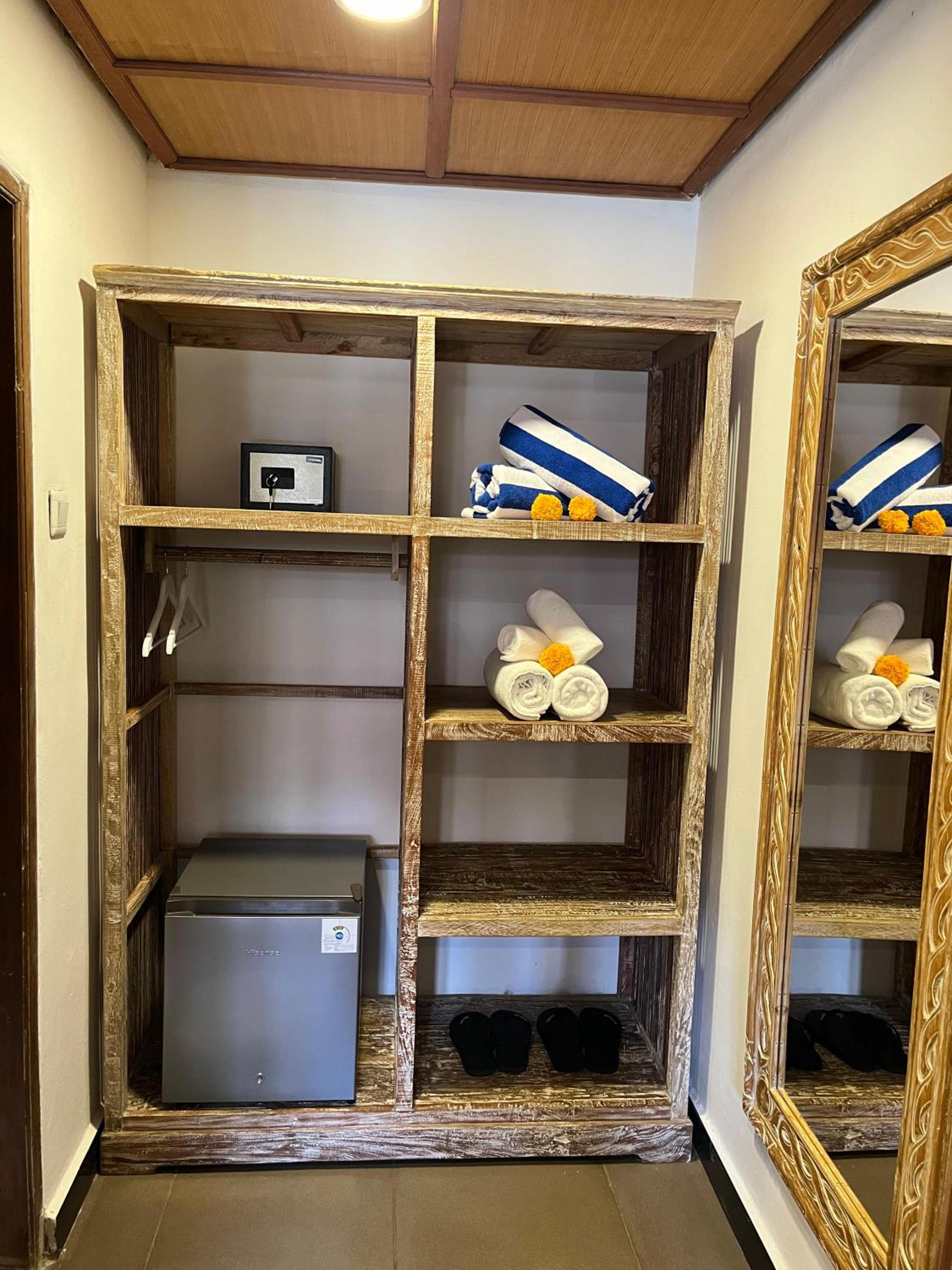 Very disappointed with this hotel and do not recommend it. We don’t have incredibly high standards for hotels especially ones that are on the cheap end but we do expect our rooms to be cleaned and the amenities to look like their pictures. This hotel advertises itself to be very beautiful but we were shocked and incredibly disappointed to find the room to be dirty, bugs on the floor and in the bed, holes in the shower wall and floor, a dirty bath mat, damage and uncleanliness to baseboards. We asked the receptionist to clean the floor and change our bath mat. She ended up with a dust pan full of dirt and trash. We were so horrified we knew that our 4 night stay was not going to be worth it. We ended up finding a different hotel to stay at that night and for the reminder of our time in Ubud. Also the location was far from Ubud city center and in a place that taxis struggled to find. Don’t waste your time and money at this hotel.