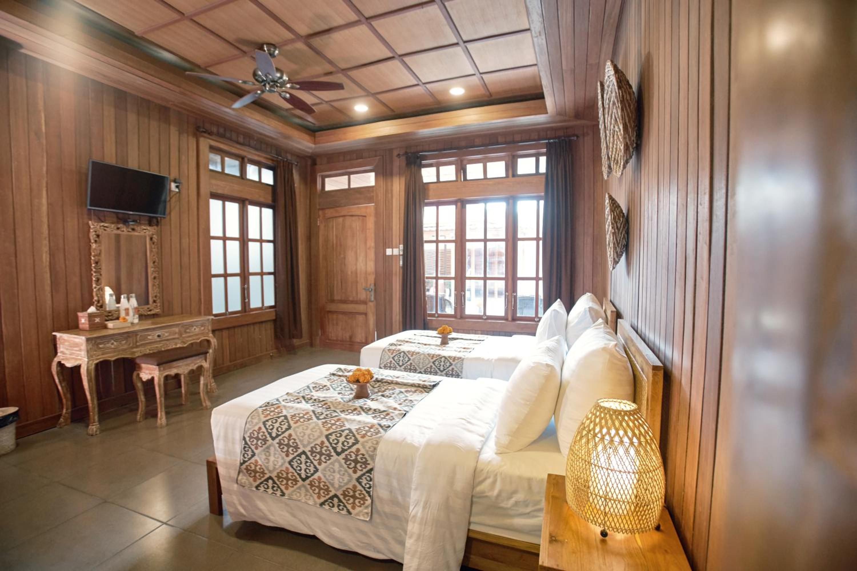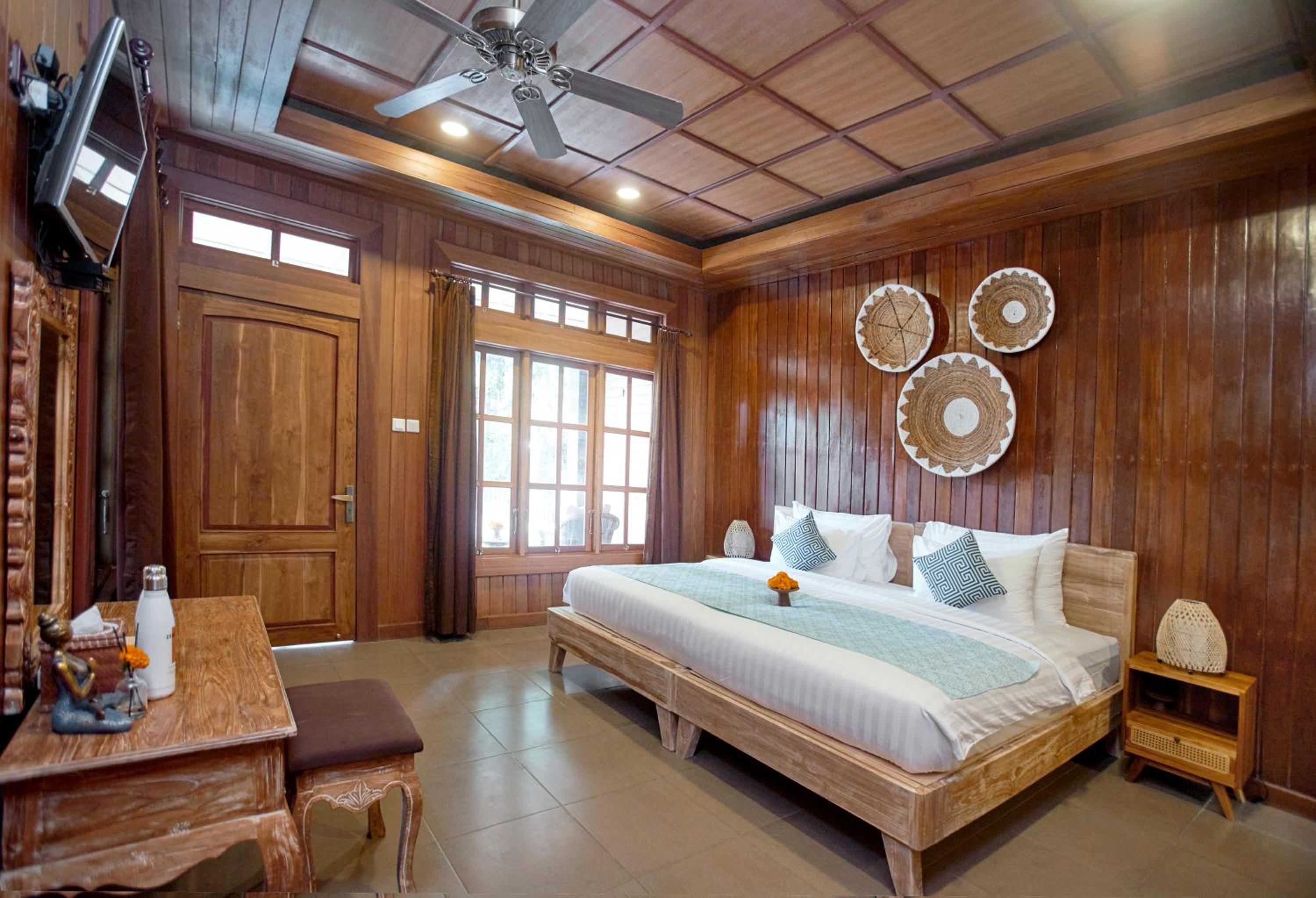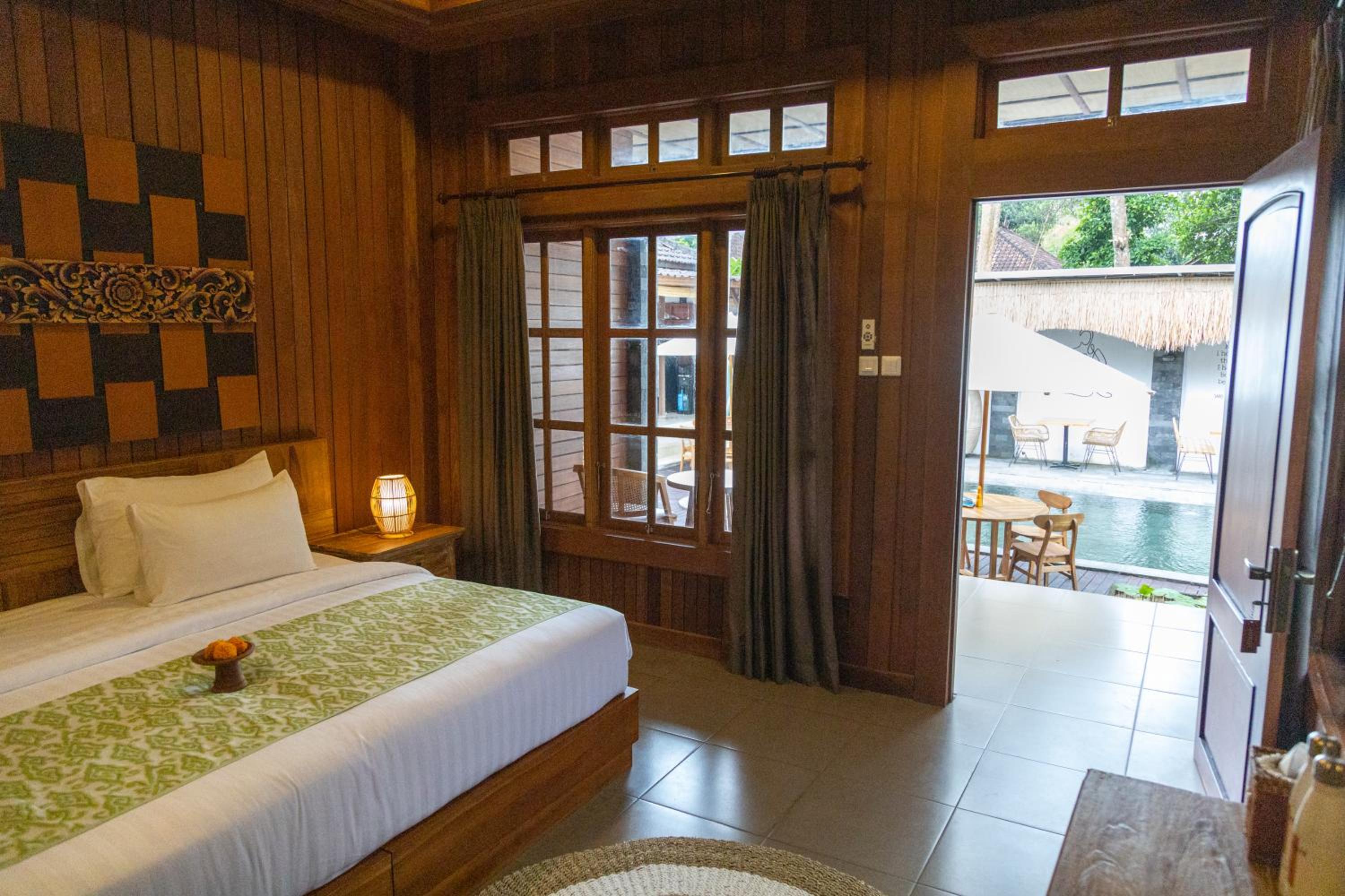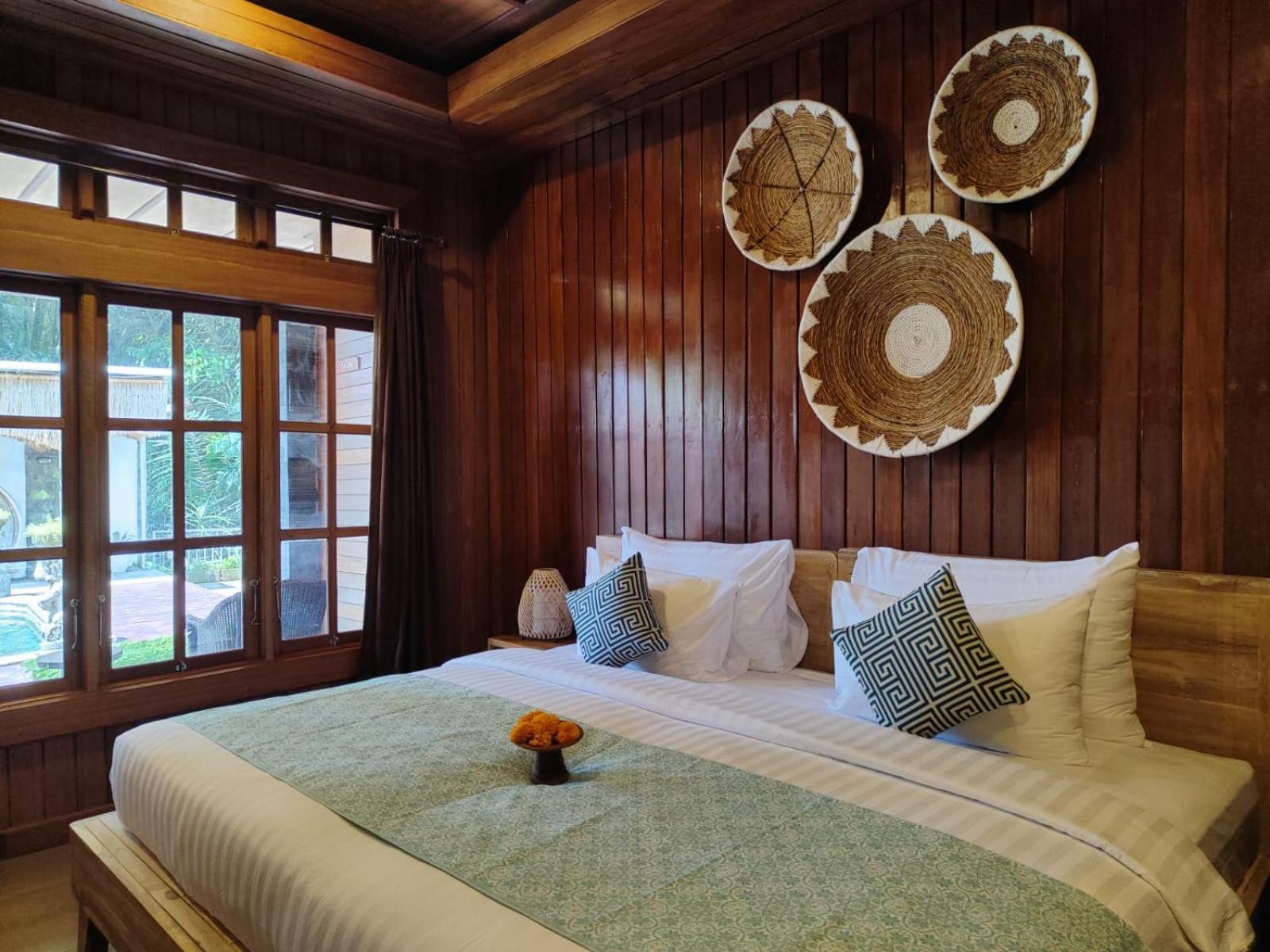 The river, temples, flora, spacious room and pool.