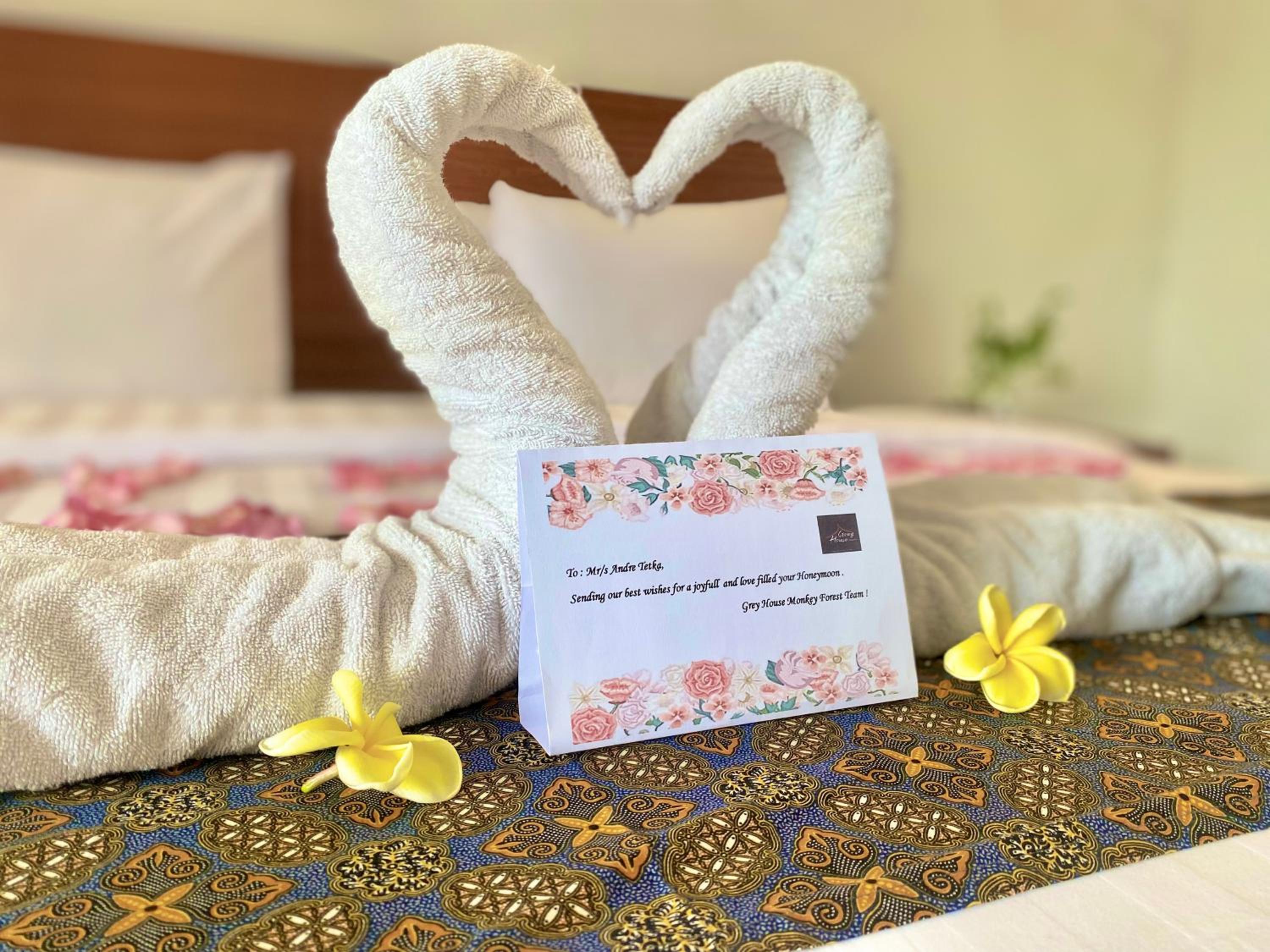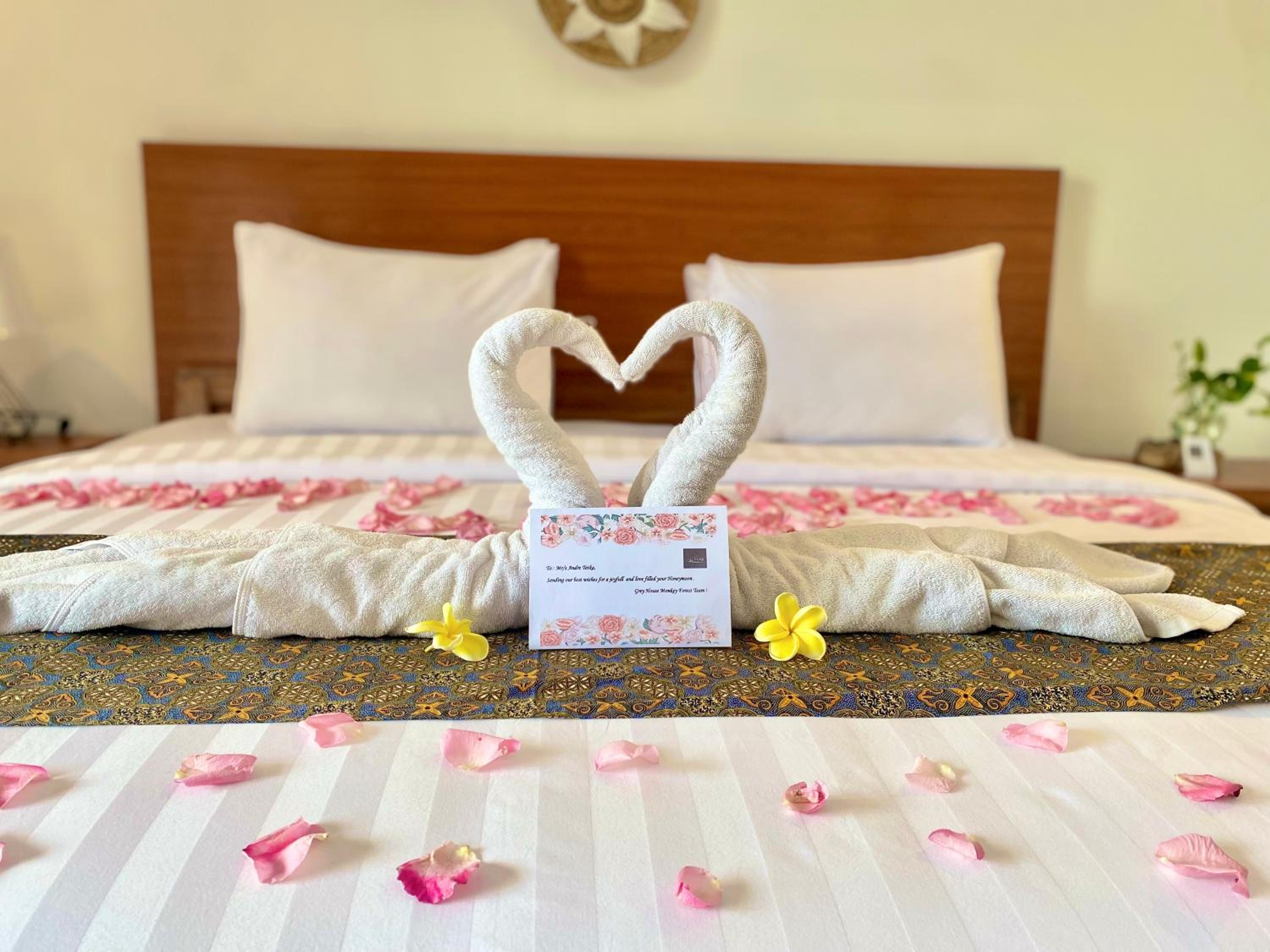 Chic Accommodations: Experience air-conditioned rooms with flat-screen TVs, private bathrooms, and cozy bed linens at Grey House Monkey Forest. Some rooms even boast balconies and city views for a touch of luxury.