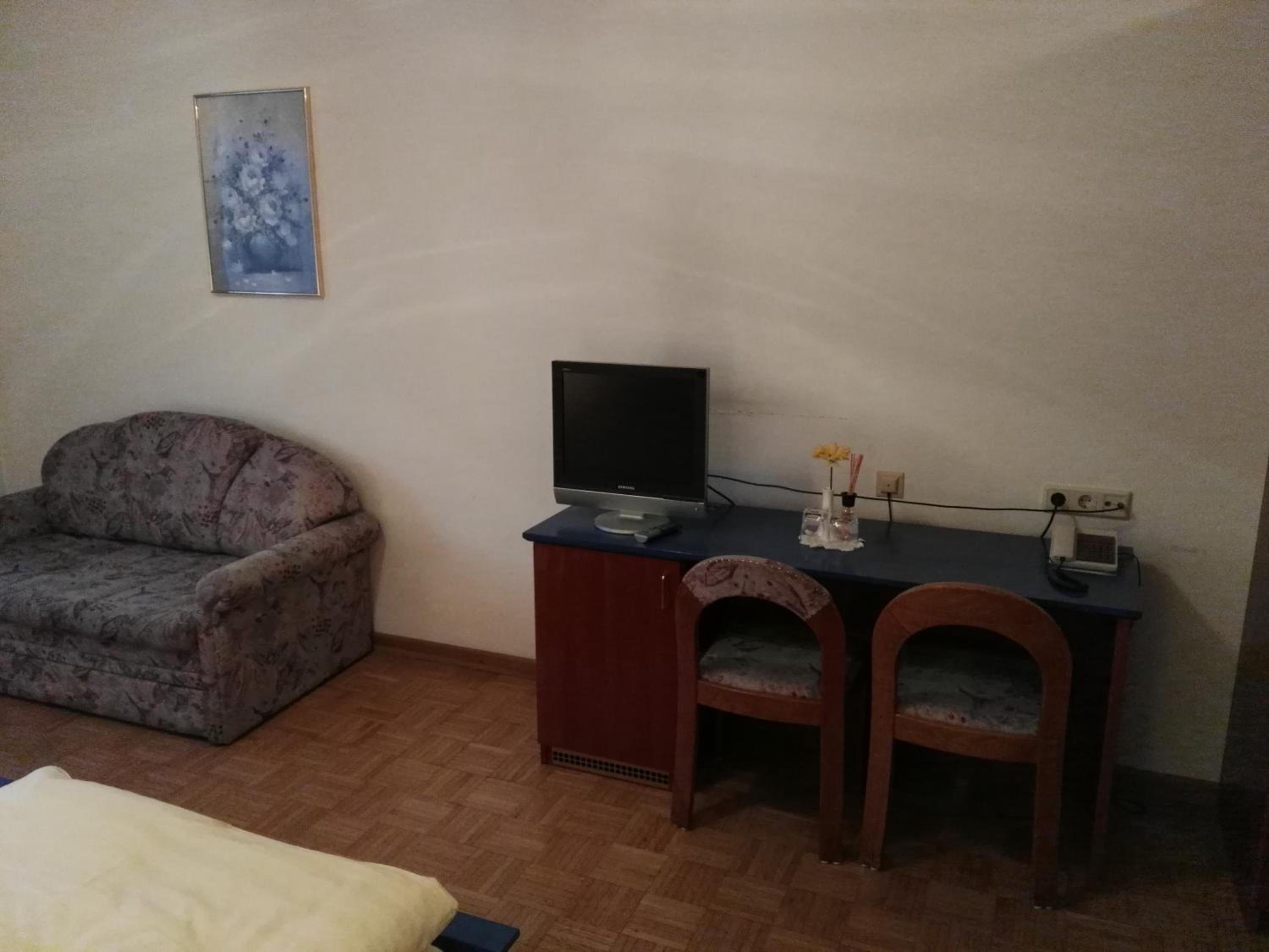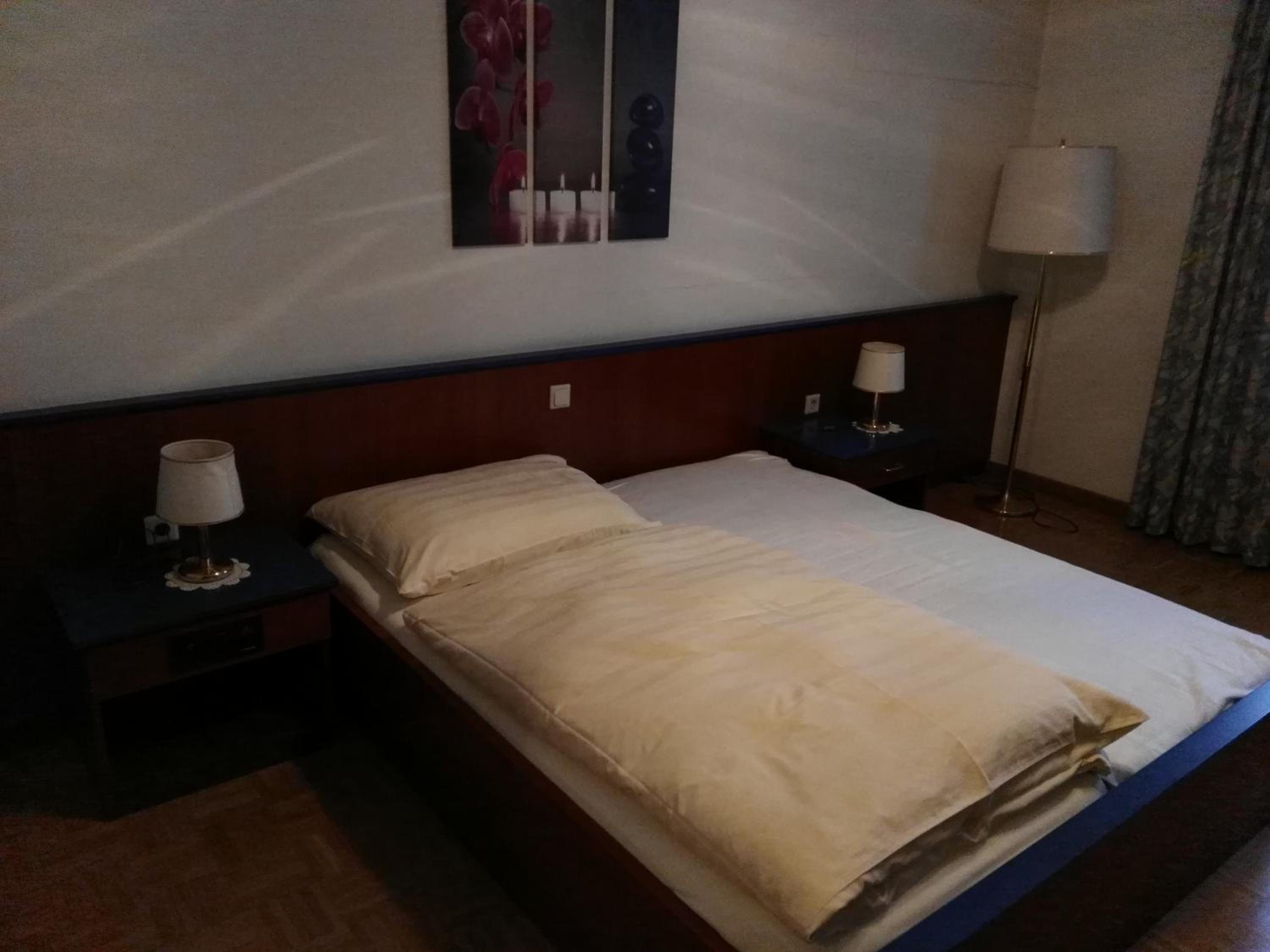 Muffiger Geruch, nicht zusammenpassende Bettwäsche (weder Polster- und Deckenüberzug noch Leintuch passten zusammen), Möbel sehr alt, Matratze noch eine alte Federkernmatratze, extrem weich, abends noch viel los im Lokal des Hotels, aufgrund der Hitze musste man jedoch das Fenster offen lassen. Abdunkeln war nicht möglich wirklich möglich.