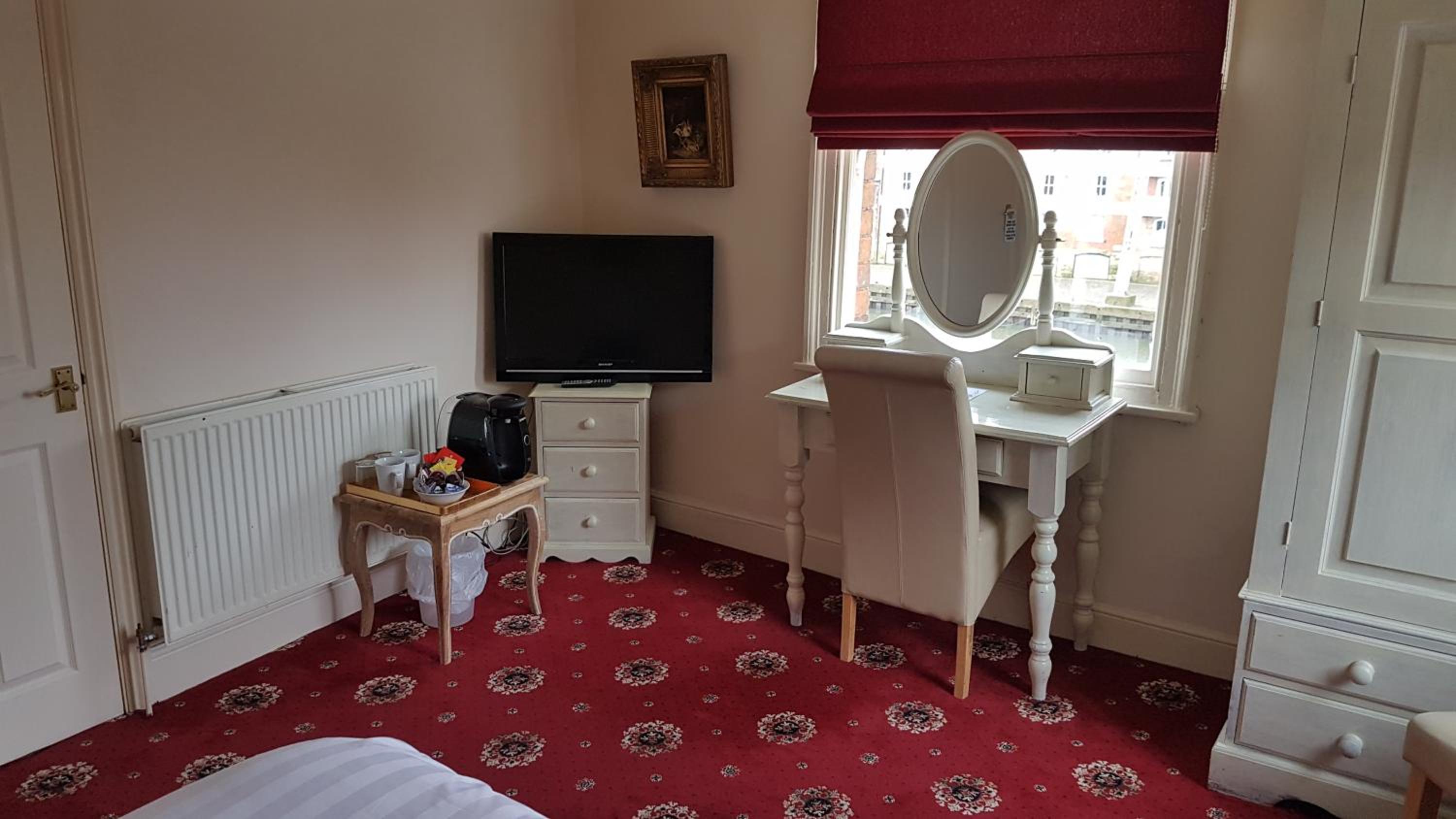 Room was in poor condition for the deluxe one I booked, looking slightly worn and needs some TLC, 2 kettles in room, hairdryer didn’t work. Wall light not secure with wires exposed. Bed very hard. No access to Lils for breakfast due to river bursting banks again.