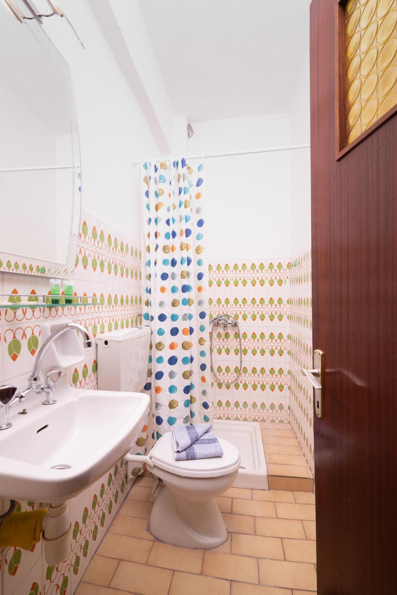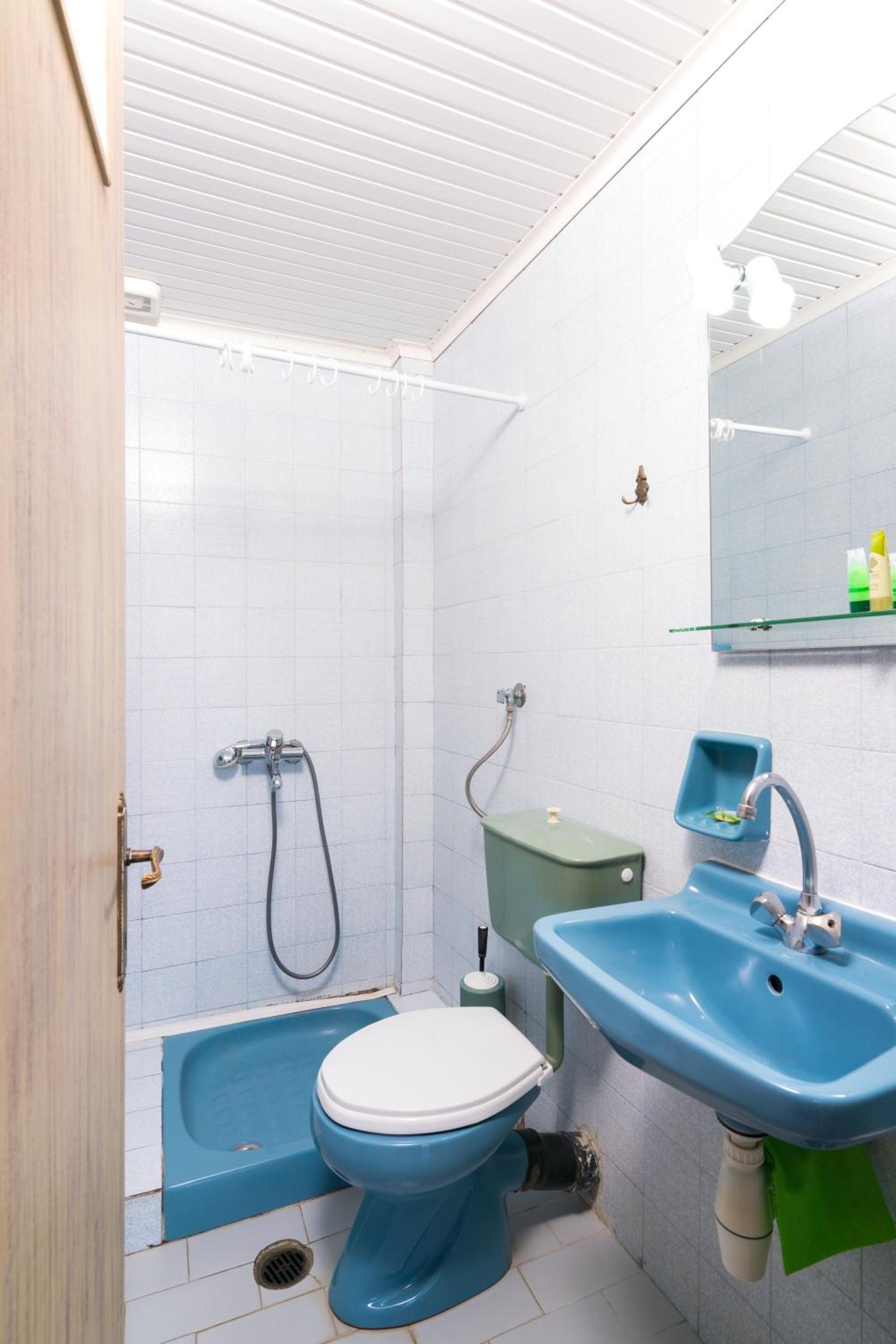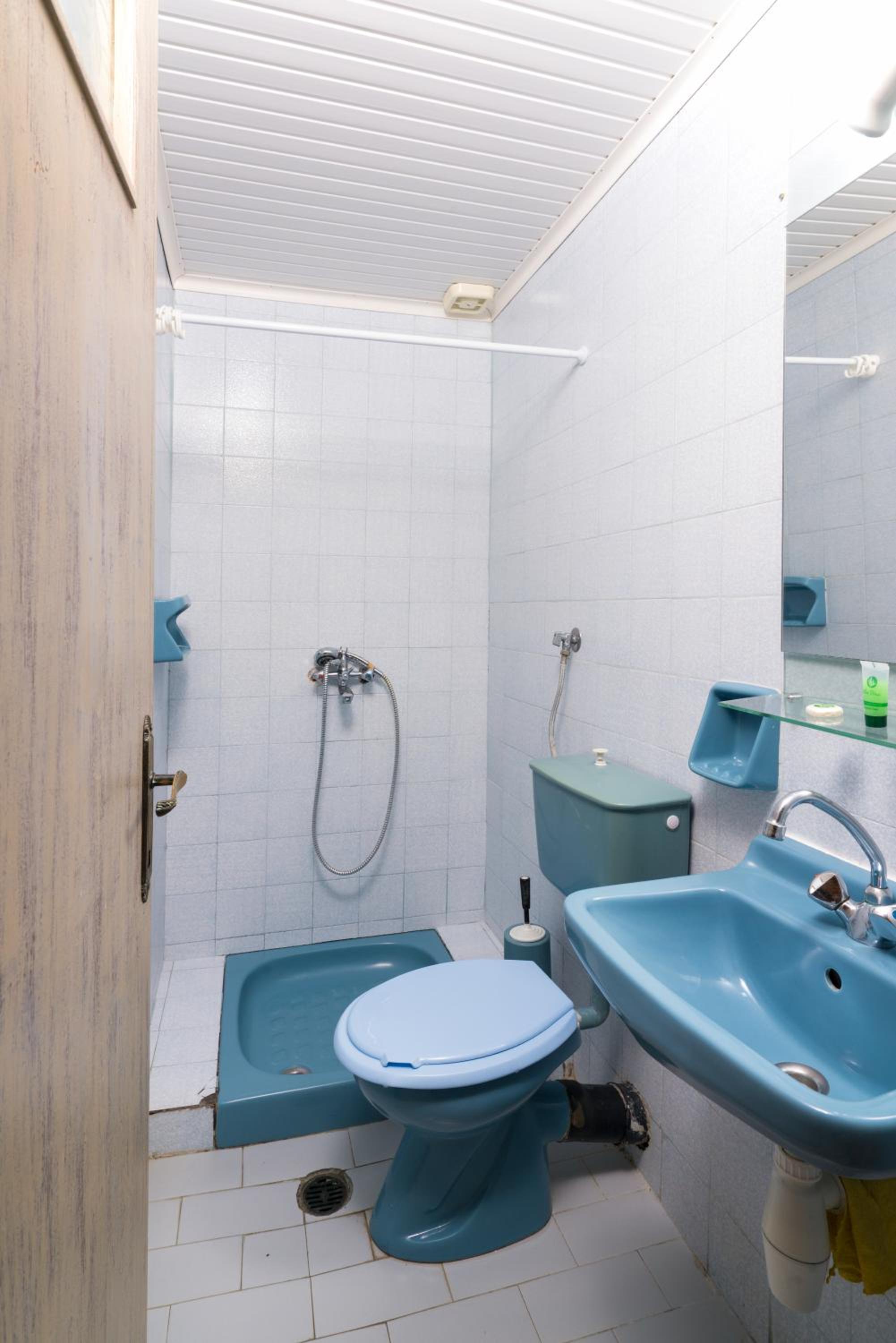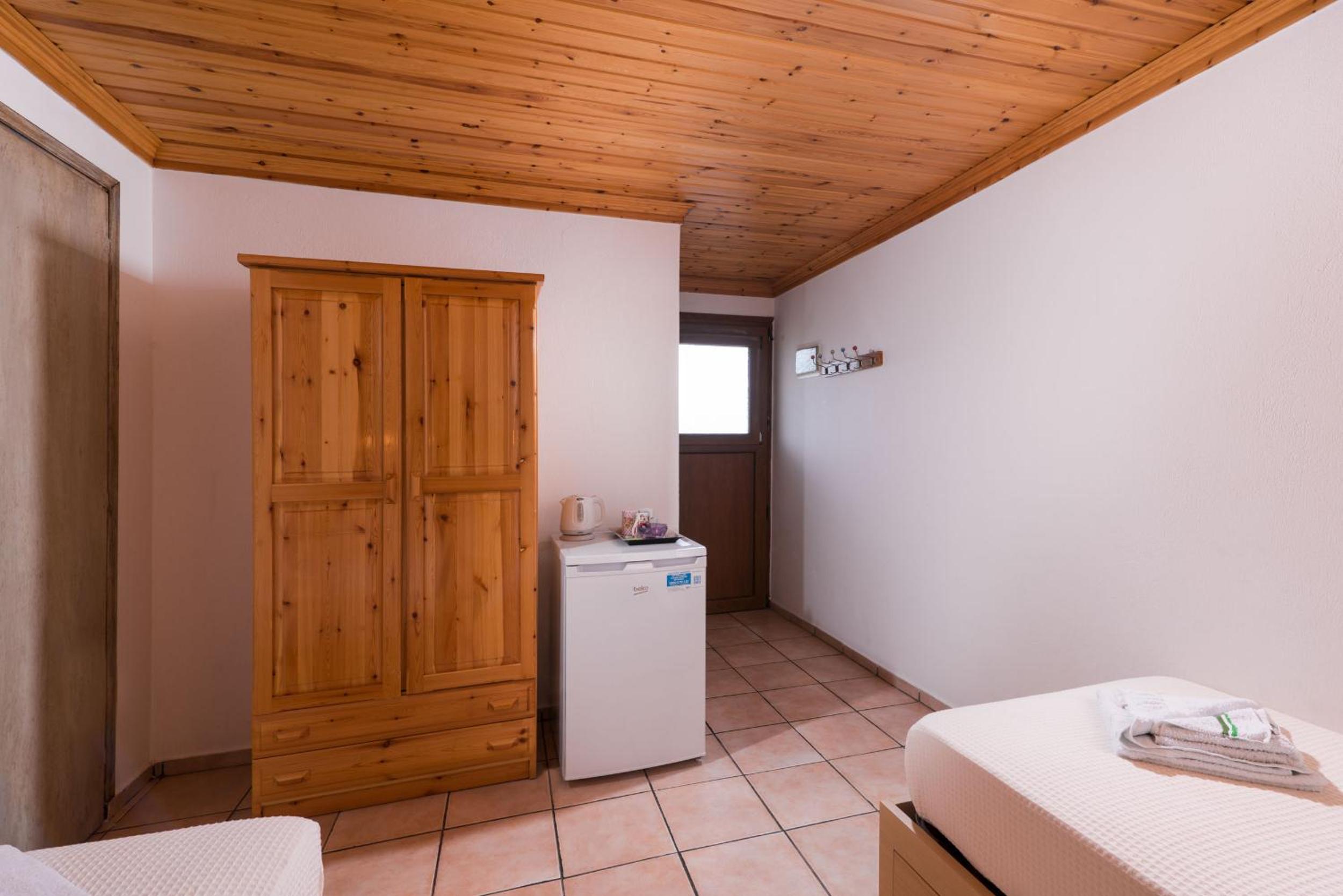 Nu este pt pretentiosi. Baia f mica ,cu gresie si faianta f veche. Usa de la baie foarte veche si murdara..Clima era veche,perdeaua din geaam parea murdara sau poate era doar f veche. Tot in camera pare vechi. Usa de la camera nu se poate deschide ziua ca intra viespi. Pe terasa nu poti sa stai sa iei o gustare ca vin viespile. La plaja de langa cazare este f greu accesul. Am fost doar in prima zi. Plaja Aliki este putin mai departe si se merge cu masina dar este f aglomerata. Paradise beach este la cativa km si am profitat de asta. Pretul pe noapte mi se pare prea mare pt conditiile pe care le ofera.