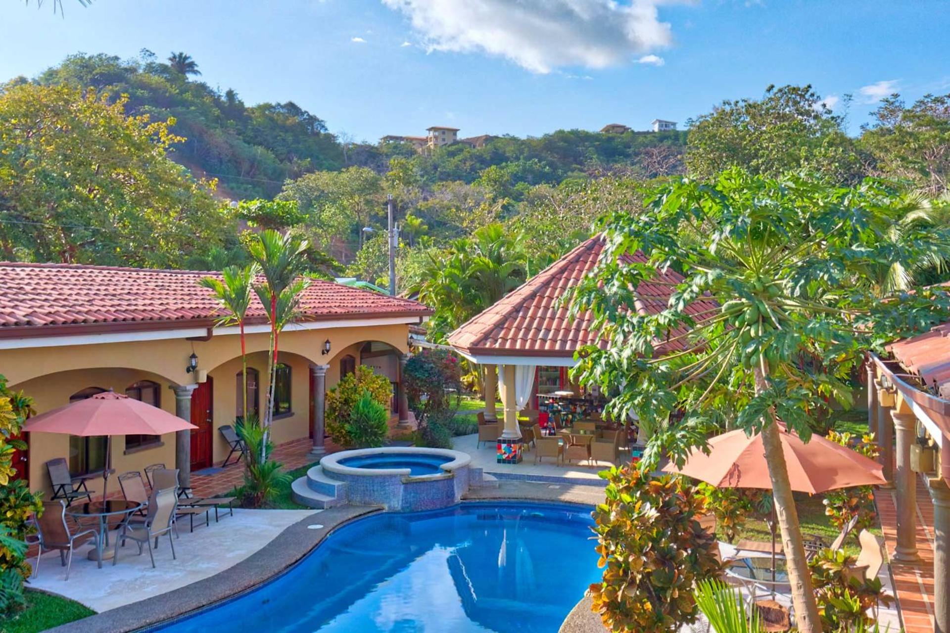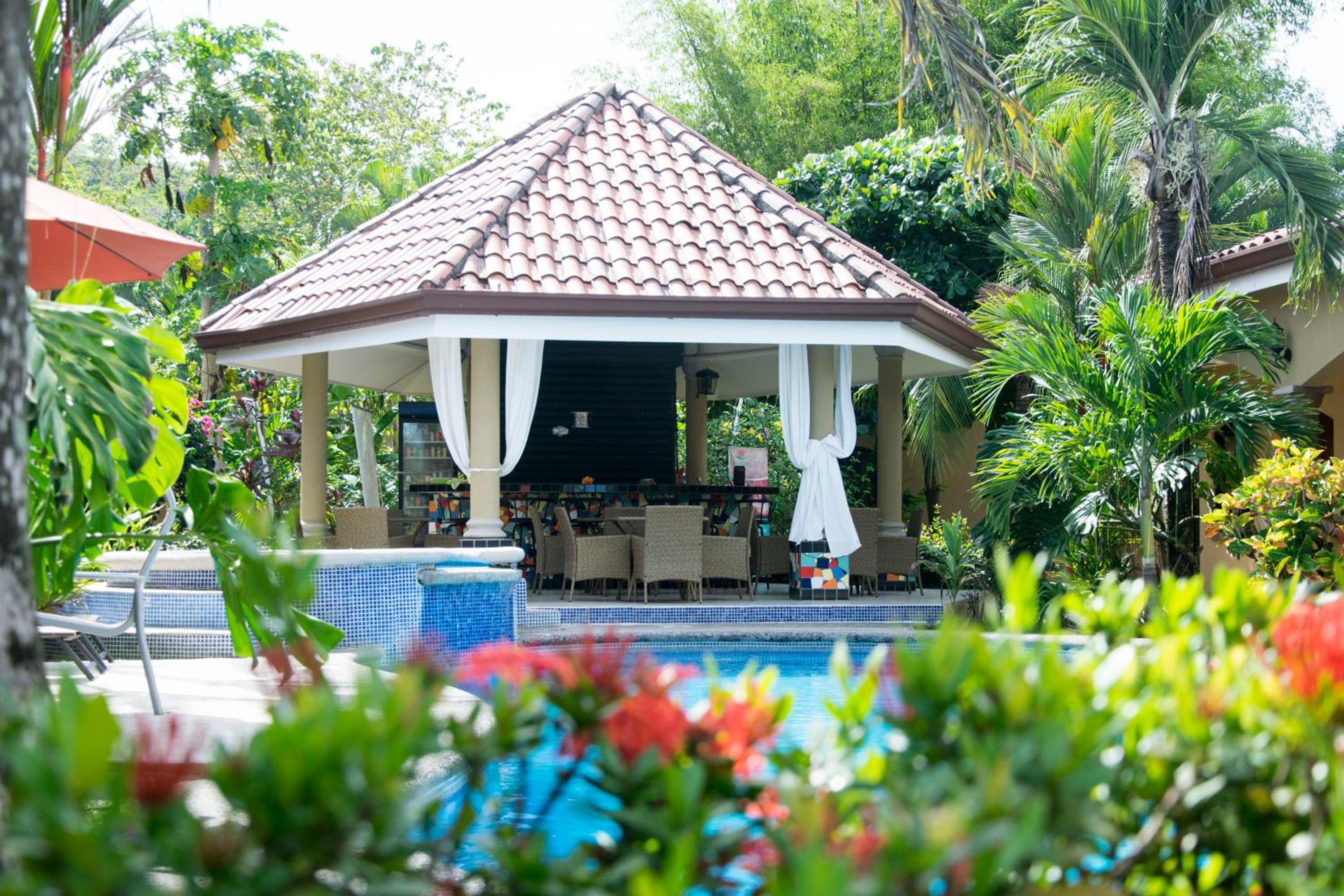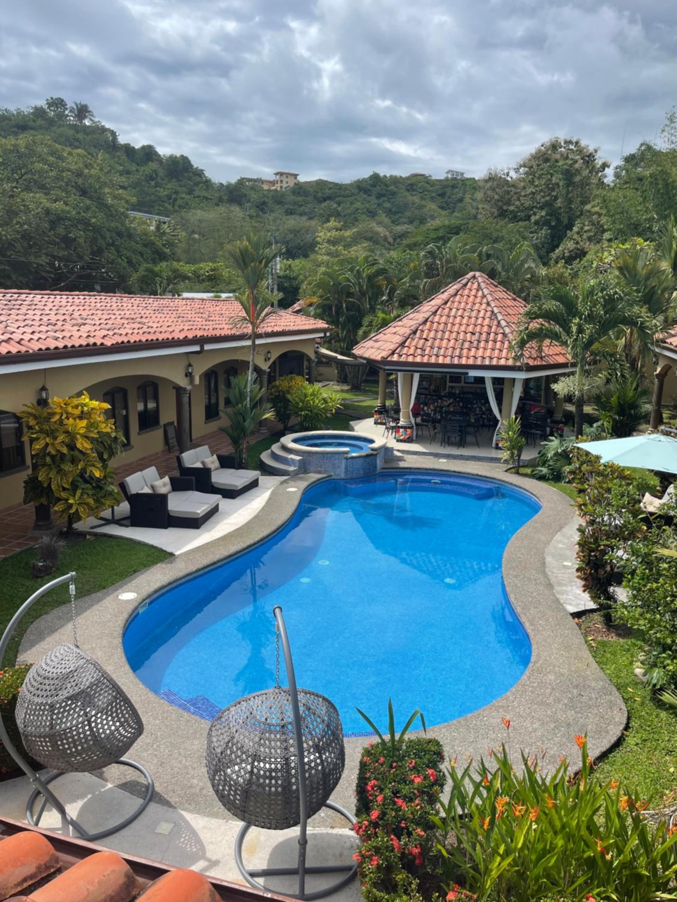 Tan bonito como se ve en las fotos. La piscina y jardín son muy bonitos. Todo el personal muy amable y atento. La comida era buena, fresca, recién preparada. Instalaciones limpias. La habitación cómoda, buen tamaño, tenía refrigerador y microondas. Hay varios árboles y se ven y escuchan pájaros todo el día. Está cerca de Playa Hermosa, pero no se escucha ruido. Tiene pocas habitaciones, entonces el ambiente se mantiene tranquilo. La opción de late check-out es genial.