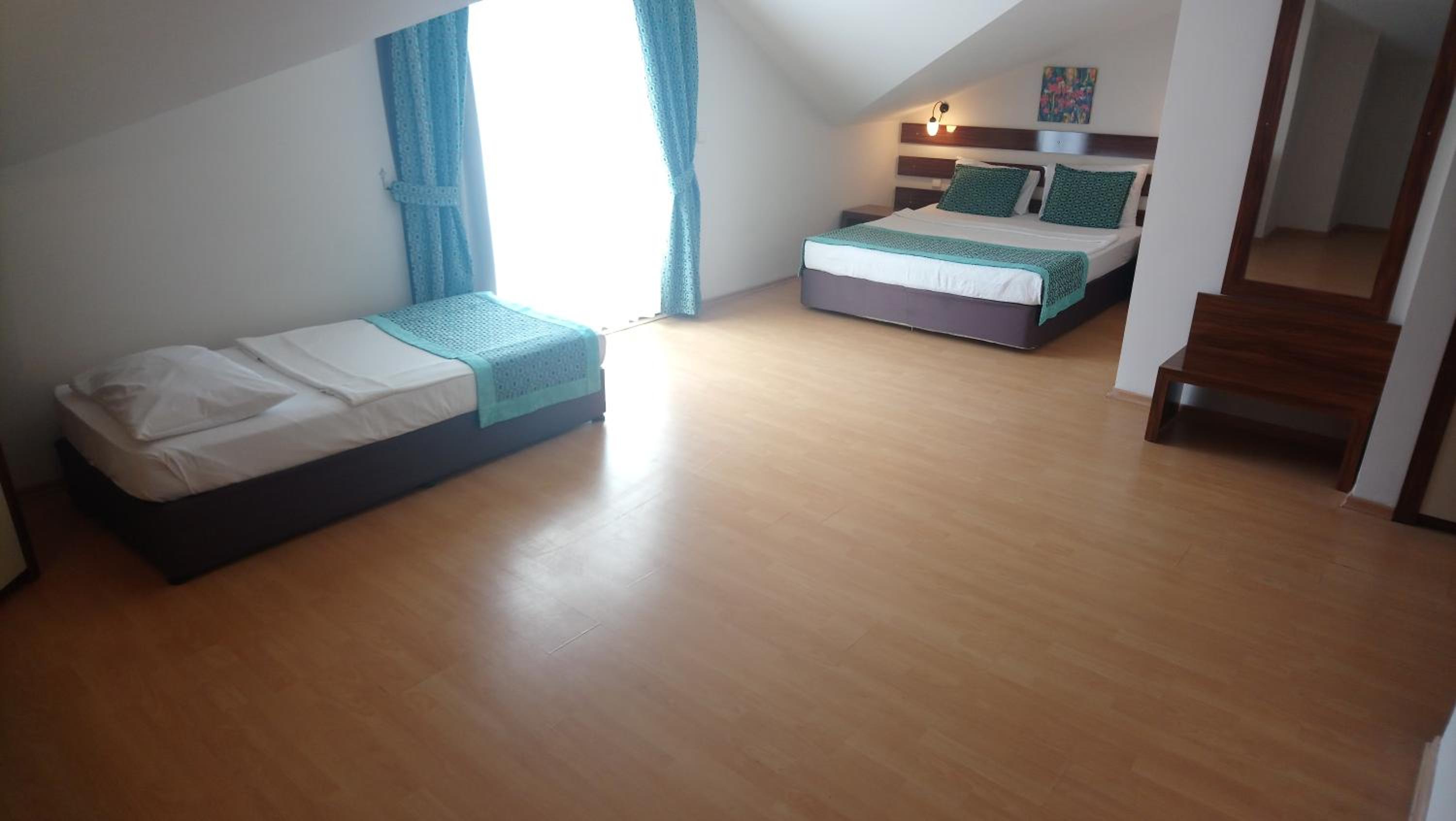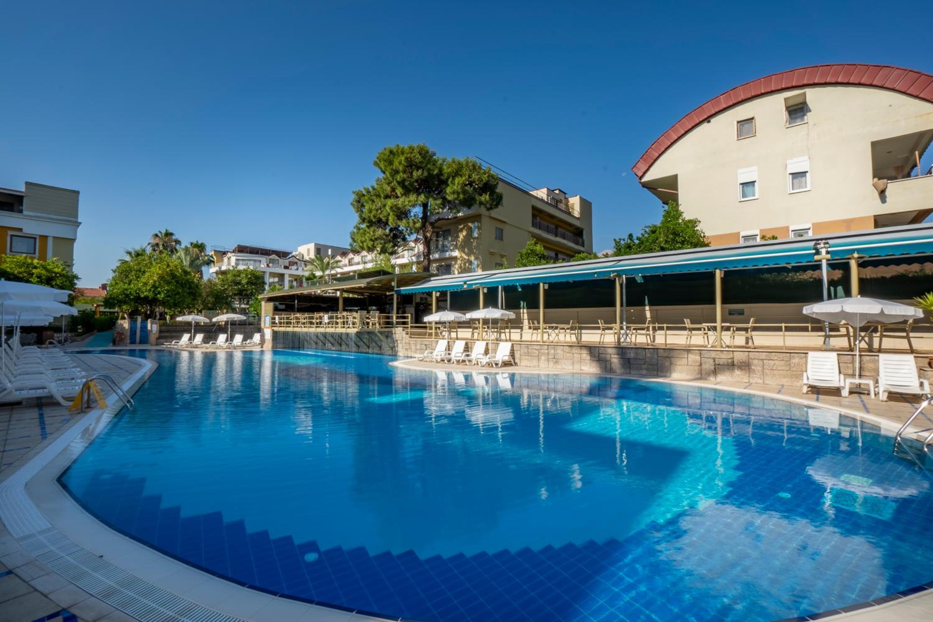 The location is pretty good: 2 mins walk from the beach, 15 mins walk from city centre with a small shop 3 mins walk away and a direct bus passing by hotel back to Antalya. The hotel is a budget all-inclusive. Very good for the price, but otherwise a step below more luxurious properties in the area. The staff is very nice and friendly, even put away some food for me because I was late to the dinner.