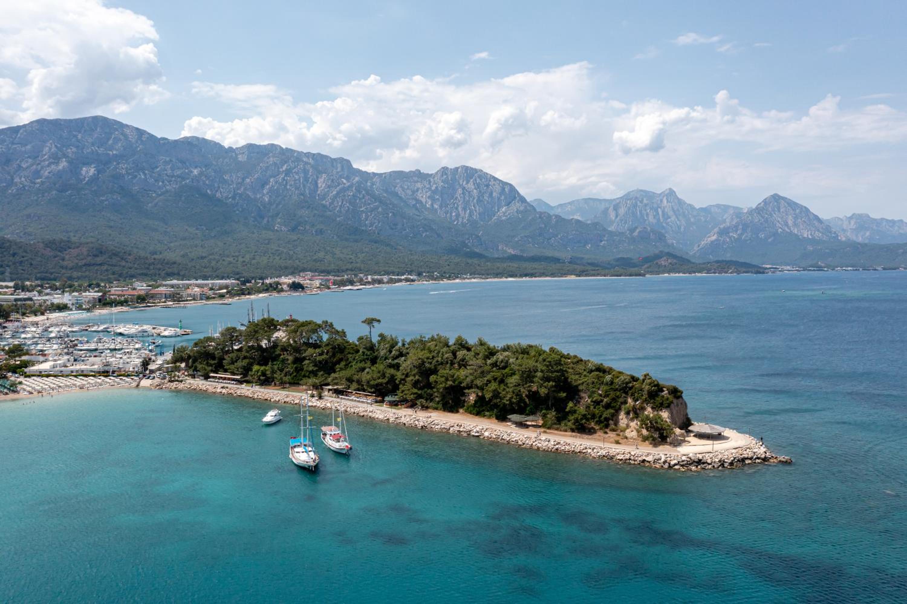 The Gelidonya Hotel boasts 170 guest rooms equipped with modern amenities and balconies offering views of either the sea or the majestic Taurus Mountains.