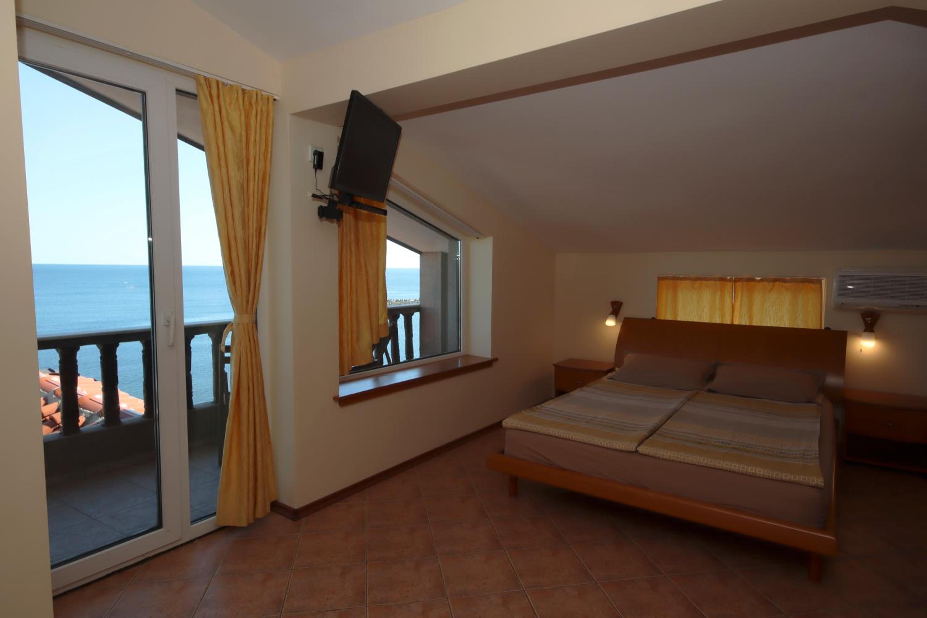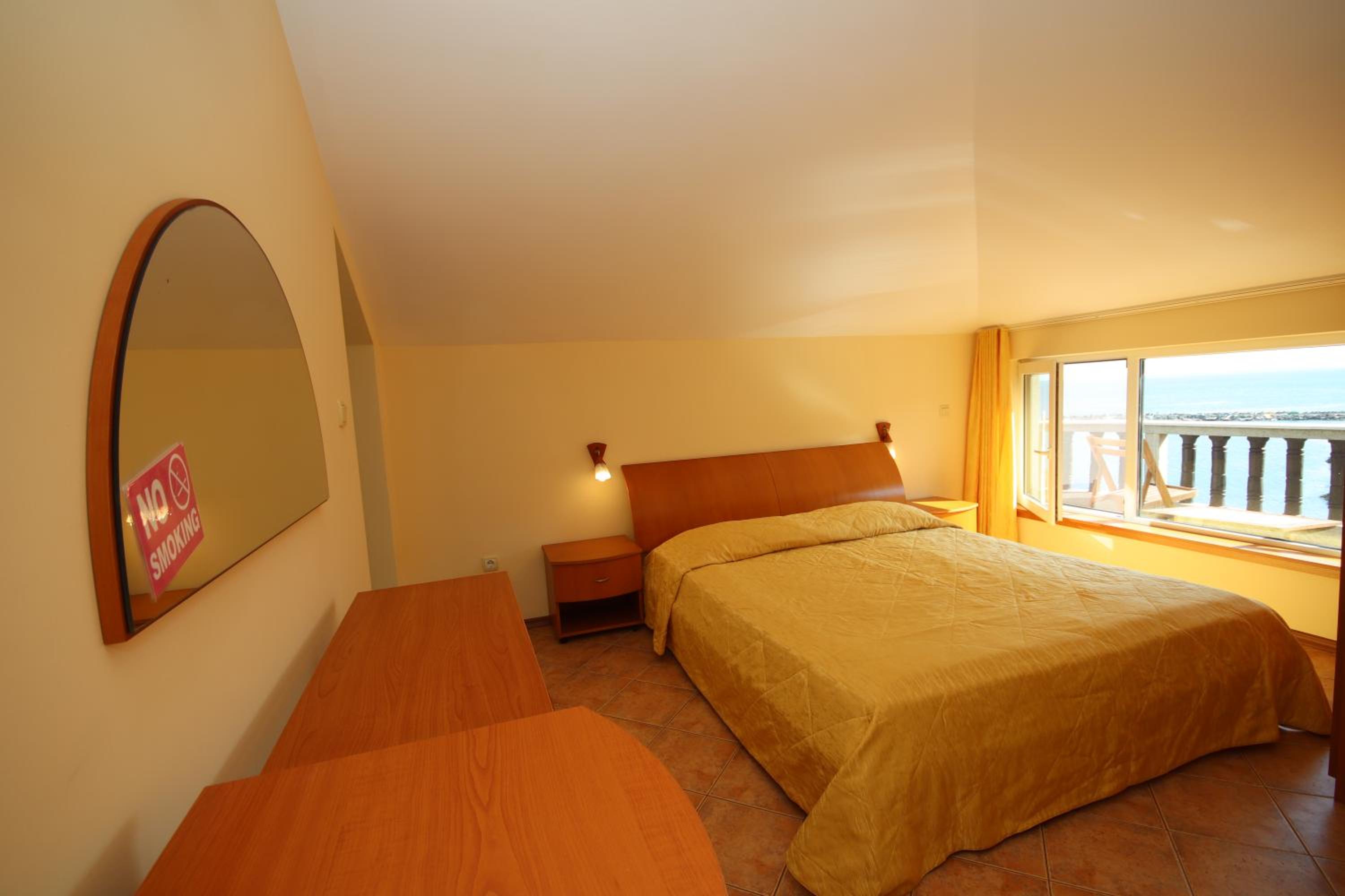 The hotel is located on a bluff above the Black Sea. We had a beautiful view of the sea and saw an amazing sunrise! It is close to the beach, just a 10 minute walk. the room was very clean and was cleaned daily.