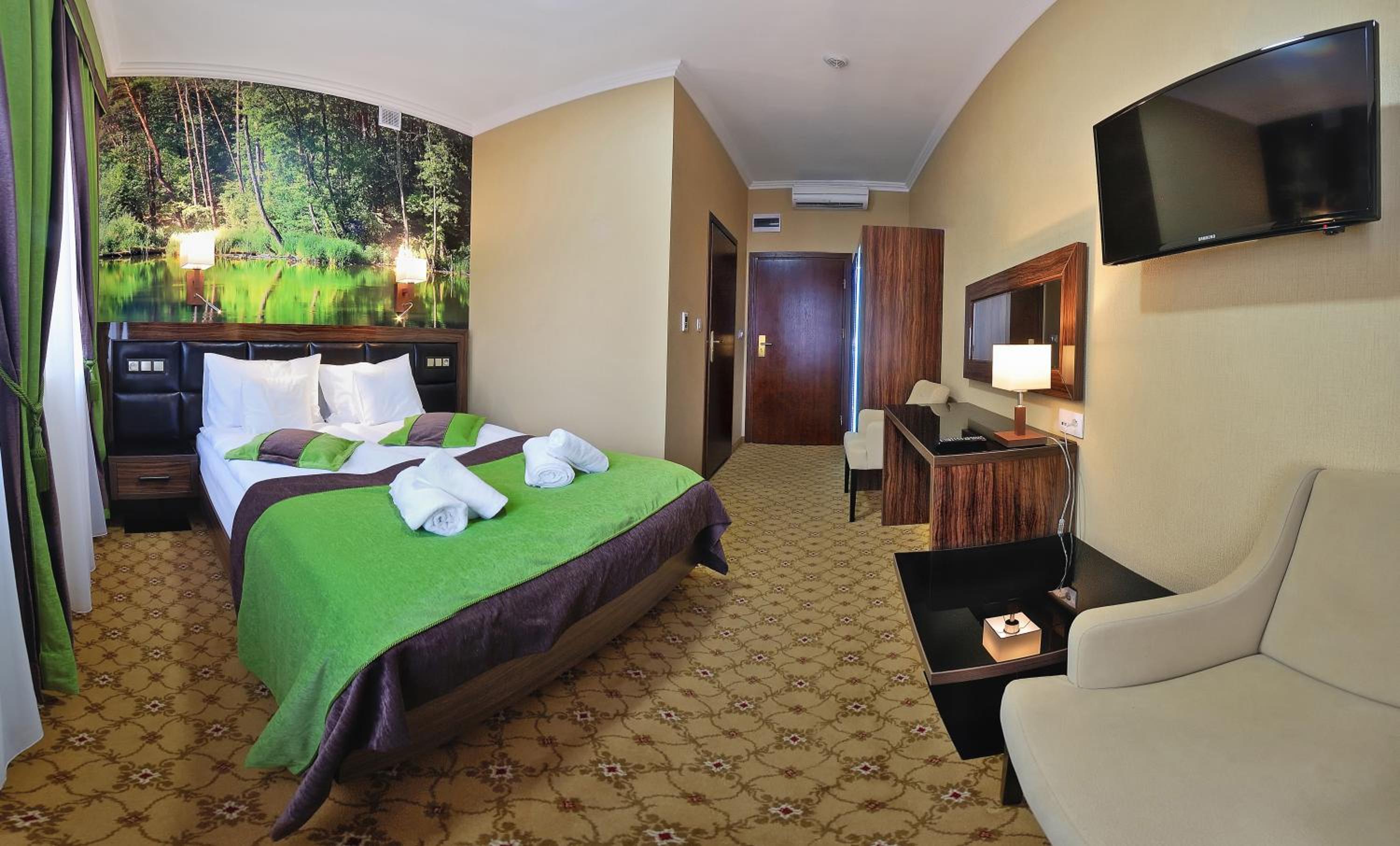 Bardzo przyjemnym hotel z pysznym jedzeniem i obsługa na plus napewno jak będę gdzieś w okolicy przejazdem to wrócę z czystą przyjemnością