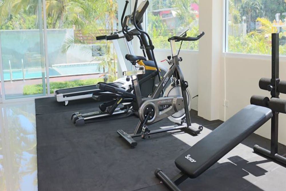 Der vorhandene Fitnessraum war sehr schlicht gehalten. Die Lage des Pools war eher schattig.
