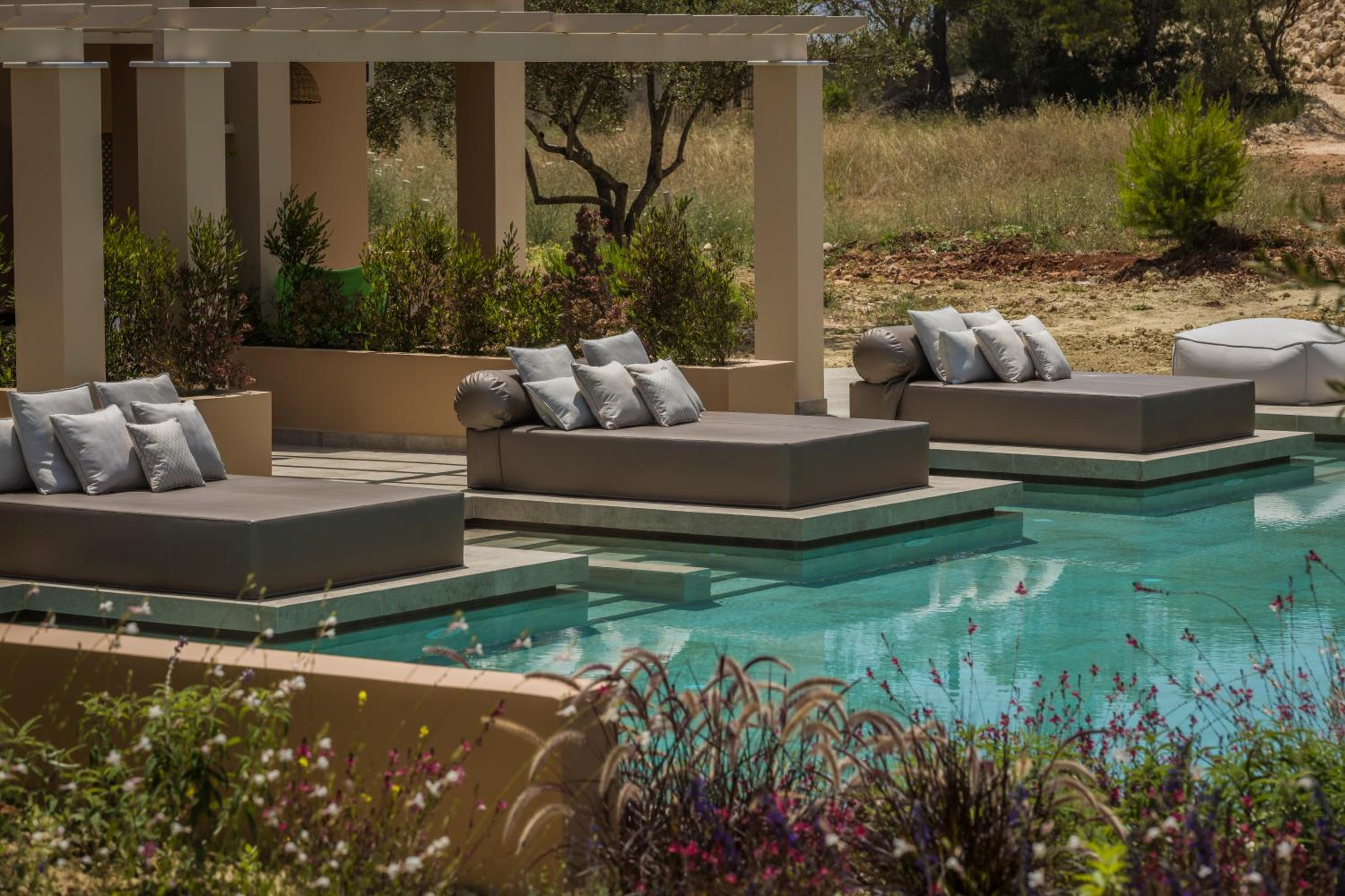 We made good use of our swim up room. The gardens are full of colourful perennials in a natural style, absolutely beautiful landscaping. Breakfast had everything you could possibly wish for. Of note was the reception area. The staff were so welcoming and at night all the candles were lit on the bookshelves, very atmospheric, as was the lighting in the grounds and around the pools.