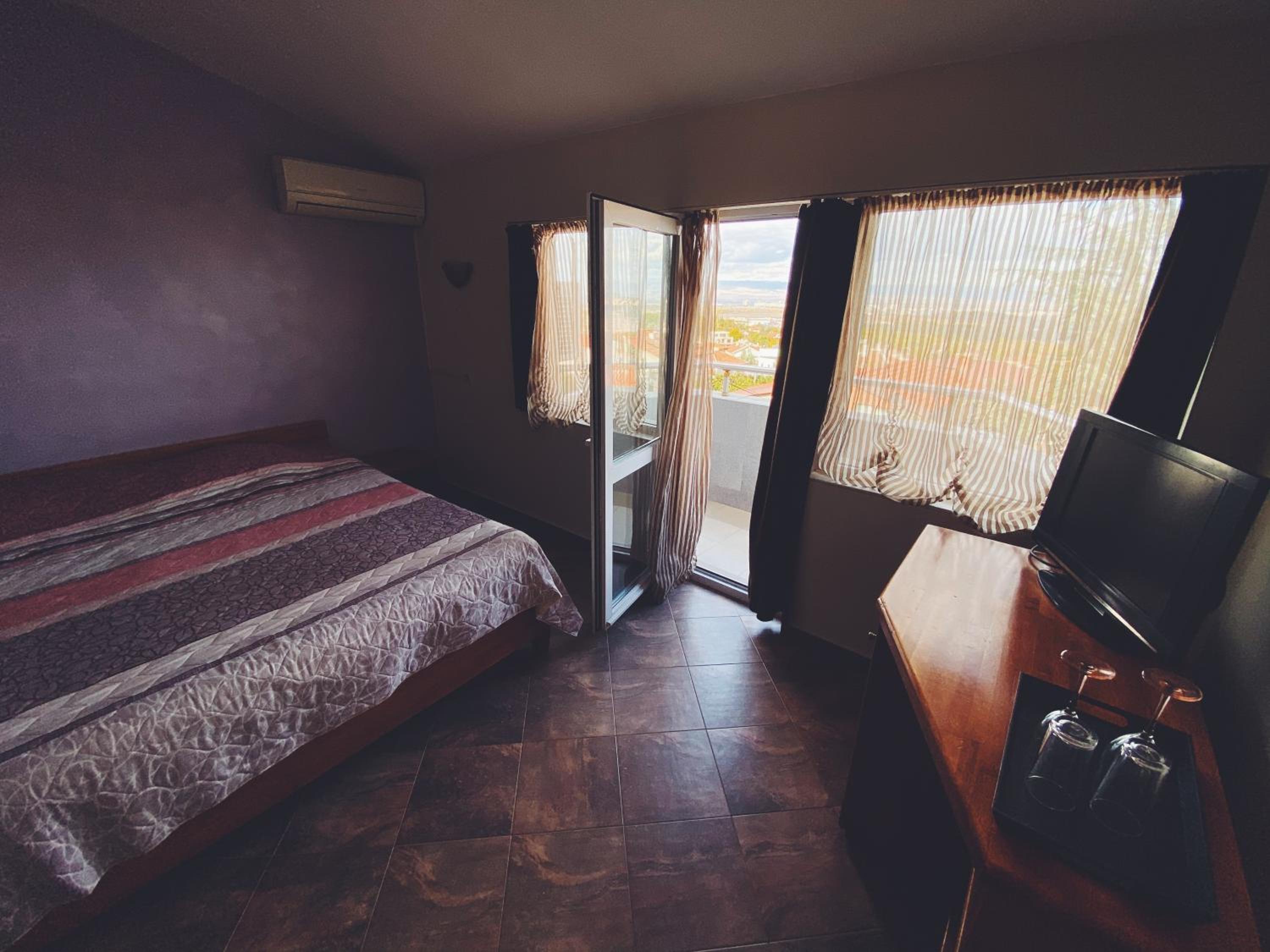 Удобна голяма стая и легло, хубава гледка, любезен домакин!Има място за паркиране, тих и спокоен квартал, в близост има магазини!