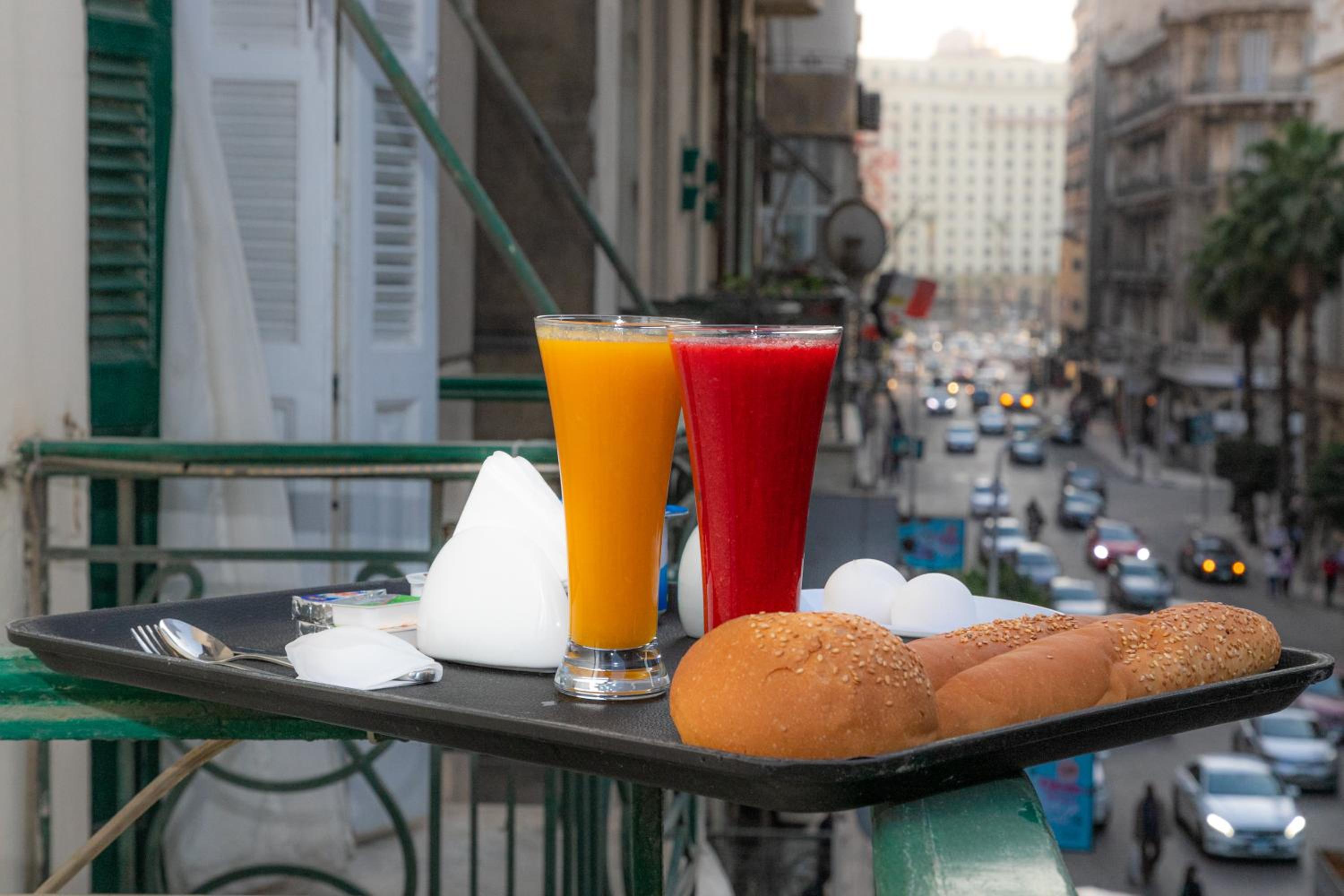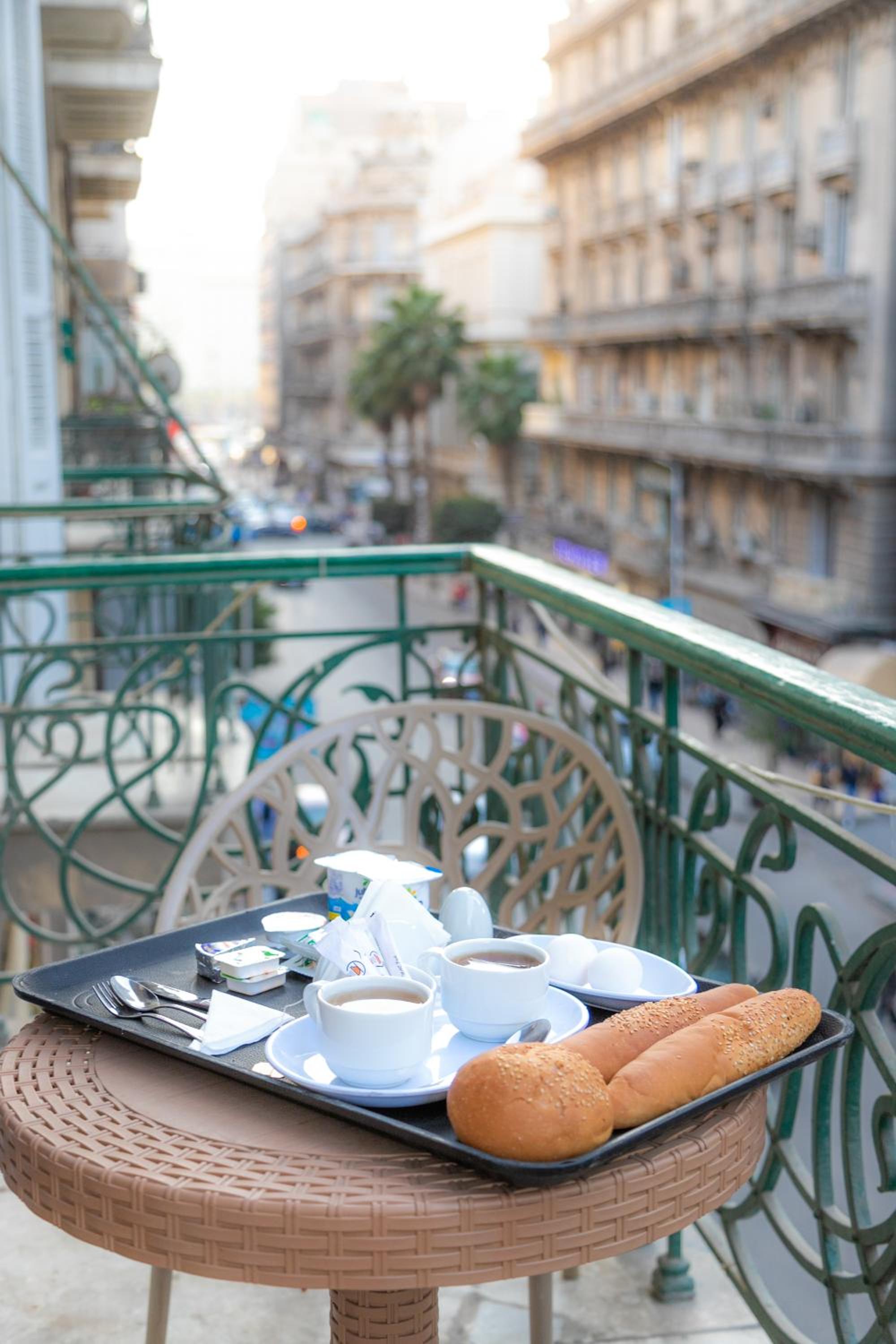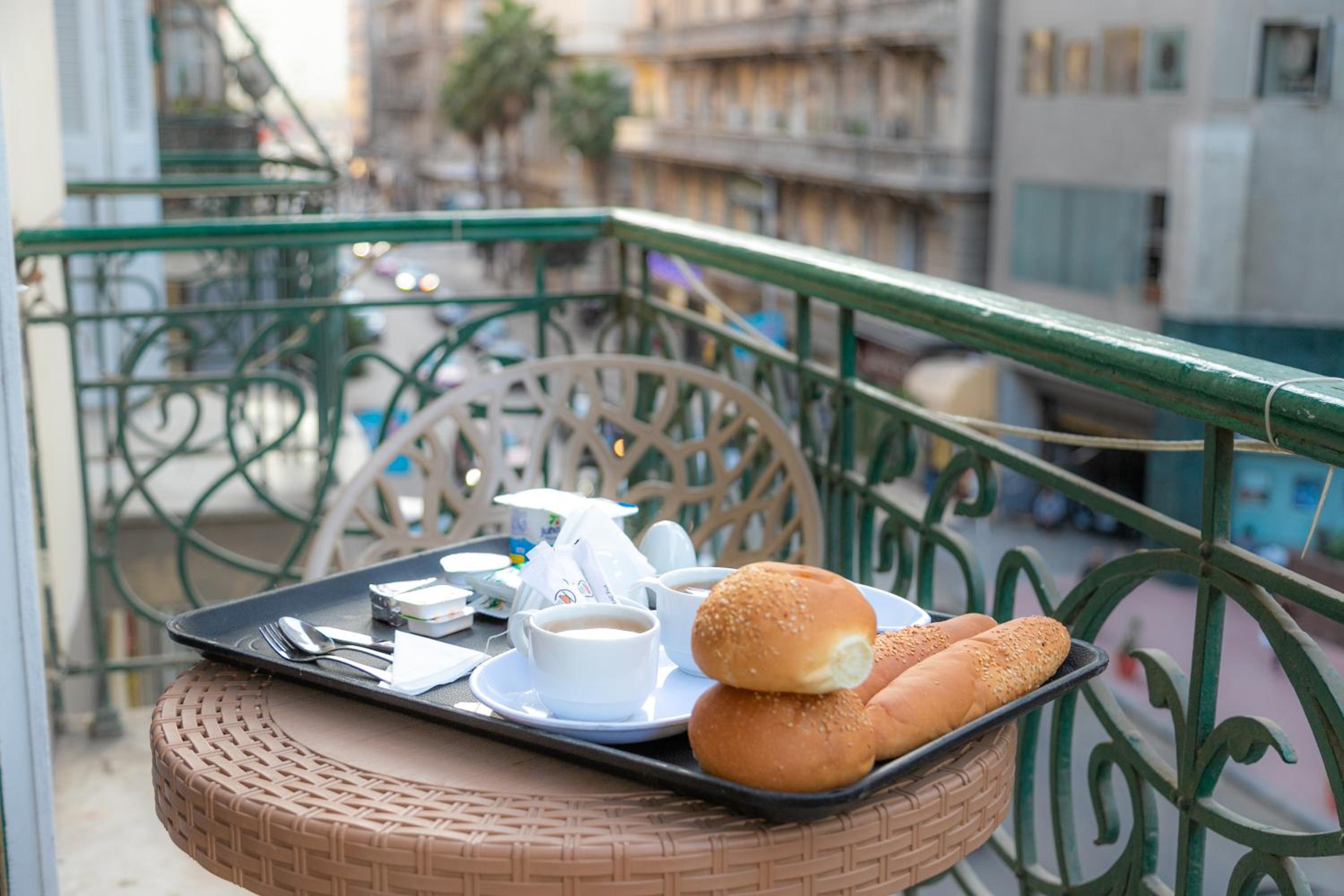 繁華街の中にあり、地下鉄からのアクセスもよい。ヨーグルト、チーズ、ハム、小さなオムレツ、エジプト風パン、ジャム、バナナなどが含まれる充実した朝食。