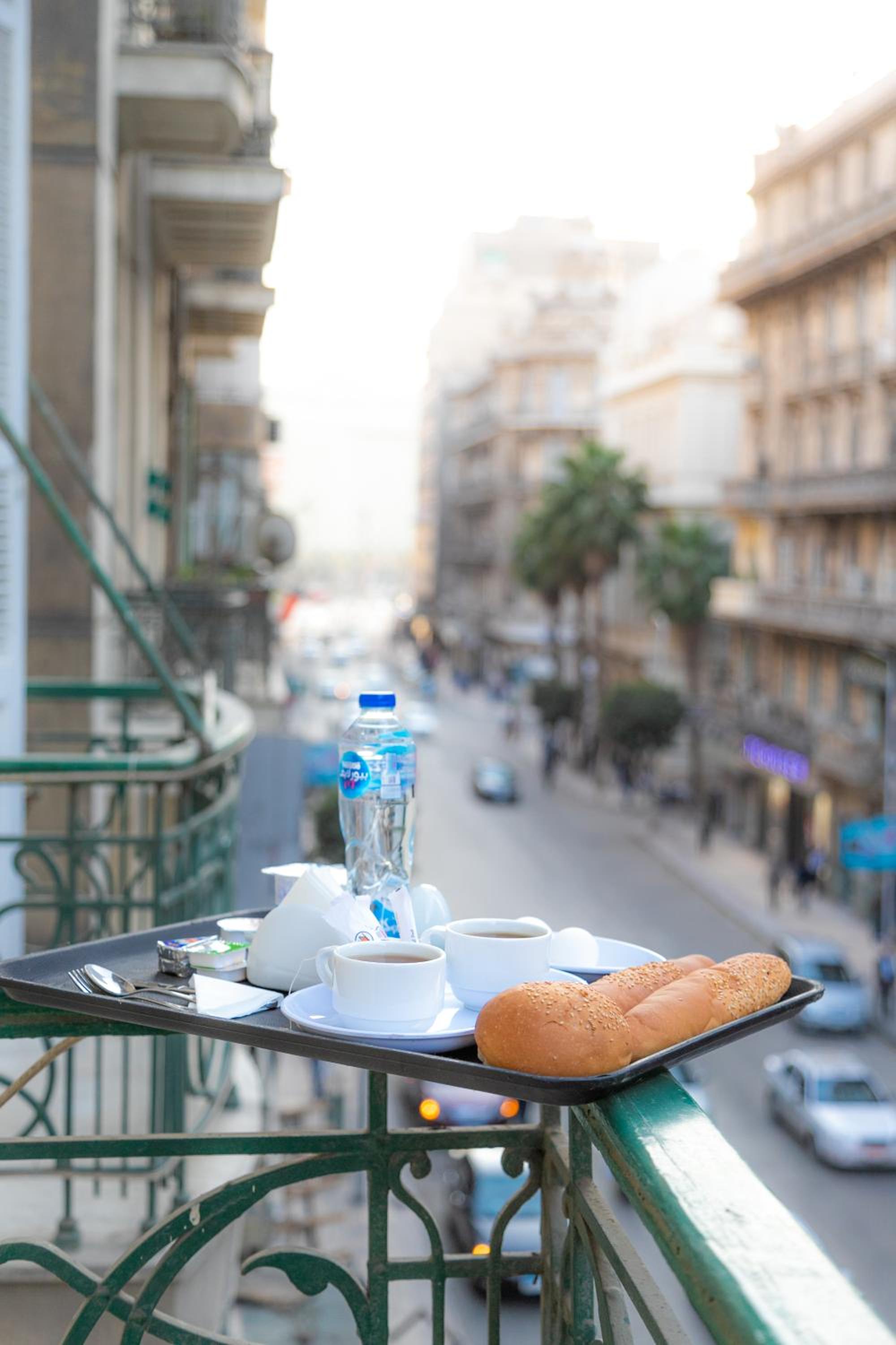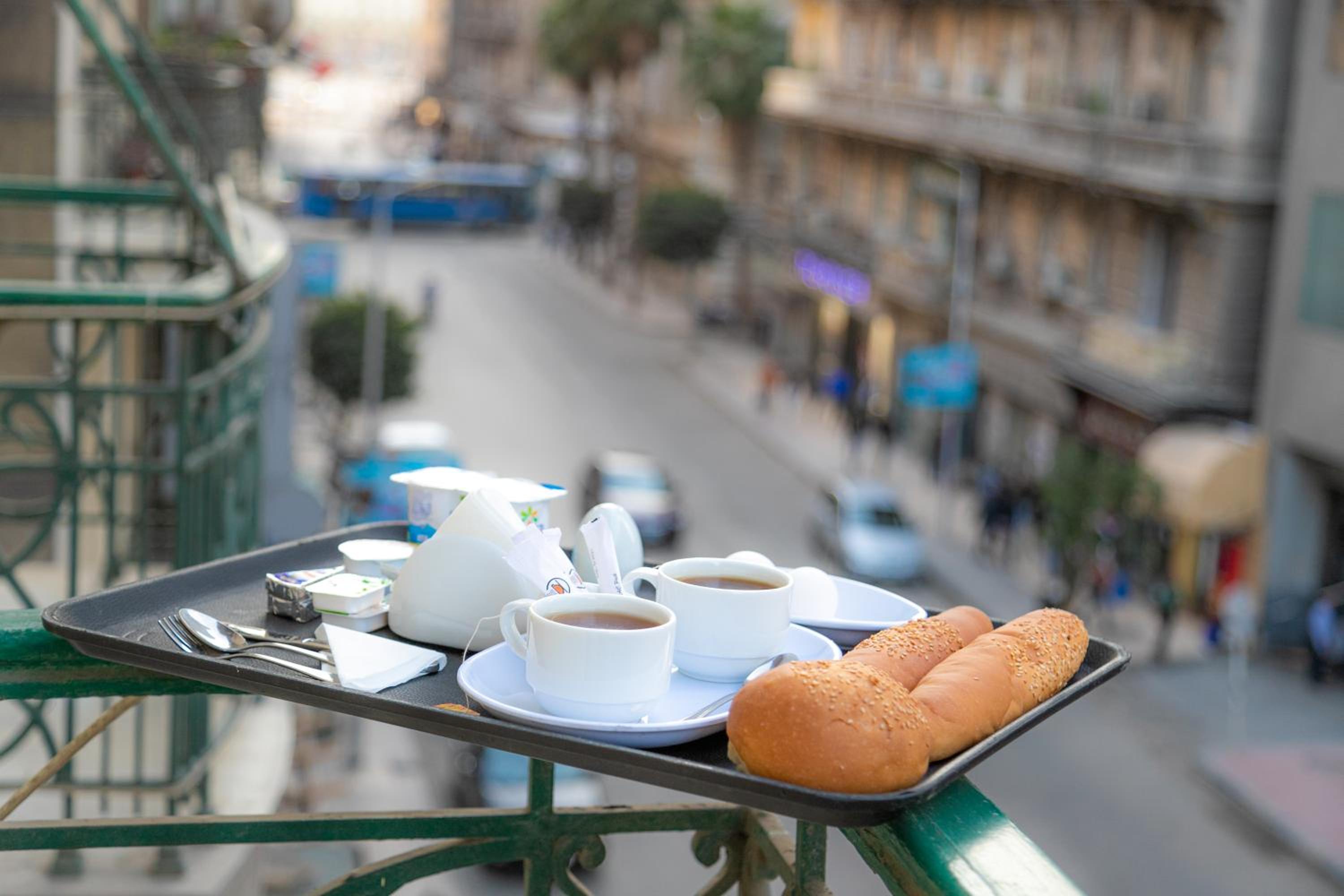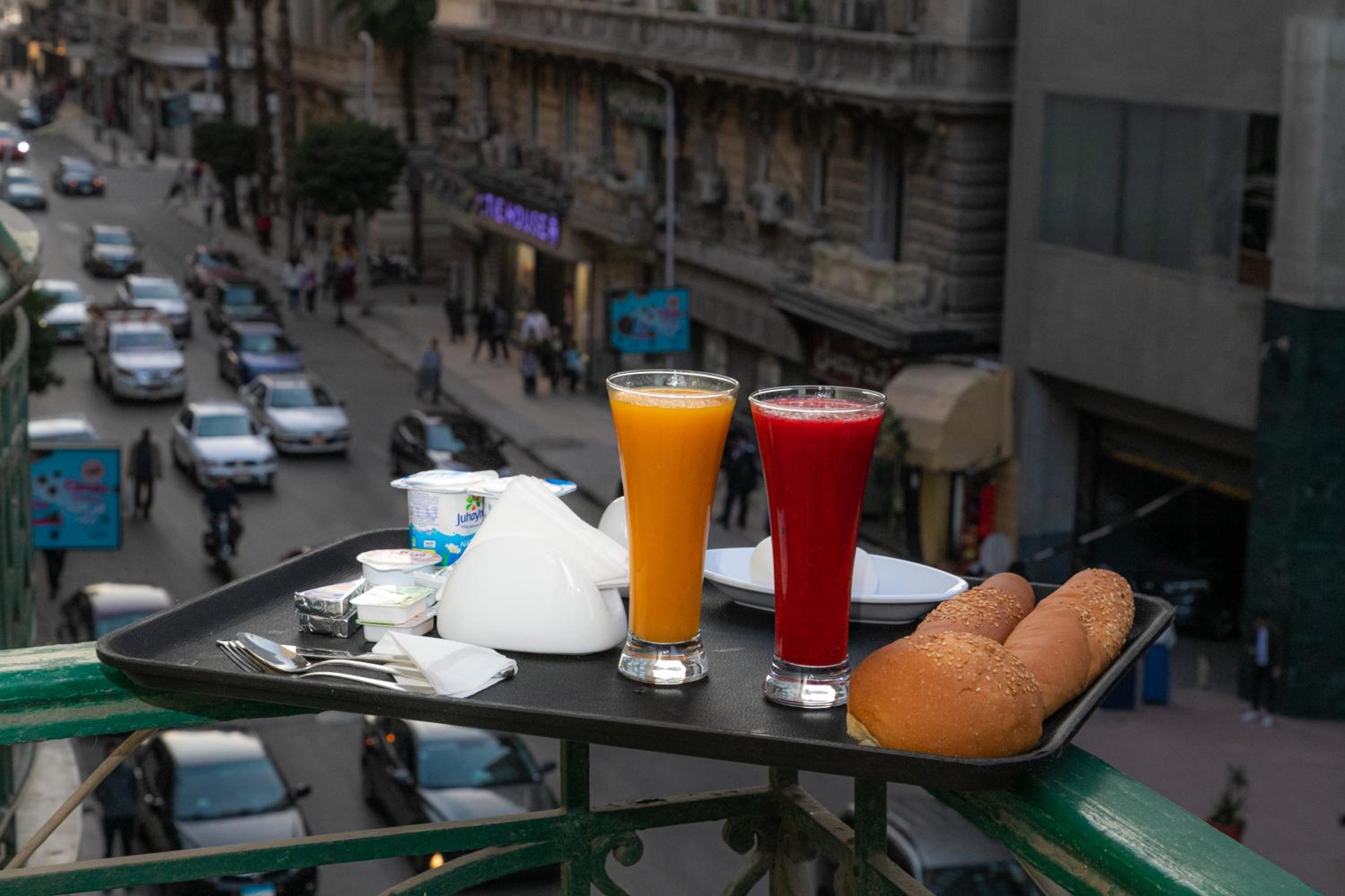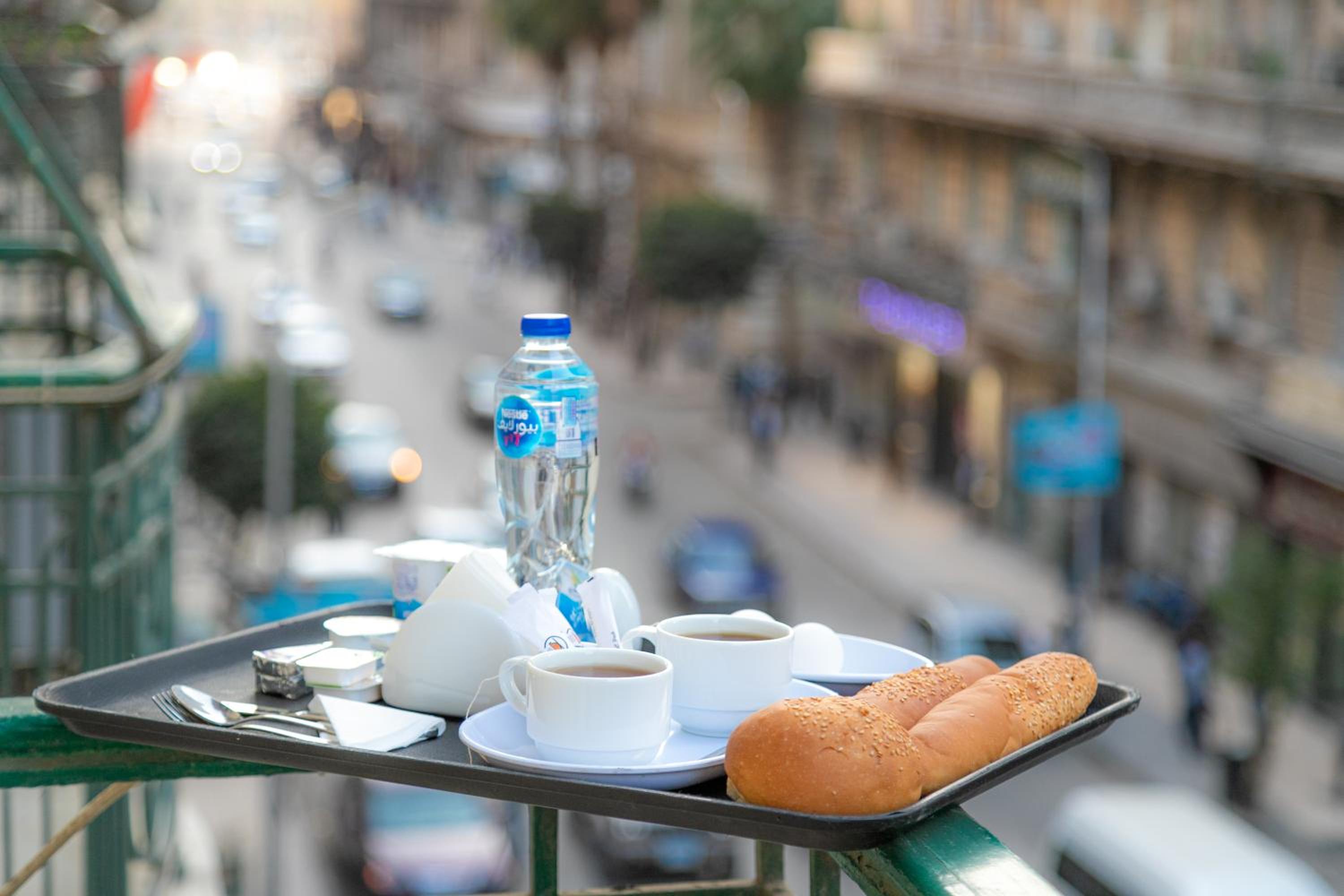 繁華街の中にあり、地下鉄からのアクセスもよい。ヨーグルト、チーズ、ハム、小さなオムレツ、エジプト風パン、ジャム、バナナなどが含まれる充実した朝食。