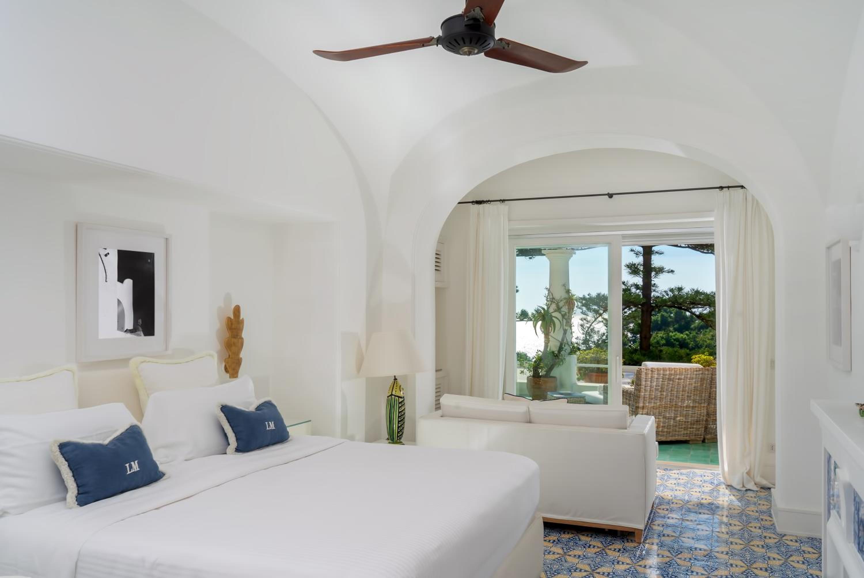 Hotel La Minerva offers a luxurious stay in Capri with stunning sea views and elegantly furnished rooms equipped with modern amenities.