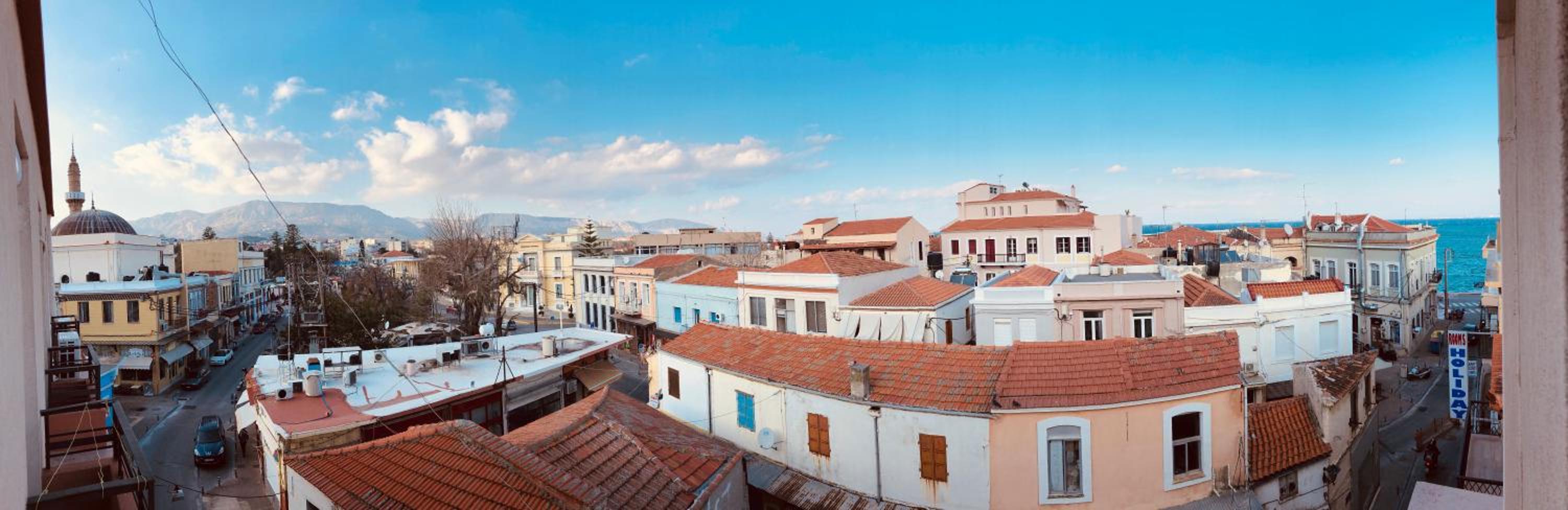 Enjoy stunning city views from our terrace at Filoxenia Hotel in Chios. Relax and unwind while taking in the vibrant surroundings.