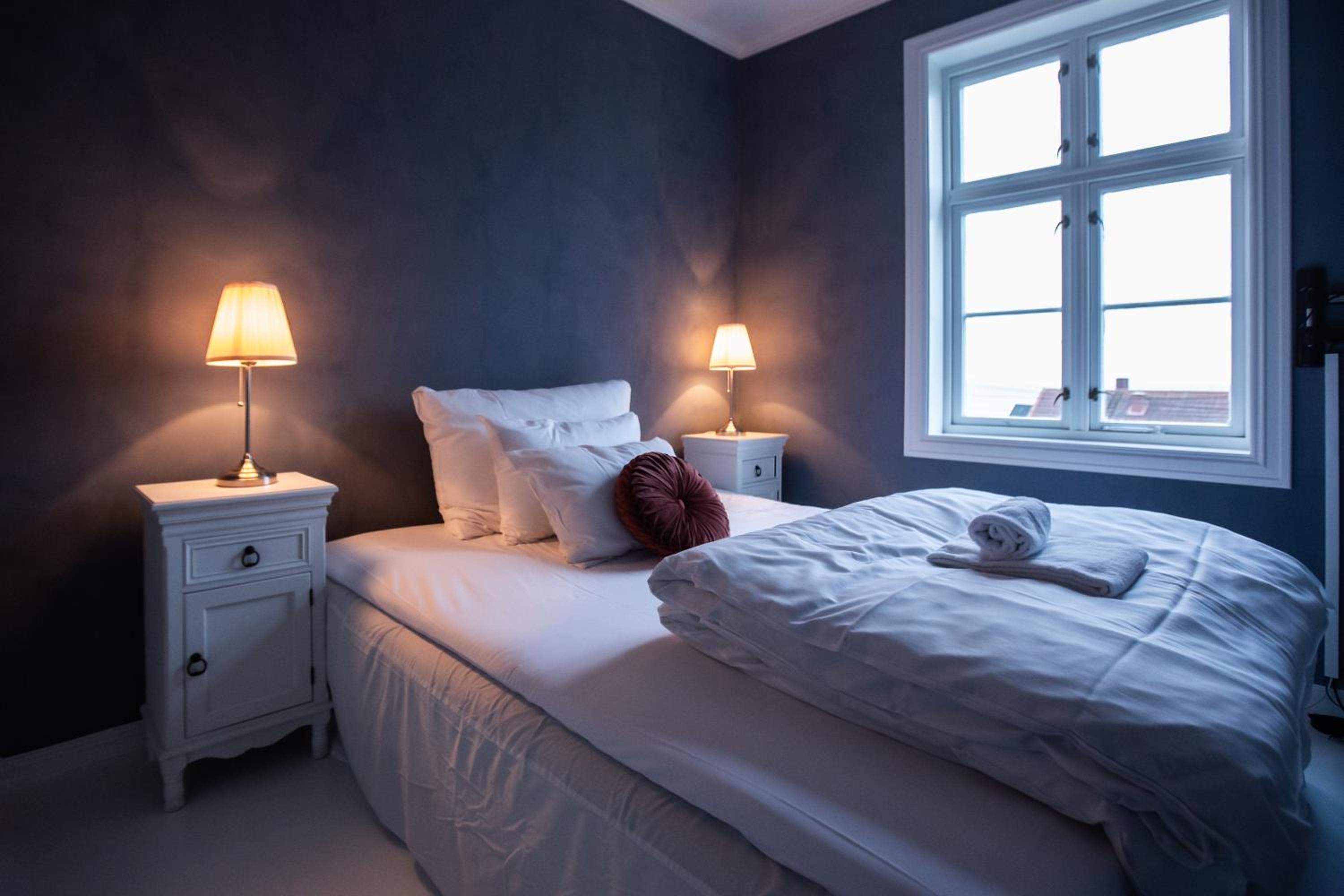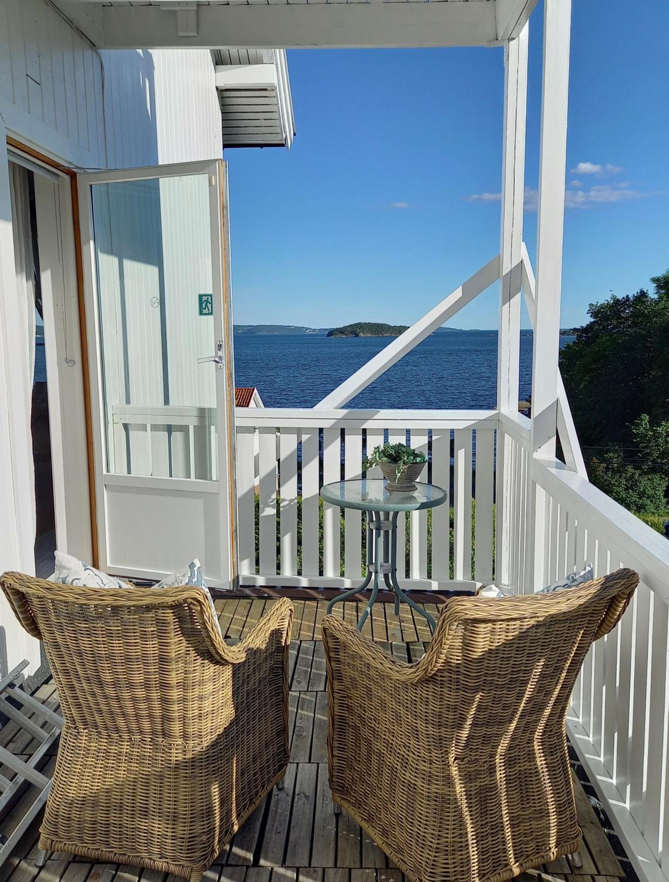 Luxurious Accommodation: Villa Utsikten offers comfortable rooms with sea views, complete with bed linen and towels for a relaxing stay.