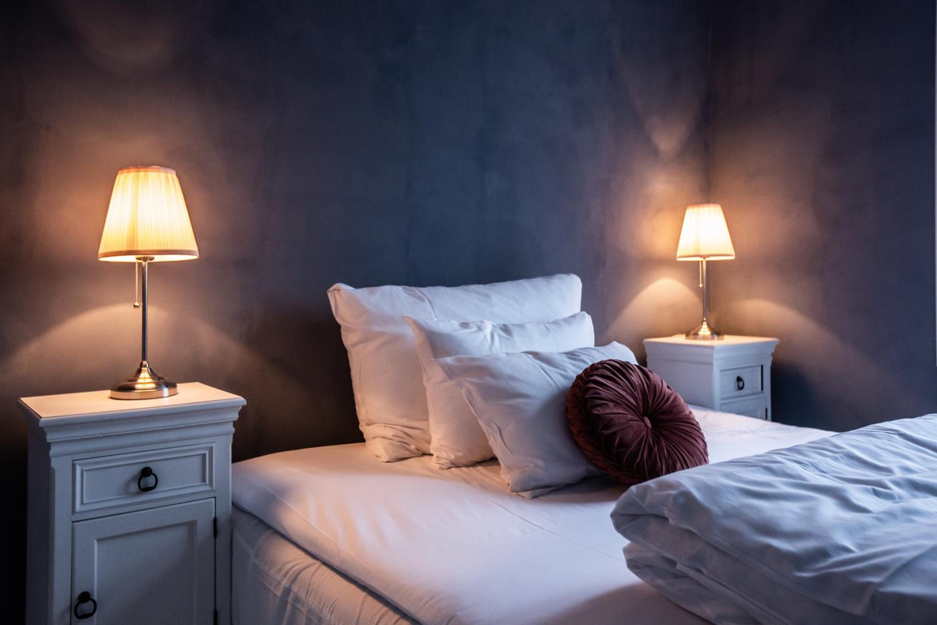 Værelserne var fine og flot dekoreret men der manglede en skraldespand udover den lille på toilettet og det ville have været rart med en lampe på det ene værelse i loftet så man kunne få ordentligt lys om aftenen. Det var for dårligt at man ikke kunne låse døren til det ene værelse hvor en af os skulle sove, hvilket vi ikke var blevet gjort opmærksom på ved booking, hvilket var lidt utrygt når det var placeret lige ud til den fælles gang. På plussiden var det ellers søde personale og så må vi sige at maden, både morgenmad, aftensmad og pizzabuffeeten var super lækker.