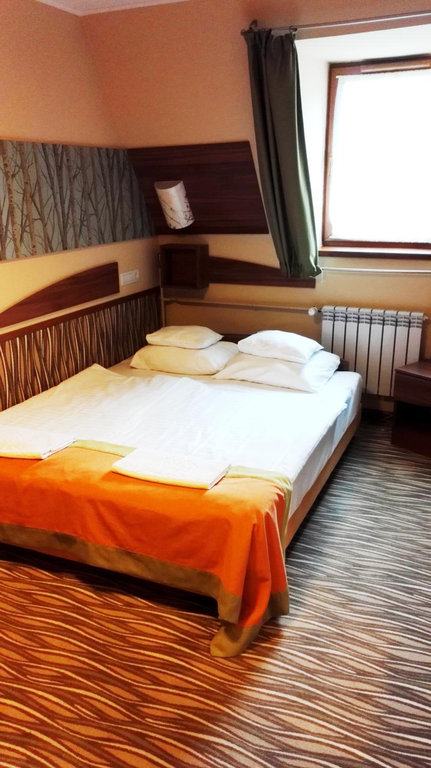 Camera foarte mica. Camera cu pat matrimonial înseamnă 2 paturi de o persoană lipite unul de altul.