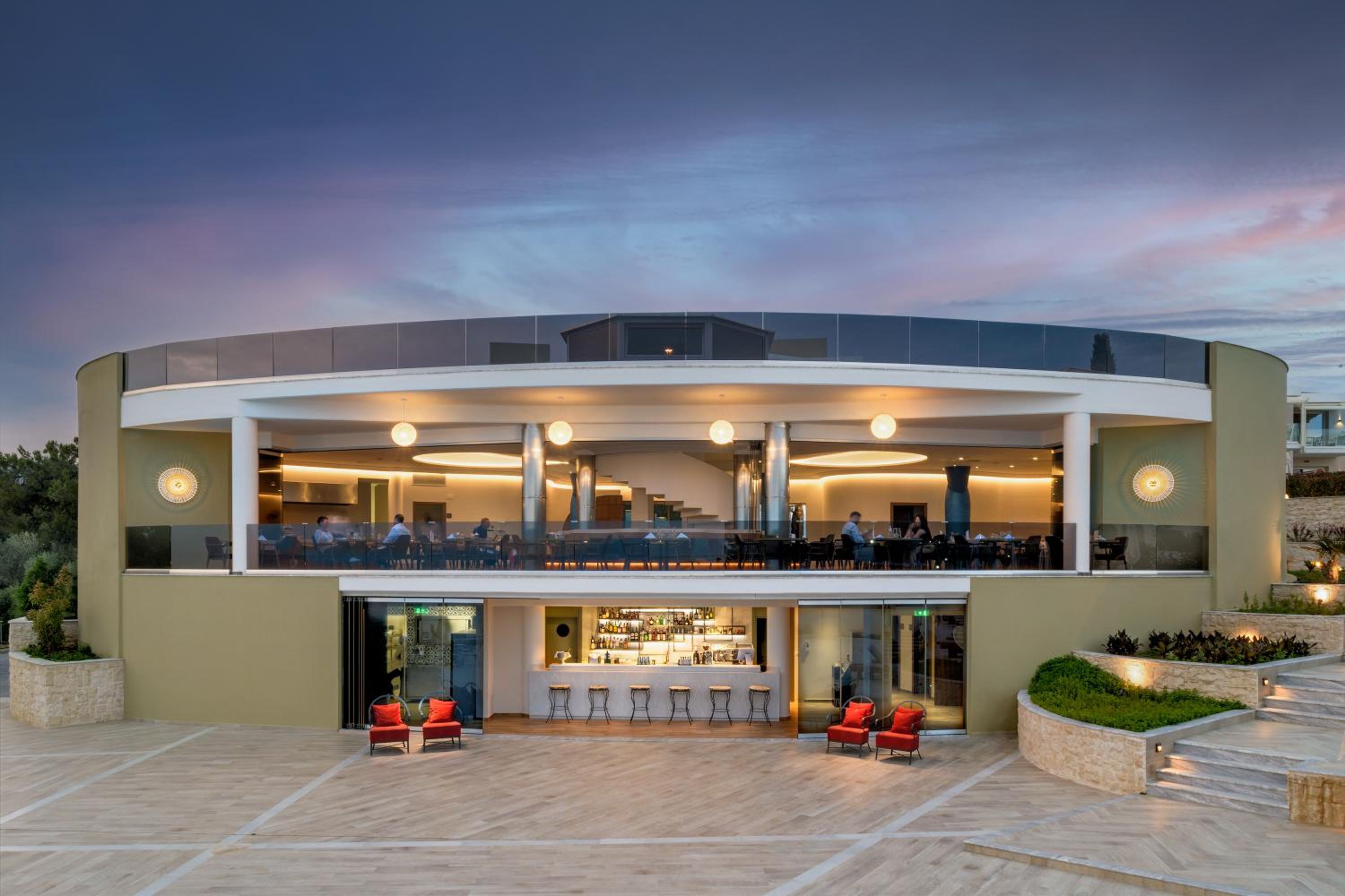 Indulge in American, Greek, and Mediterranean cuisine at the on-site restaurant. Special dietary options are available. Have fun at the children's playground, or engage in activities like billiards, table tennis, tennis, hiking, and snorkelling.