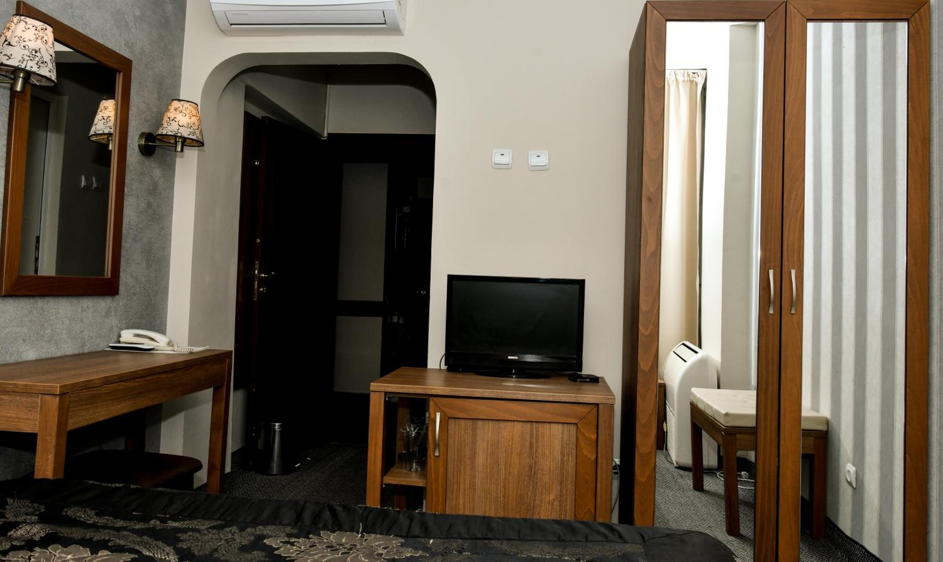 Стаята миришеше на цигарен дим и на застояло. Хавлиите са нелицеприятни. Нуждае се от сериозно обновяване, както впрочем целият хотел.