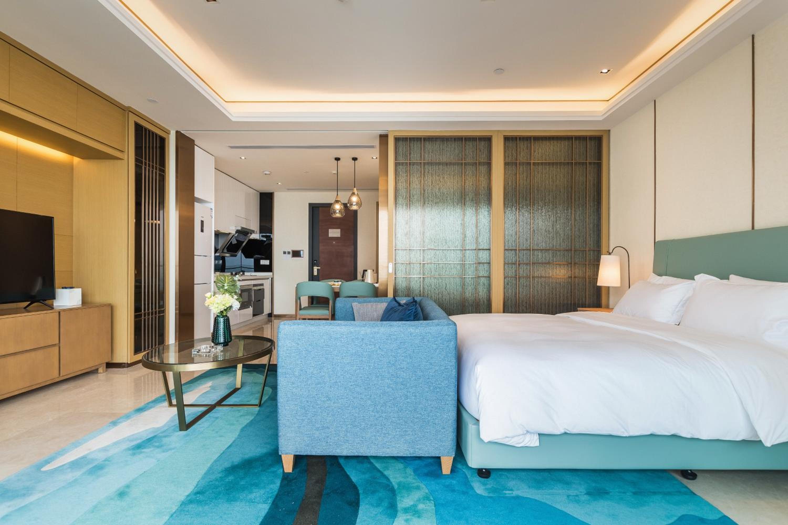 Elnob Seaview Aparthotel Hai Tang Bay Sanya offers an array of luxurious amenities including an outdoor swimming pool, garden, shared lounge, and terrace. The concierge service, on-site restaurant, and 24-hour front desk ensure a seamless and enjoyable stay for all guests.