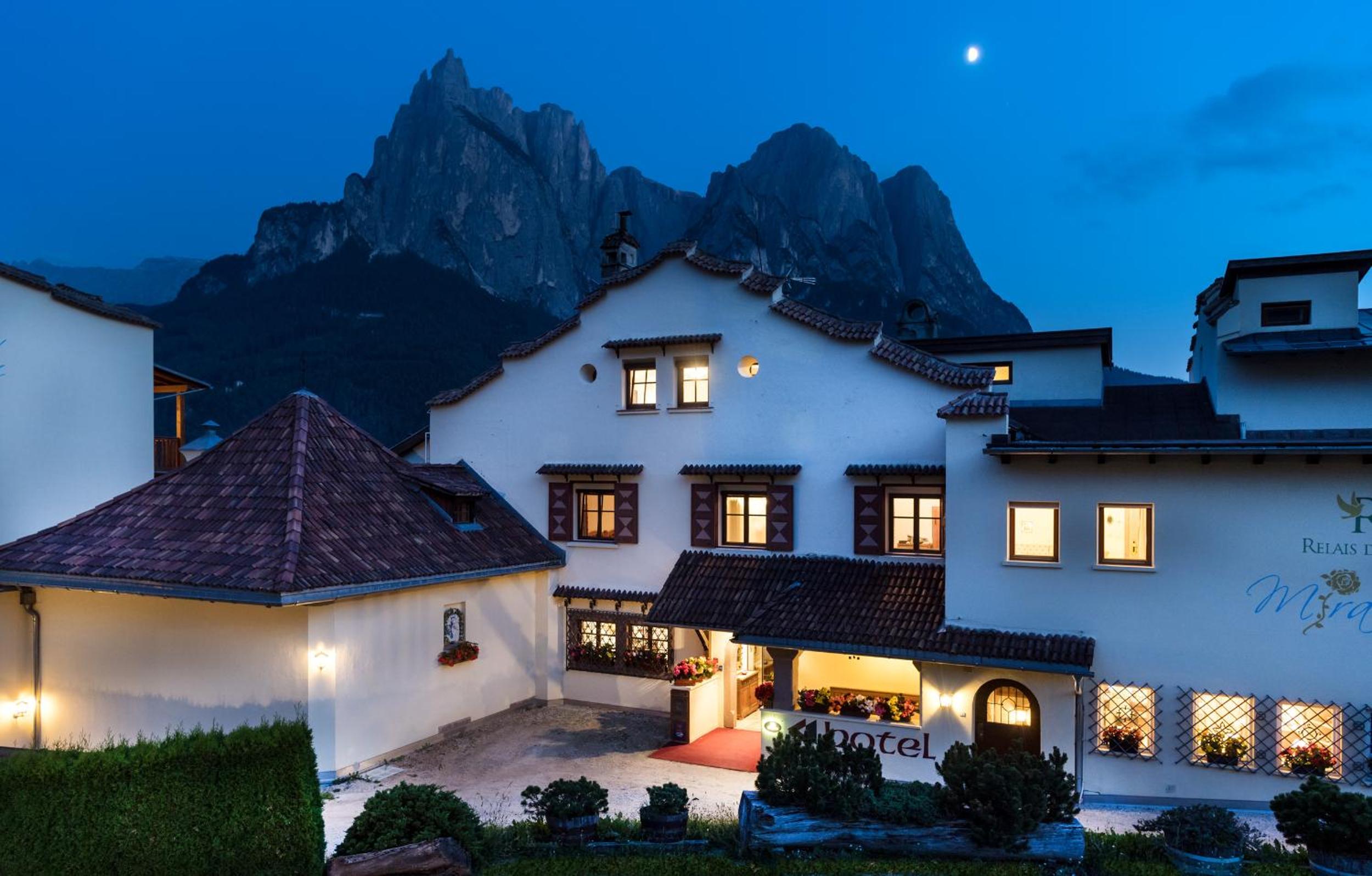 Experience the charm of Schlosshotel Mirabell, nestled in a historic mansion overlooking Mount Sciliar. Indulge in our unique suites boasting balconies, private bathrooms, minibars, and TVs for a comfortable stay.