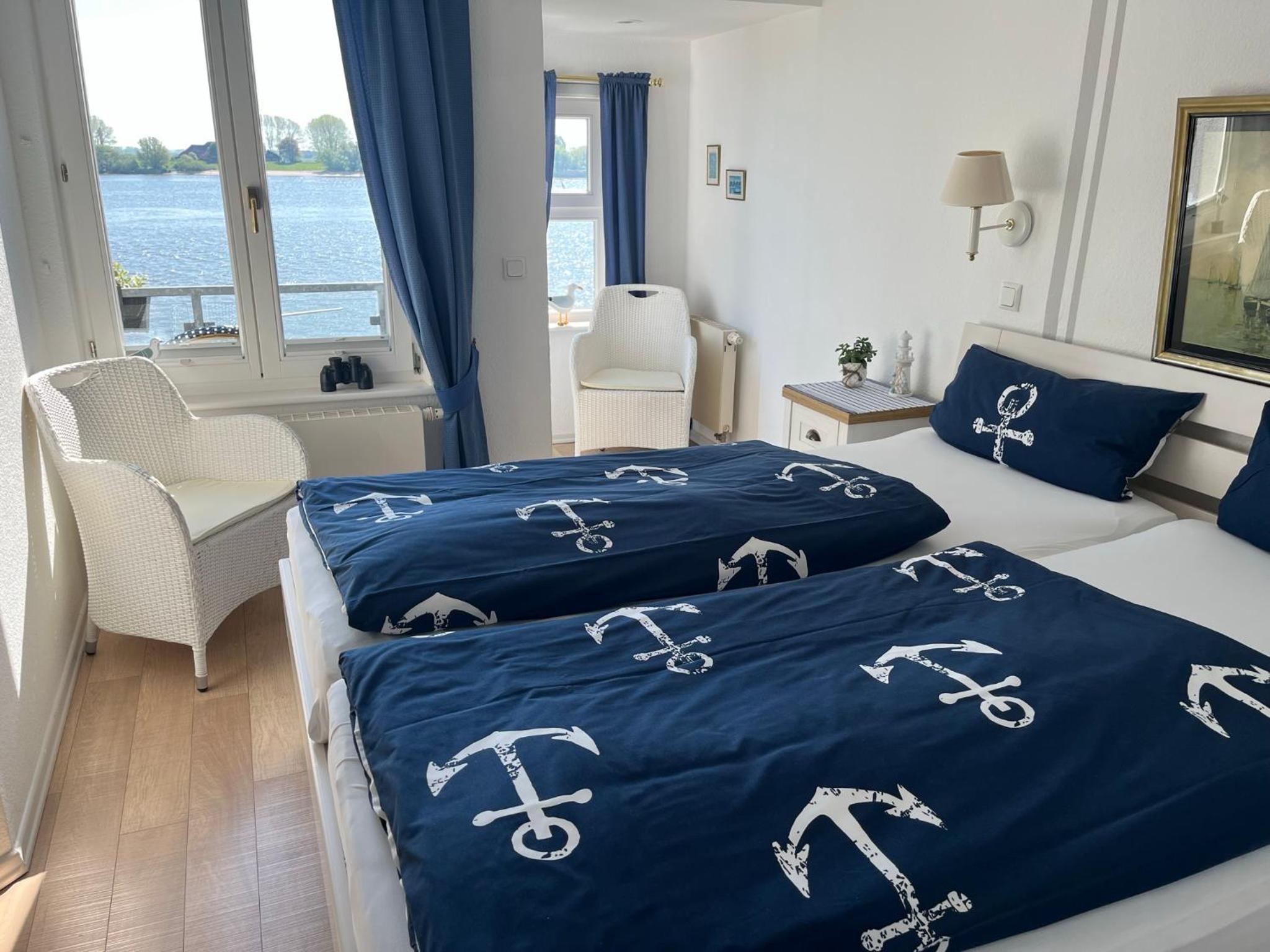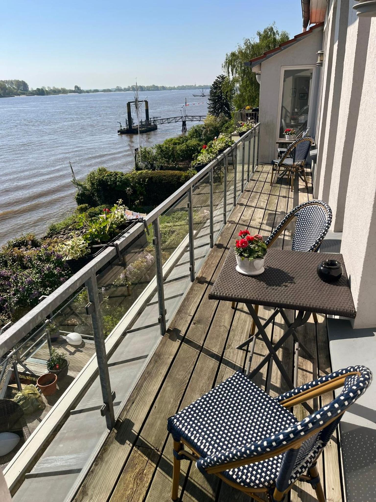 Mooie, rustige kamer met balkon & prachtig zicht op de Weser. Lekker ontbijt.