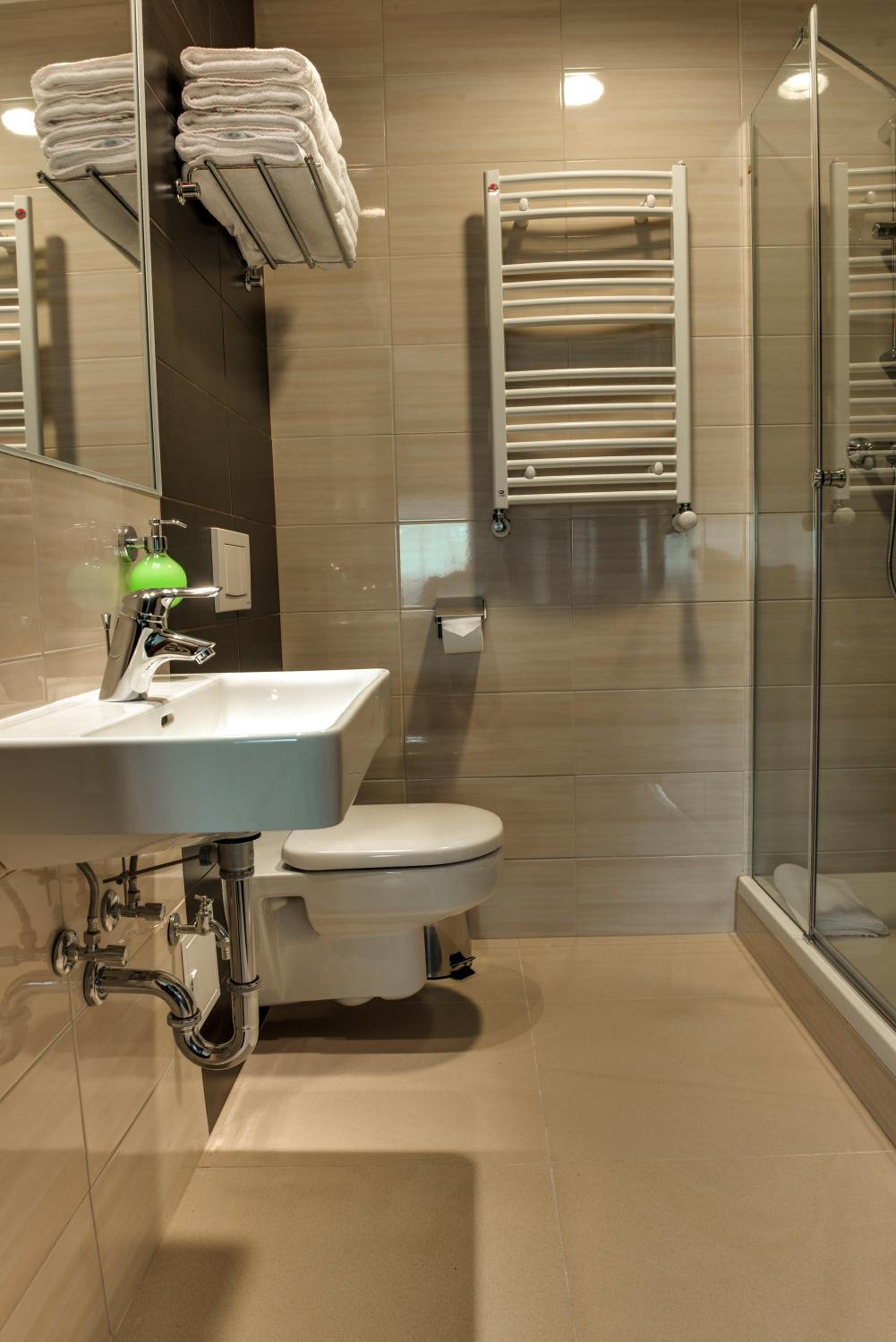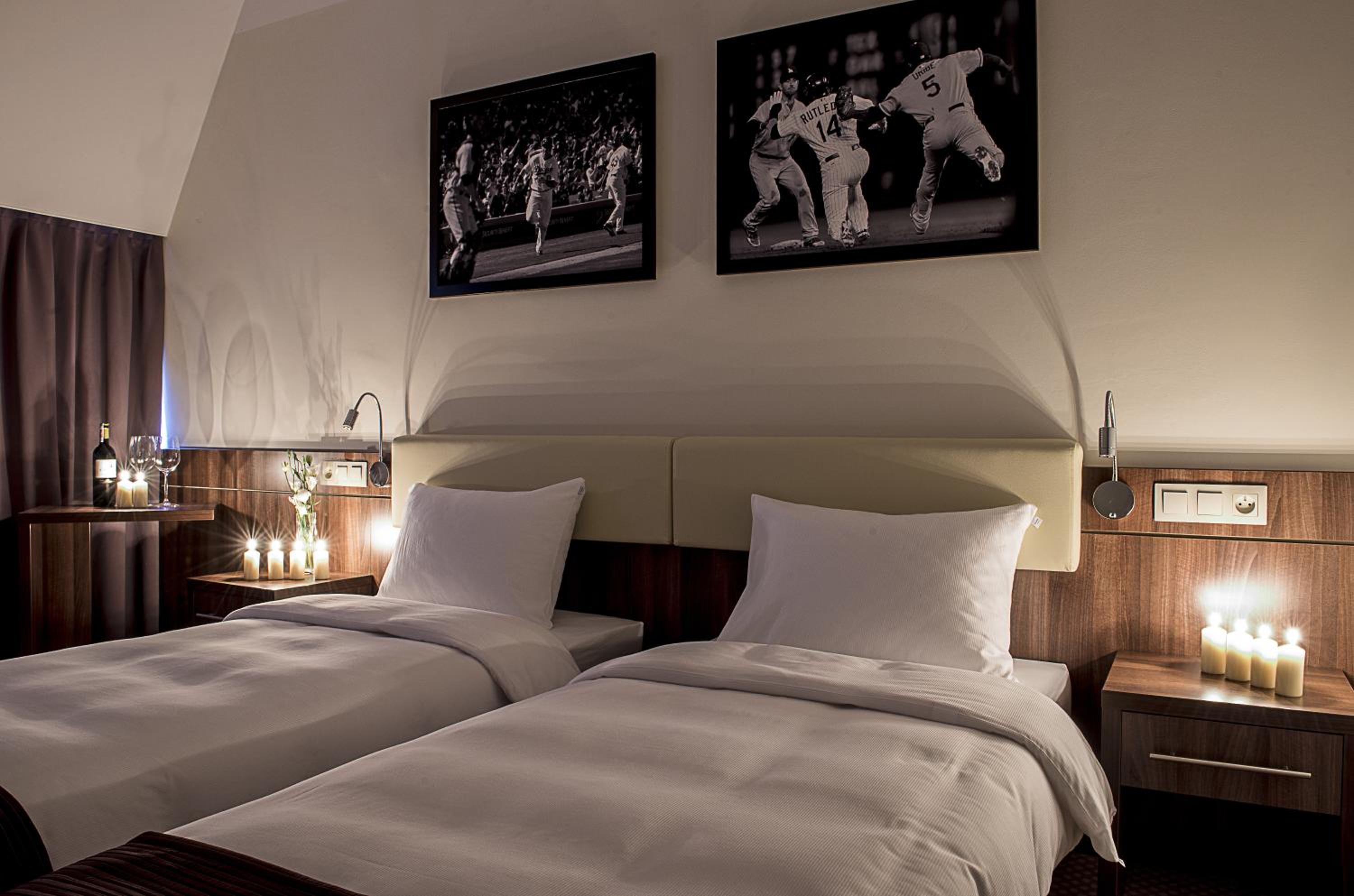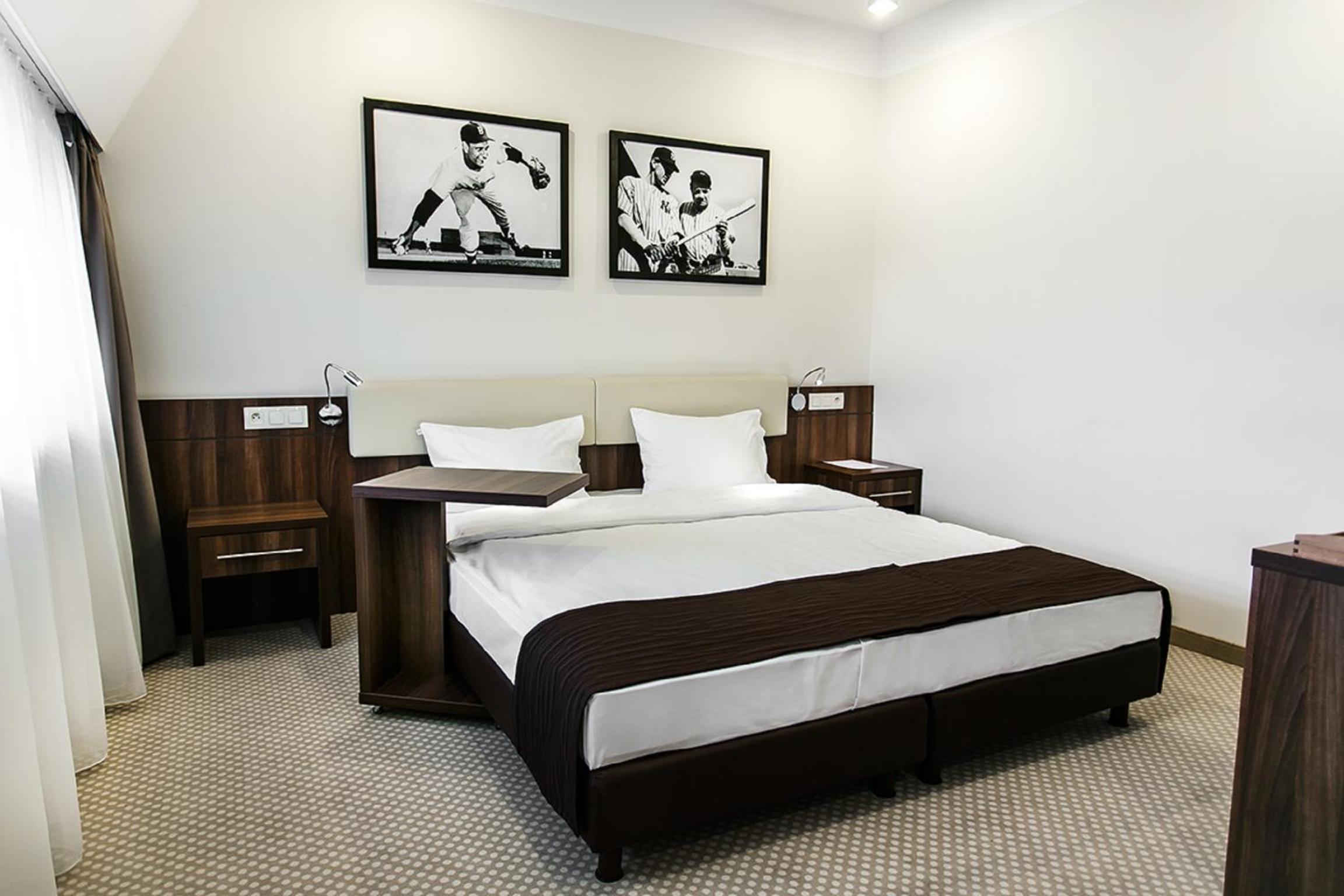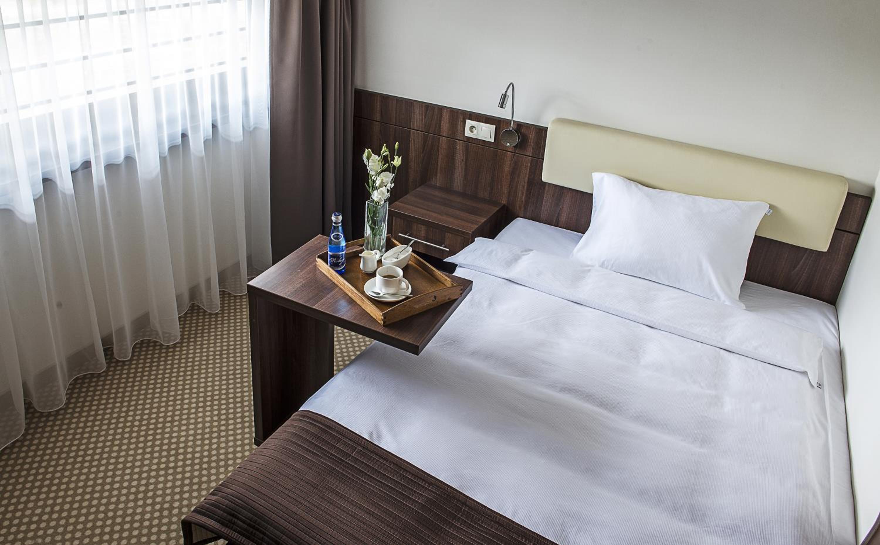Przyjazd o 22 z dalekiej trasy, w restauracji ciemno, bar też nie działa. W recepcji mogliśmy kupić chipsy, więc kupiliśmy. Zamiast dwuosobowego pokoju z podwojnym łóżkiem (potwierdzone zamowienie), czteroosobowy pokój z łóżkami pojedynczymi upchniętymi co 10cm od siebie. Brak ręczników, konieczna byla wizyta w recepcji. TV nie działał, konieczna wizyta ponowna w recepcji w sprawie baterii do pilota. Po ich wymianie nadal TV nie działał. W sumie szkoda. Ale cóż, dokonujac wyboru kierowalem się nazwą "hotel". Na miejscu dziecięcy obóz sportowy, więc hotelowe udogodnienia mniej istotne, a im wiecej głów w pokoju, tym weselej. Raczej bez zainteresowania w przyszłości.