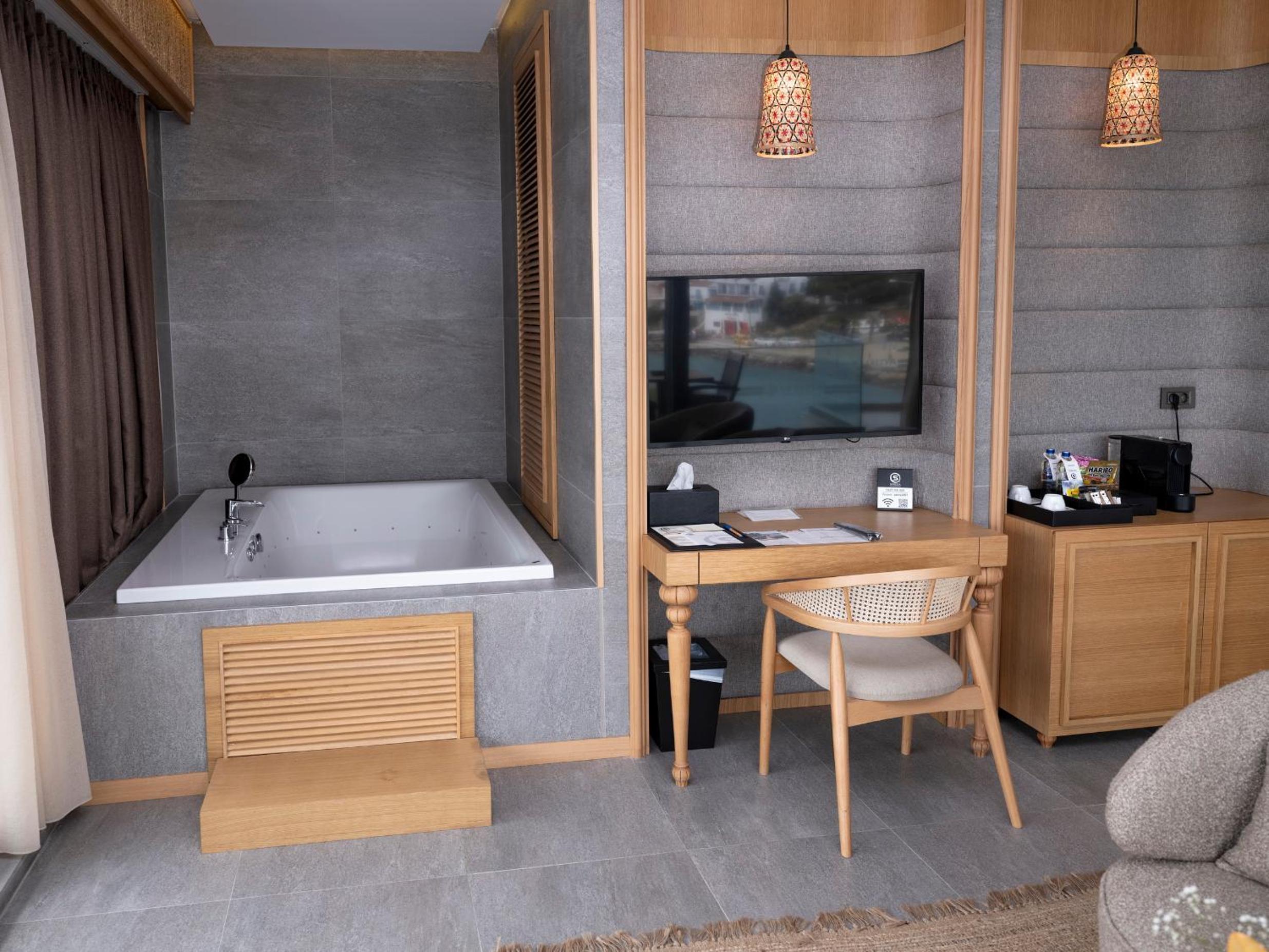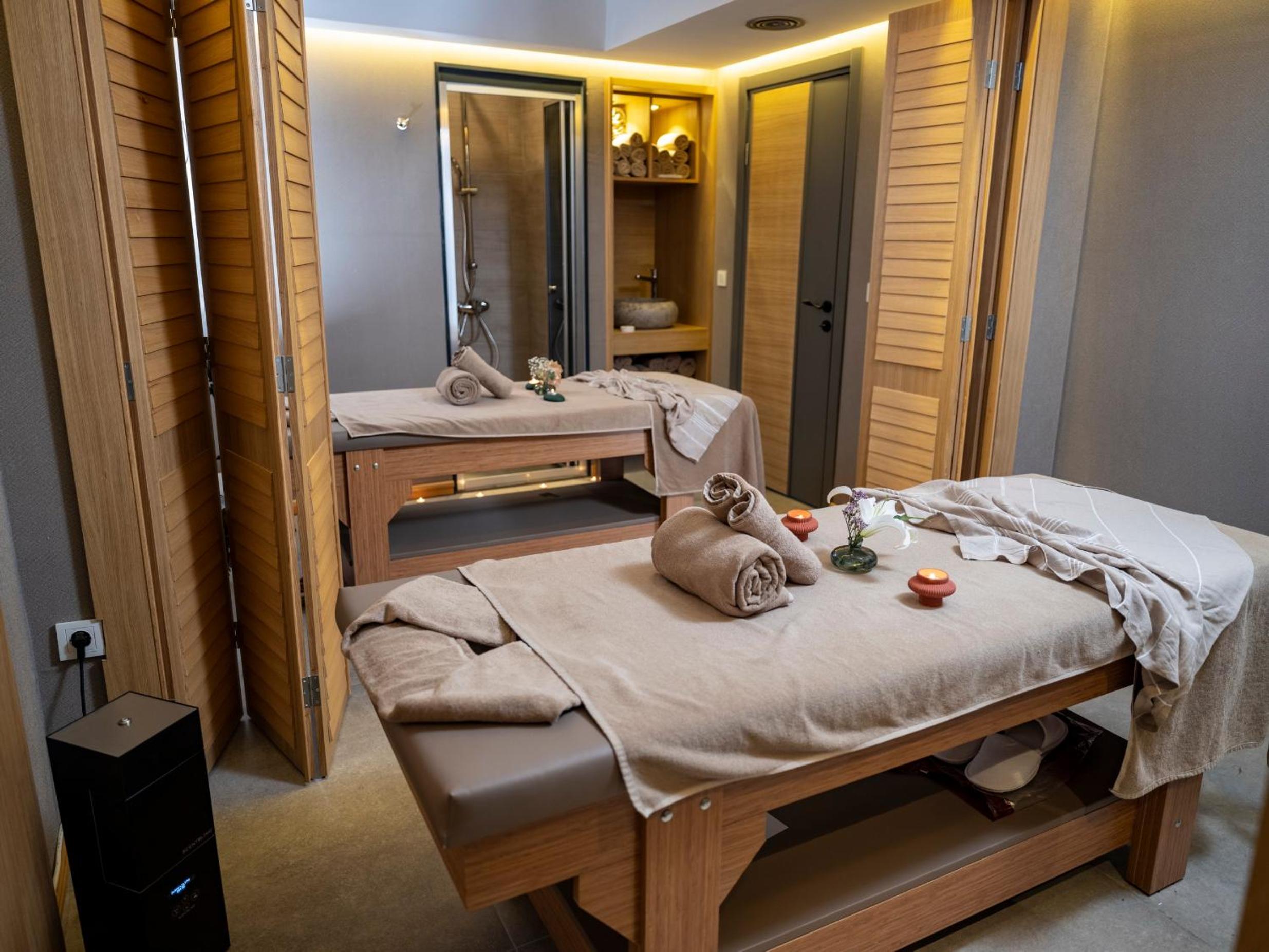 Unwind at the sauna and spa center at Sa'Rezya Hotel after exploring nearby attractions like Cesme Castle and Cesme Marina.