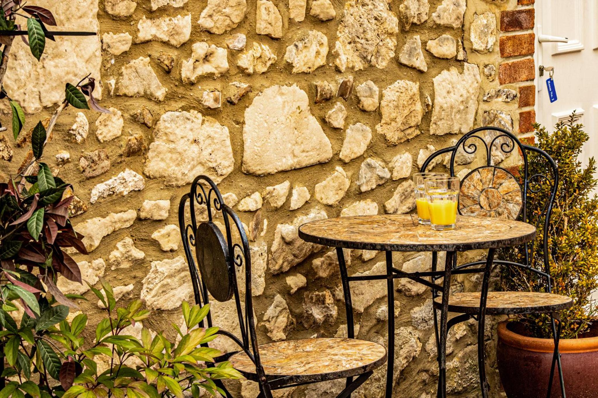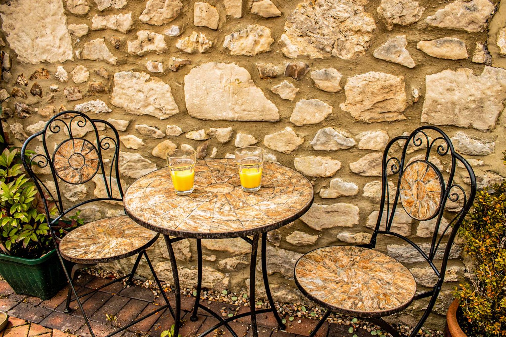 Different room than my last stay, and exactly the same pleasurable atmosphere. Great to have a fridge, and it had a pint of milk in it ready for us. Chairs and table outside each room to sit and relax or smoke.