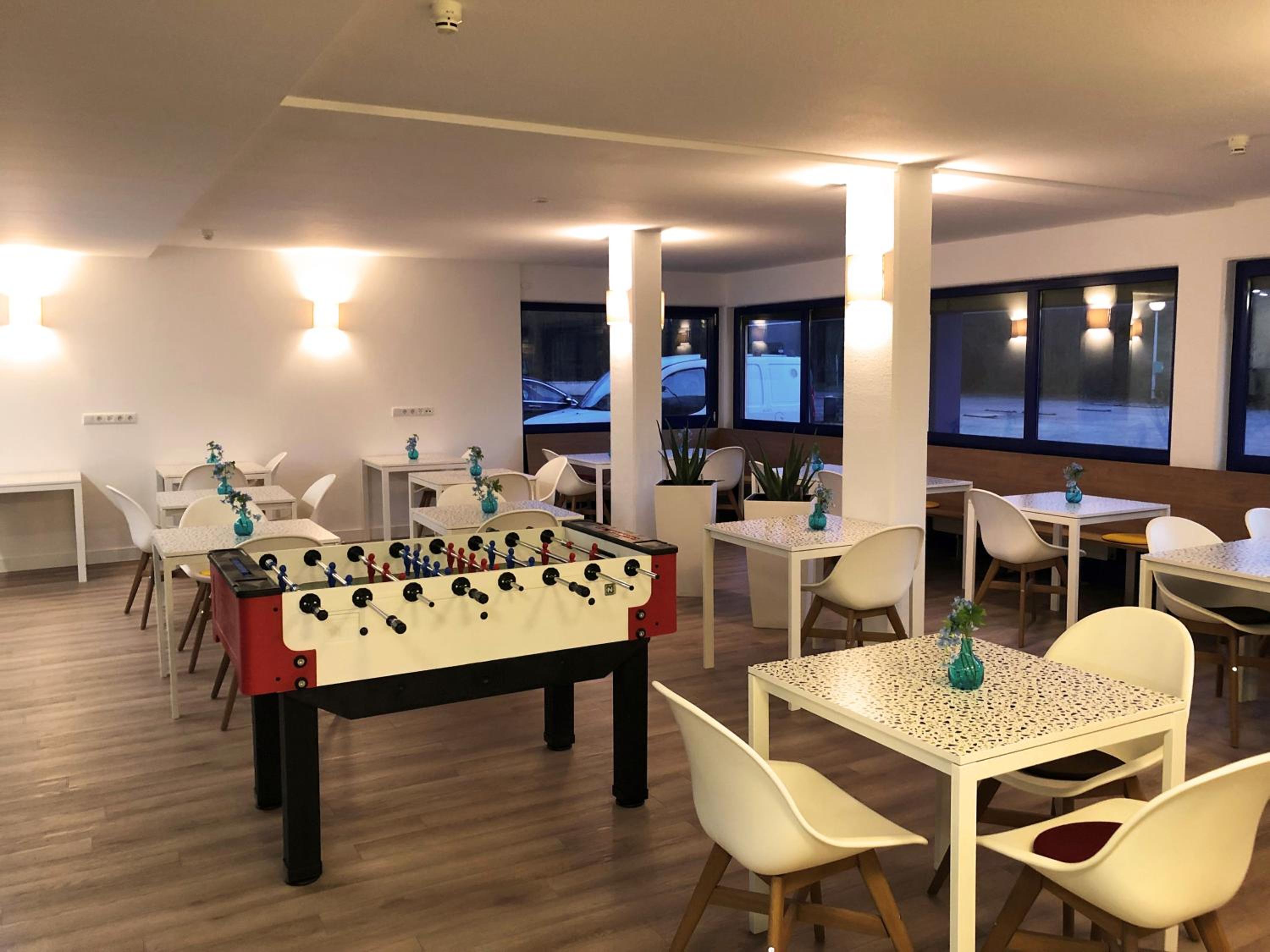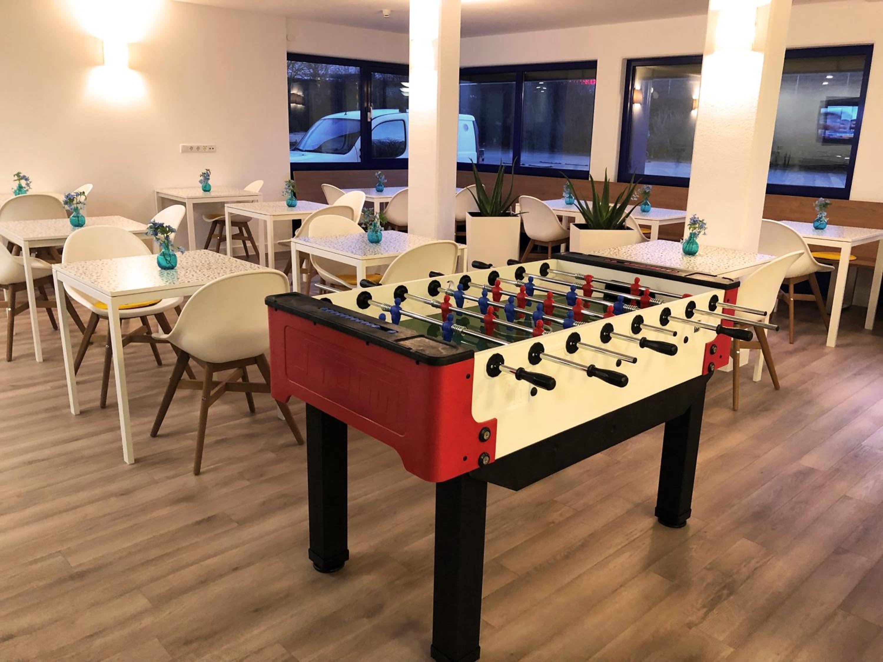 Guests can unwind with a game of table football (Kicker) or indulge in freshly baked pizza or tarte flambée.