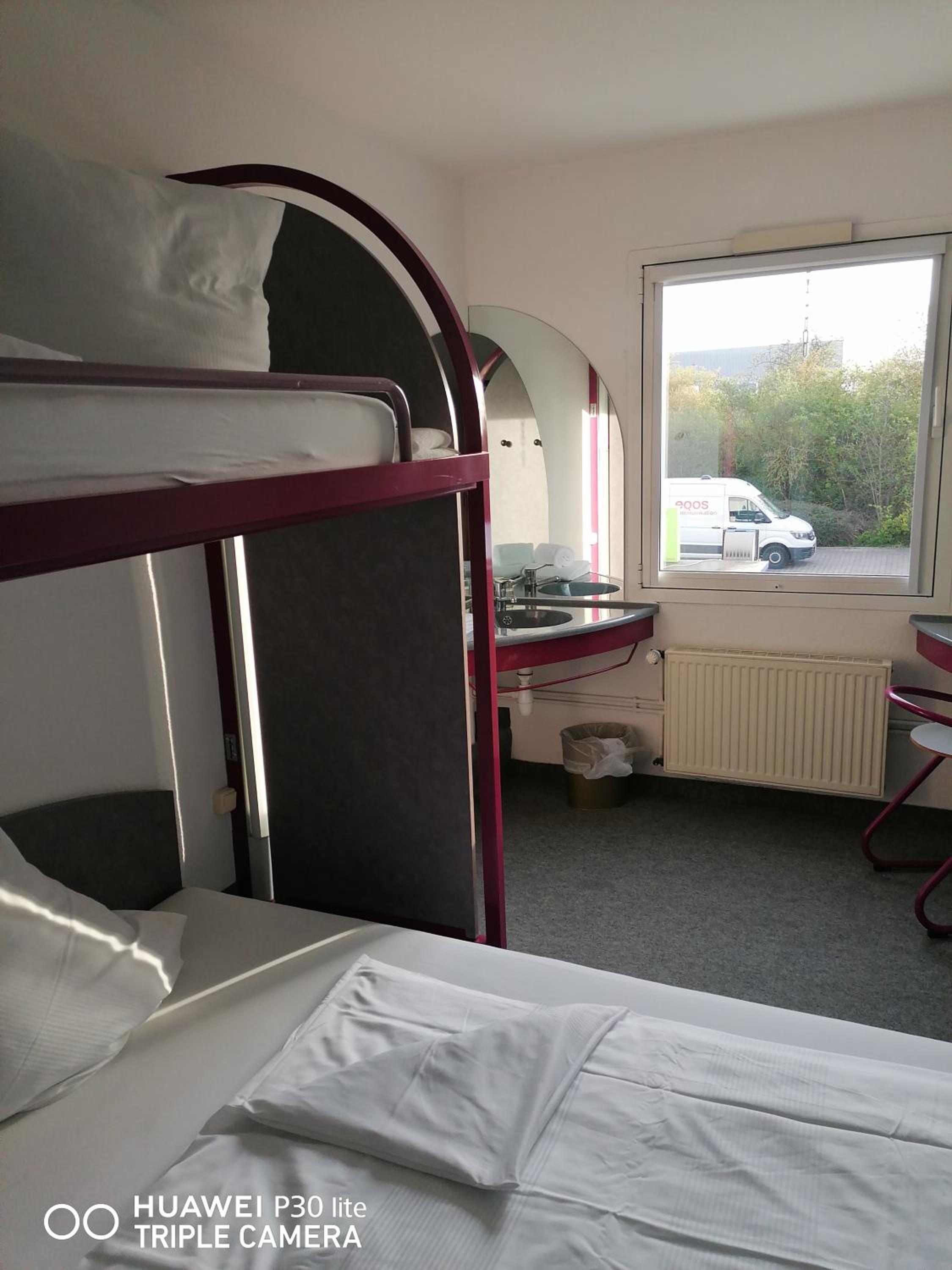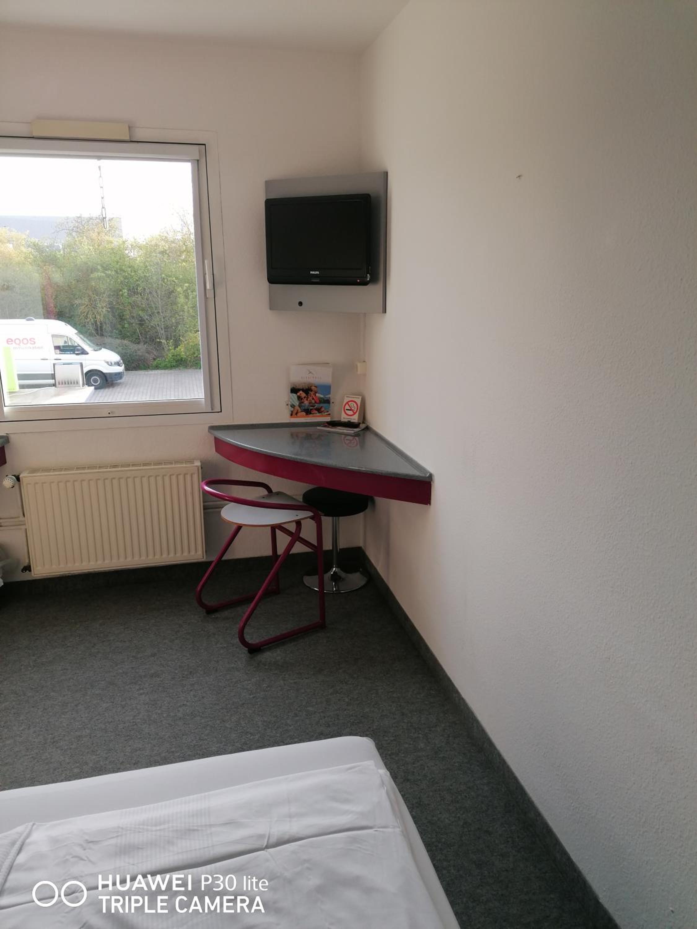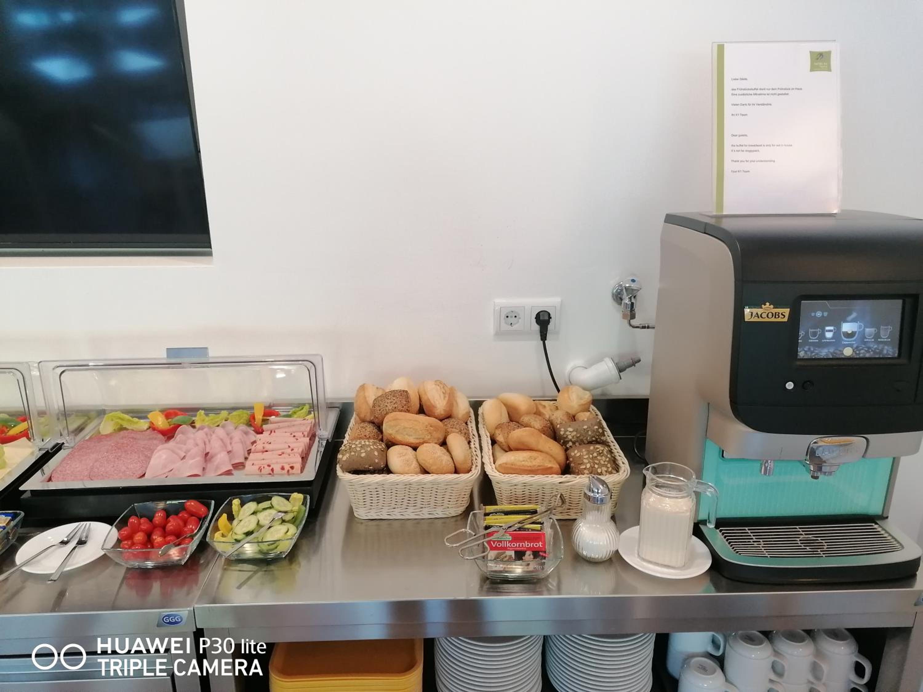 Parkplatz direkt vor dem Hotel, viel Platz, Aufzug vorhanden, trotz später Anreise würde die Rezeption nochmals geöffnet, Getränkeautomaten nur Münzen, mit Frühstückoption (bei uns ca 11€ p.P.)