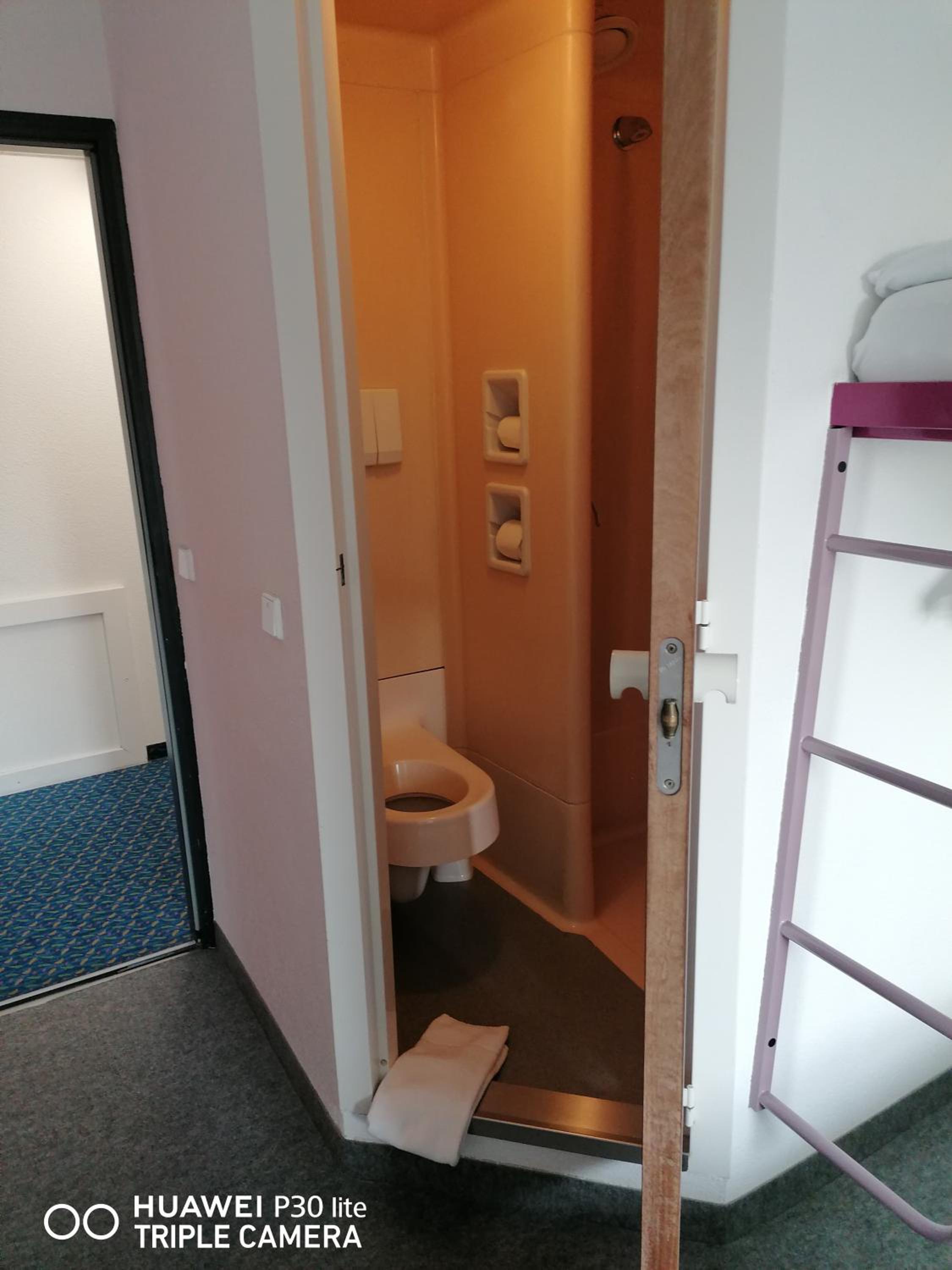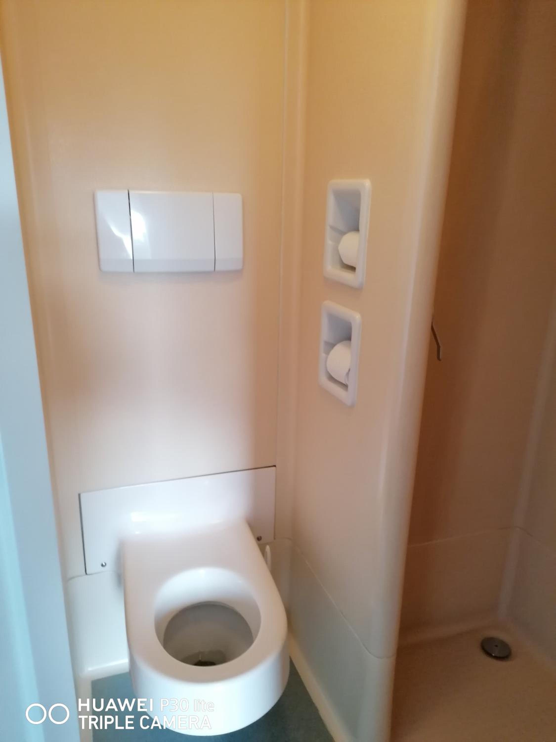 Die BadZELLE, mit Toilette und Dusche, ist ziemlich eng und für Menschen mit Platzangst wird duschen, möglicherweise zum Problem.