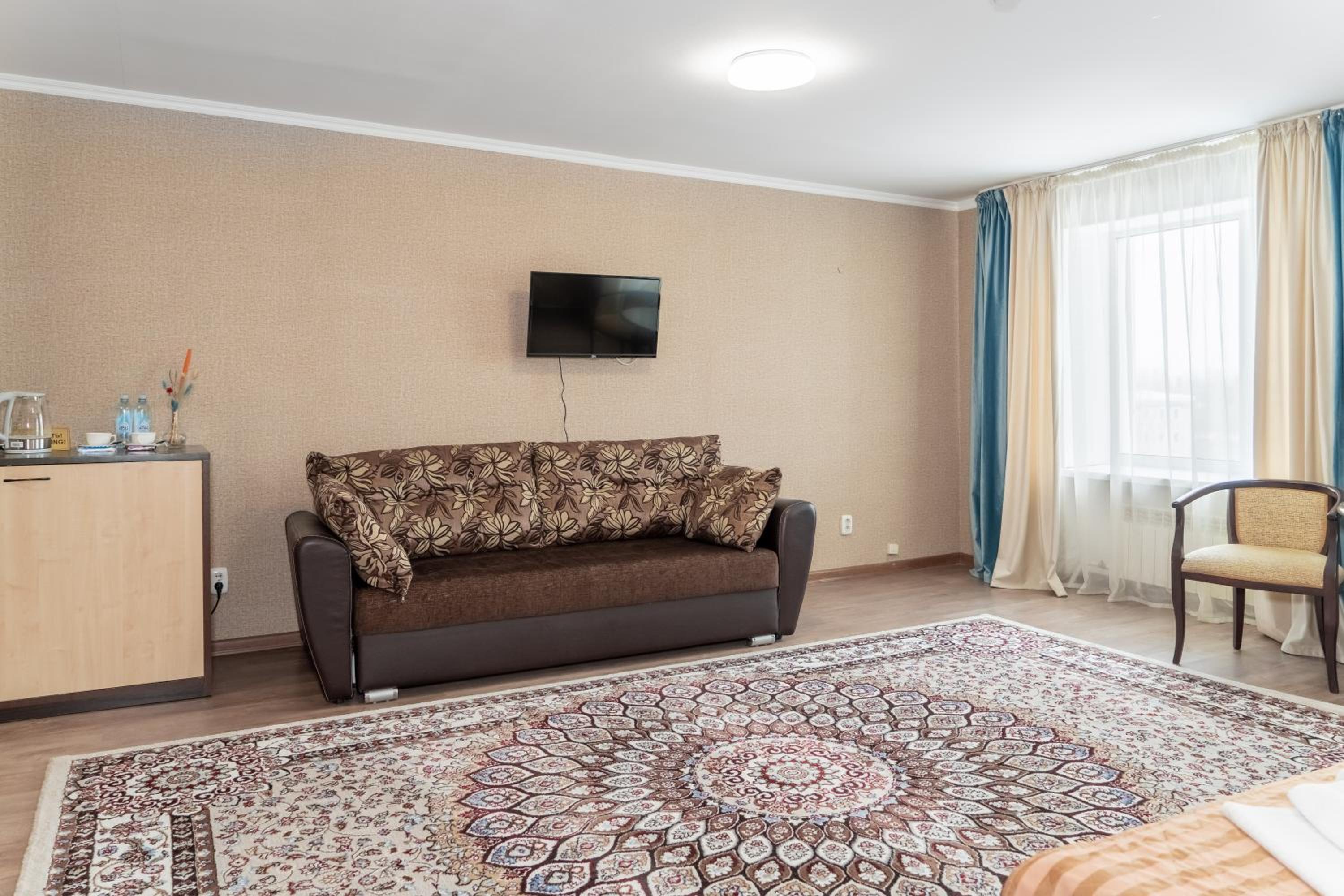 Explore nearby attractions such as the Nur-Astana Central Mosque and Levoberezhye Central Square, both within a 7 km radius. With a bus stop just 100 meters away, visiting Astana Central Station and Astana Airport is a breeze.