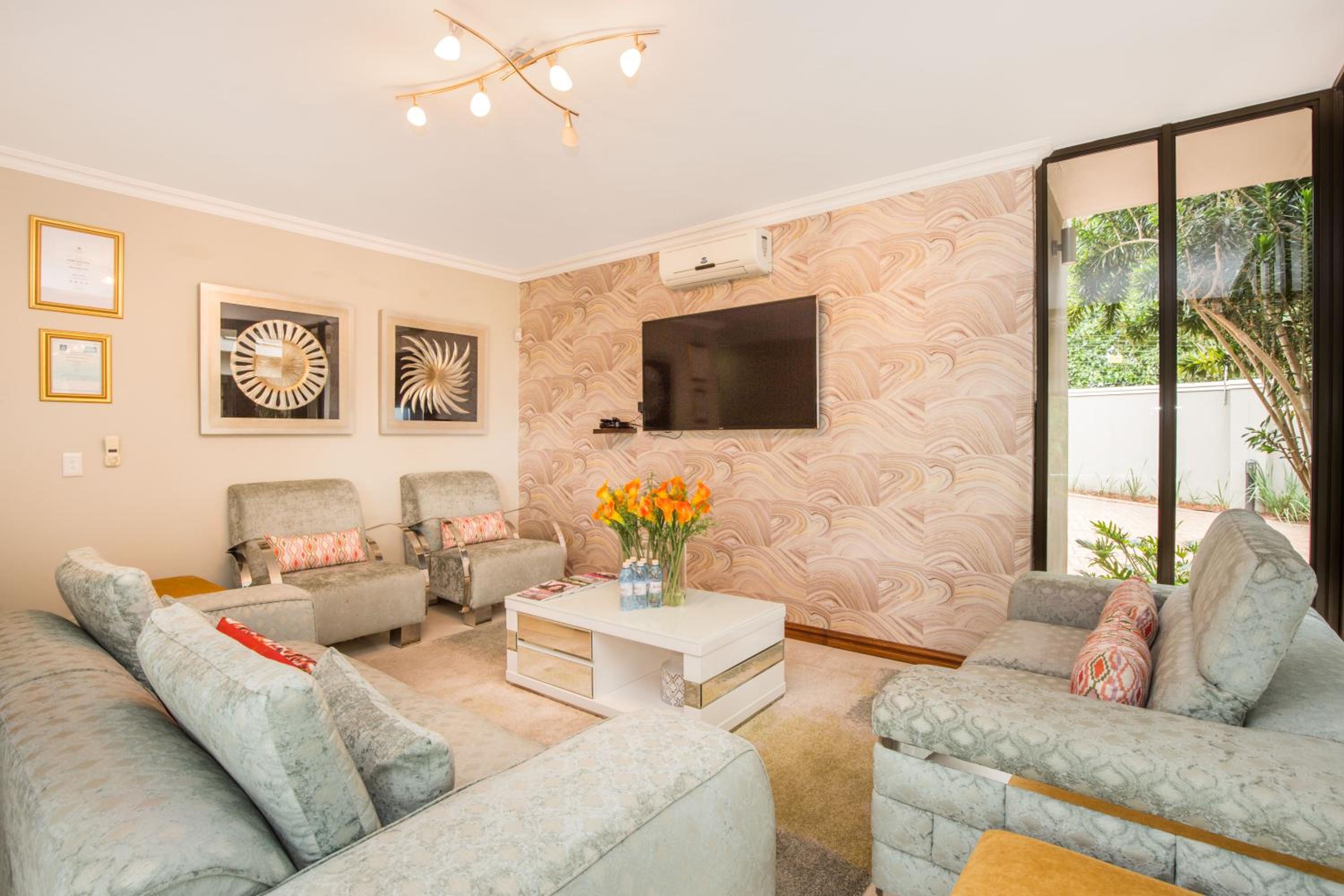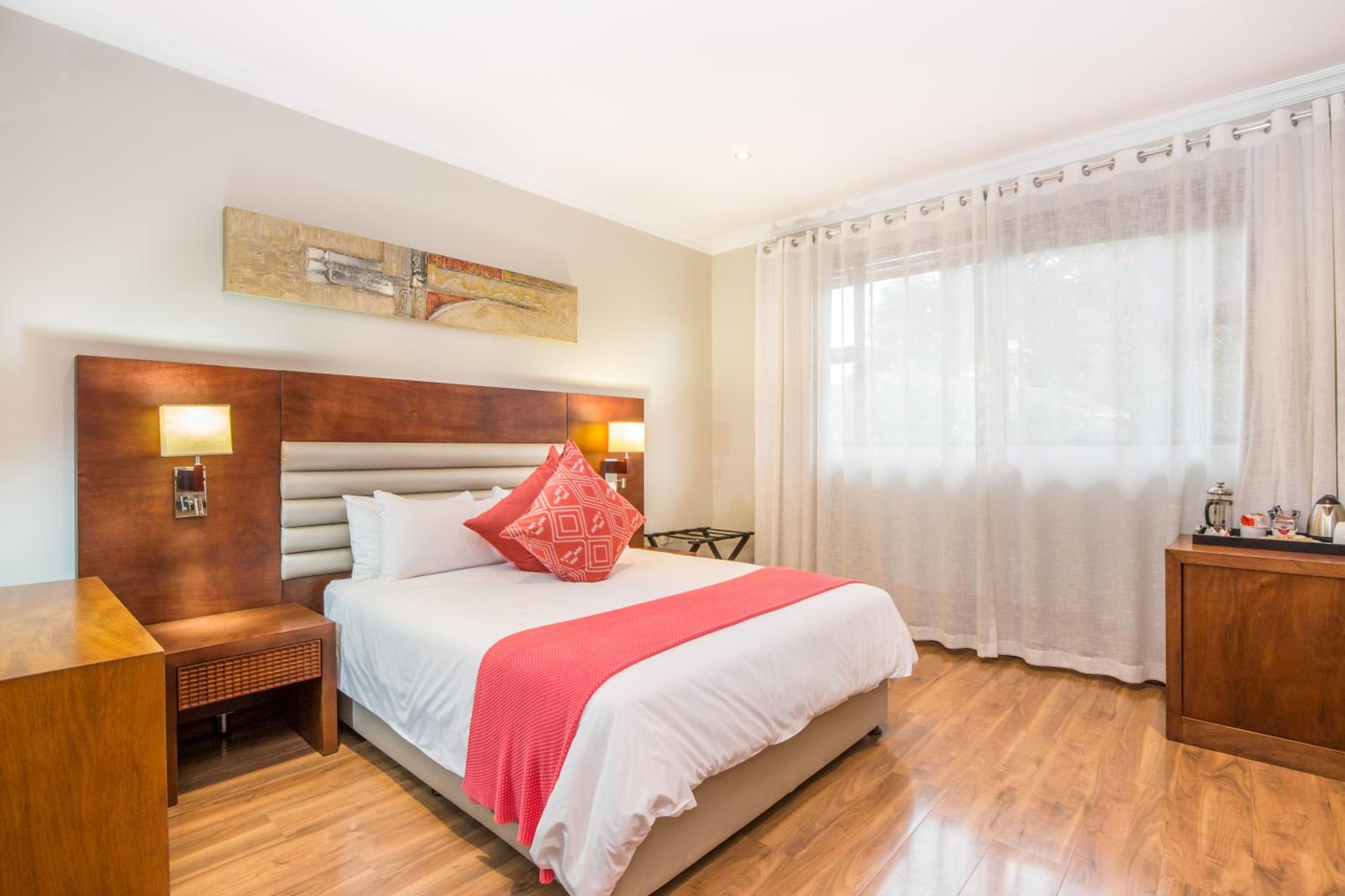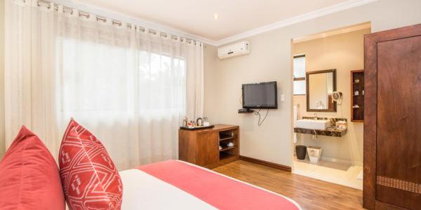 Experience 4-star luxury at Ekhaya Boutique Hotel in Durban. Each room is elegantly furnished with air conditioning, a TV, and a private bathroom. Some rooms even feature a balcony for stunning views.