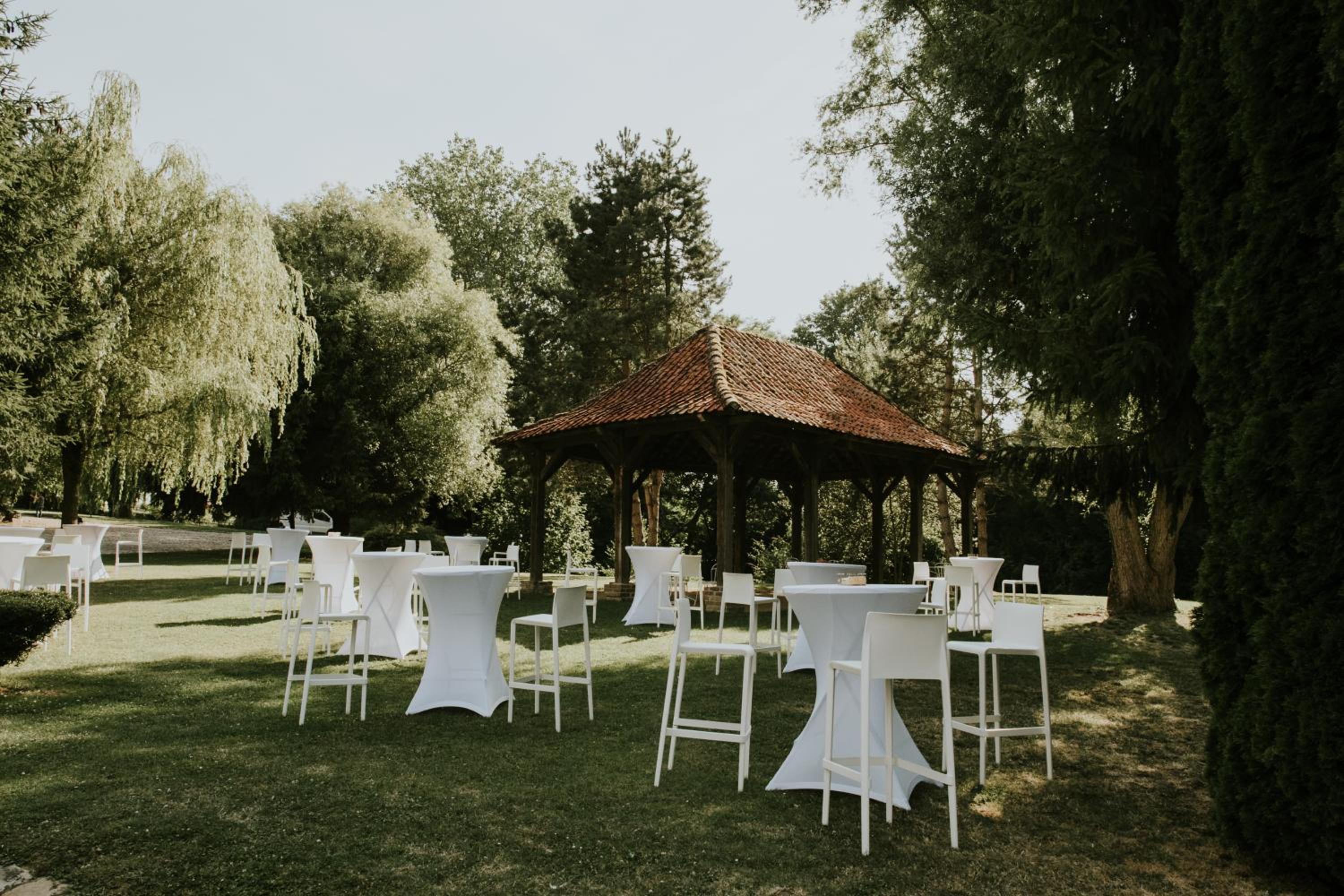 Experience tranquility in the 2-hectares park featuring a picturesque rose garden, a charming terrace, and a serene pond inhabited by graceful swans and geese.