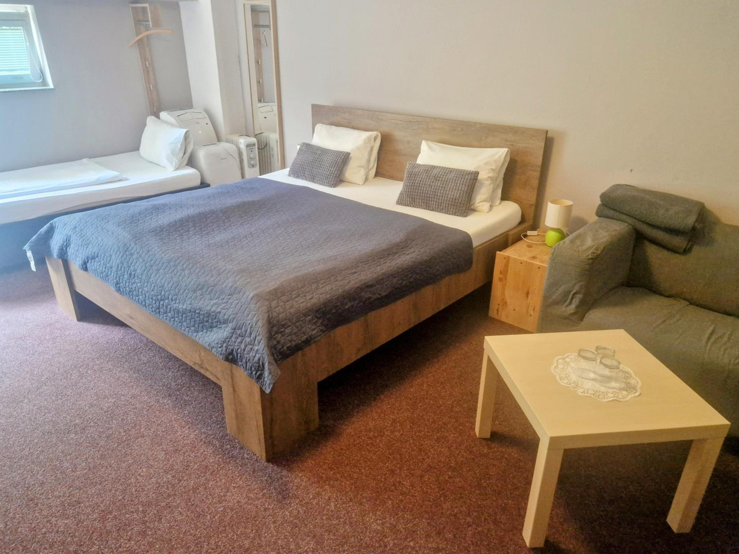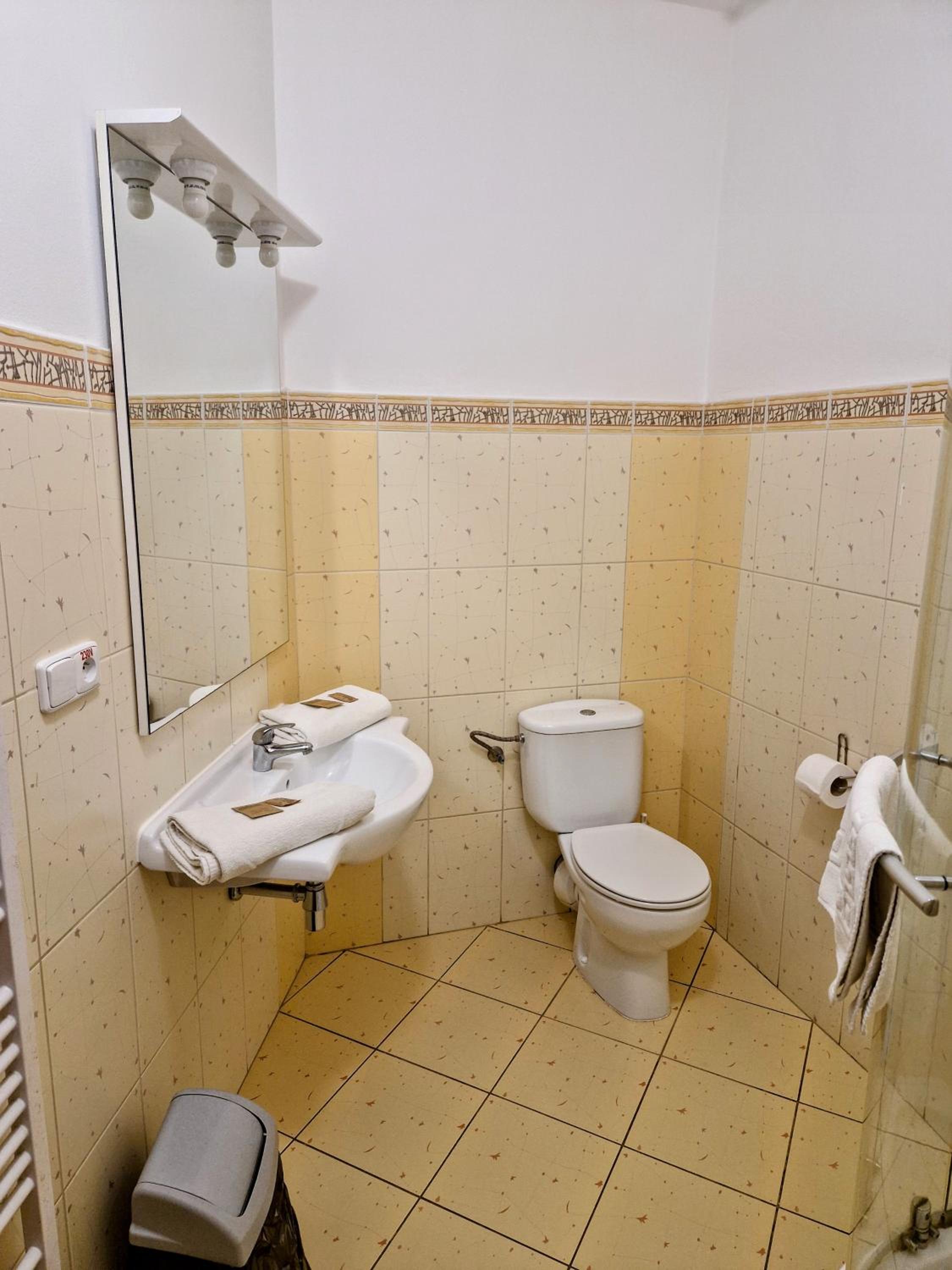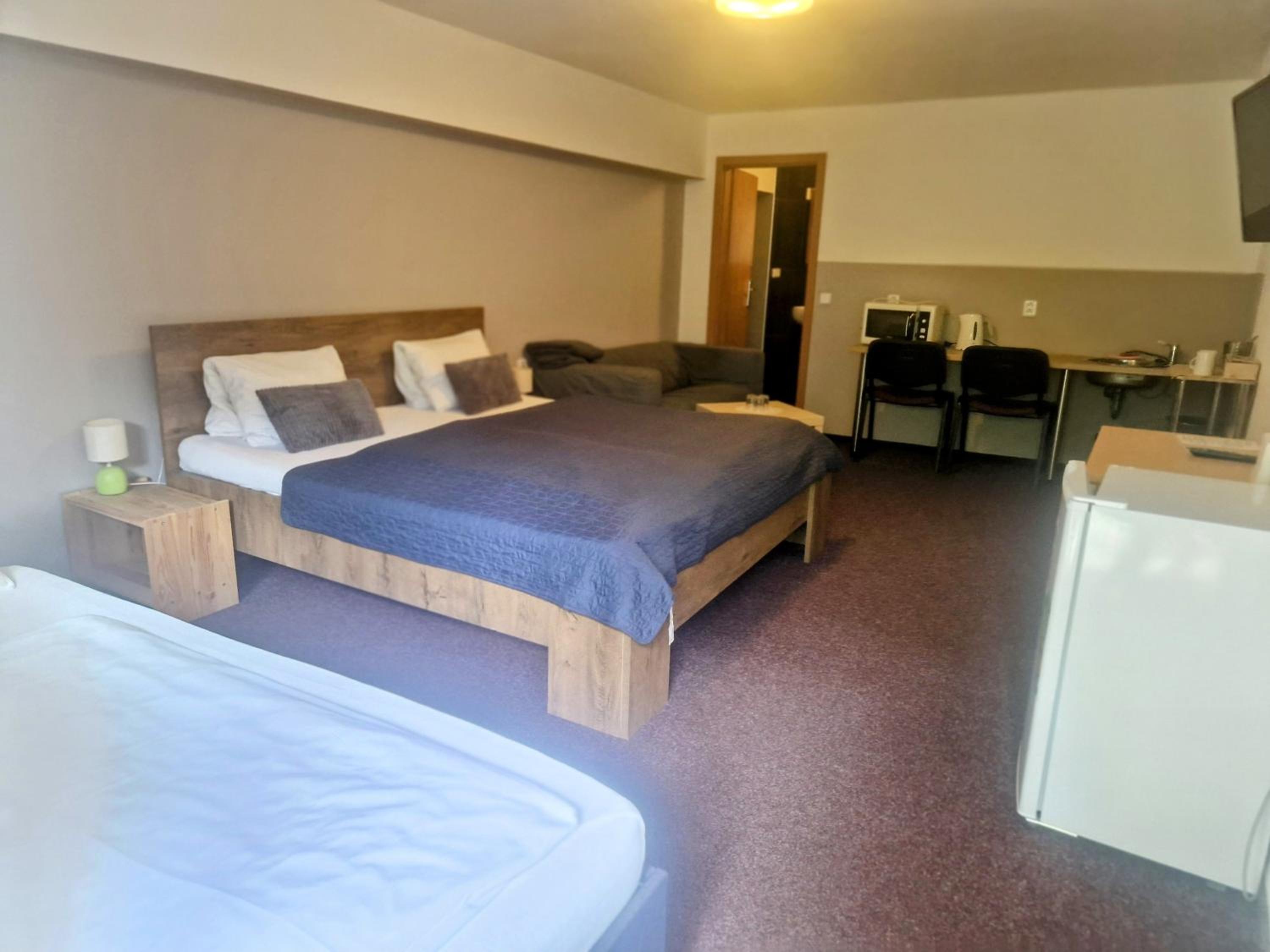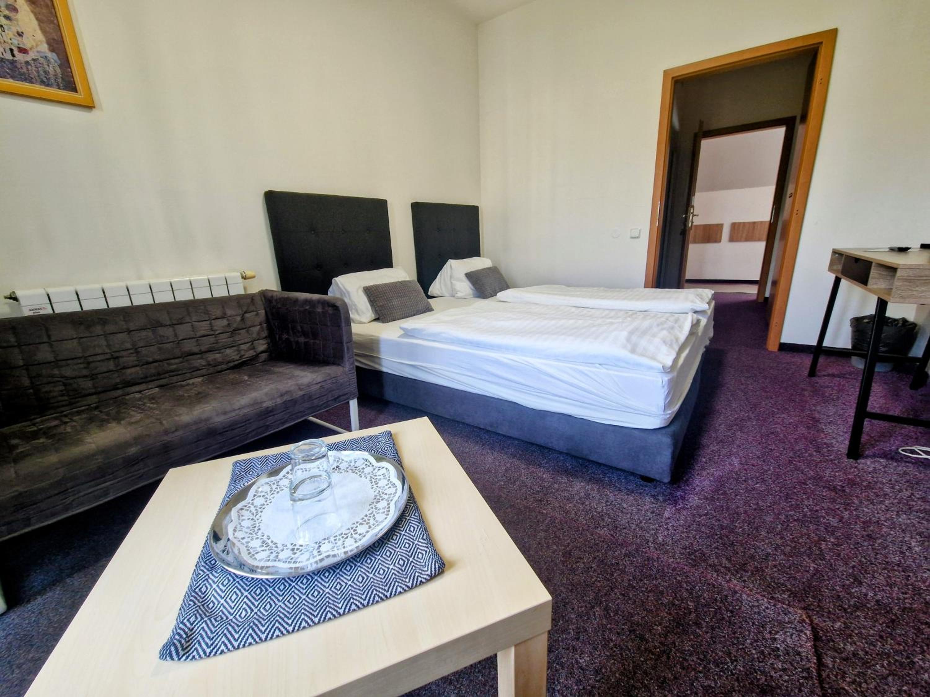 Těšil jsem se na teplou snídani, ta se bohužel nekonala. To že máme připravený balíček jsme se dozvěděli až při příjezdu(nakonec možná dobře, protože snídaně nejsou v hotelu, ale na jiném místě, což nikde uvedeno také není). Objednaná byla maxi manželská postel, v pokoji byly ale oddělené postele a u obou byly ulámané nohy, takže jsme se postupně v noci budili na nucenou opravu. Navíc umístění postele přímo u topení (viz. foto) taky není šťastné řešení. Čistota, řekl bych nic moc, uklizeno jen kam oko dohlédne. Čaj a káva k dispozici na chodbě - sice ano, ale čaj pouze černý a kávovar sice funkční, ale zasloužil by si vyčistit. Pro ty, co jedou autem, k parkovacím místům se lze dostat pouze z vedlejší silnice na kterou se dostanete že světelné křižovatky hlavní silnice cca 59m od hotelu. Pokud pan majitel tvrdí že v popisu je uvedeno, že jsou snídaně jinde, ať si znovu přečte, co je na Booking.com uvedeno. Manželská maxi postel byla zvolena při výběru pokoje, je možné že to Booking nezpracoval. Rozbité postele nepotřebuji obhajovat, z fotek je patrný stav pokoje.