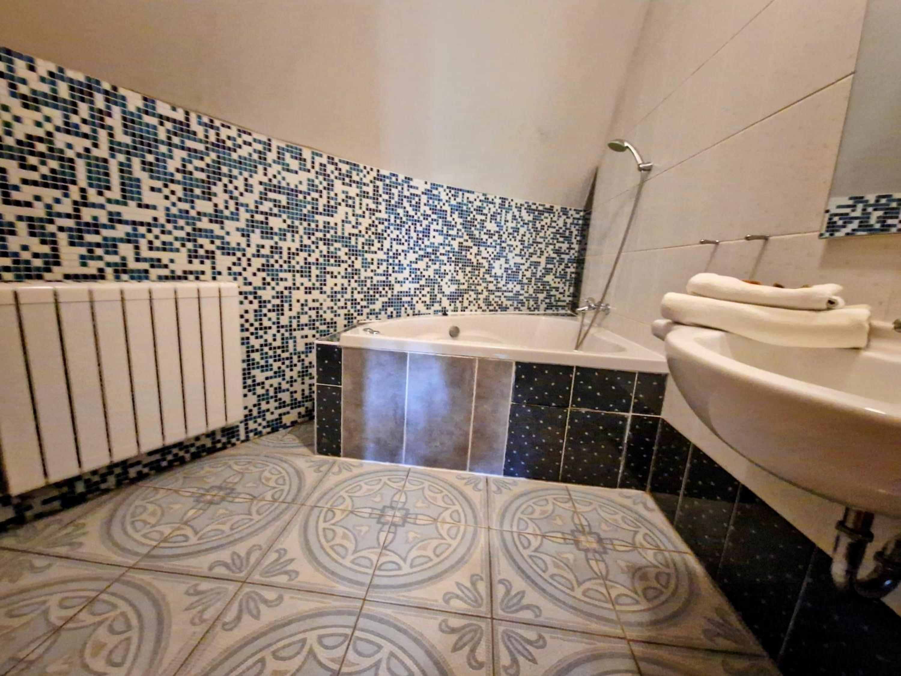 Ve sprchovém koutě netěsnily dveře, takže po použití sprchy se na toaletu dalo jít pouze v gumovkách - všude stála voda. Vyvýšený schod( nebo pódium nebo co to bylo) uprostřed pokoje - naprostý nesmysl, o který jsme stále zakopávali. Malá lednička a kdyby jsme měli dva kufry, tak druhý musíme dát na chodbu - už by se do pokoje nevešel. Kola uschovaná v jakémsi skladišti, i když jsme dopředu dávali vědět, že je budeme mít a zda to nebude problém. A to nám po příjezdu bylo dokonce řečeno aby jsme je nechali venku nebo je vynesli do patra k recepci ( úzké zatočené schody, těžká elektrokola ), že pro kola nemají prostory ( přišel schvalovací emeil, že kola nejsou problém). To bylo dost velké rozčarování.