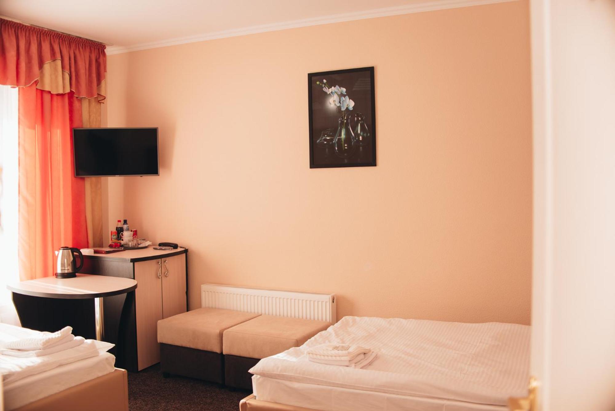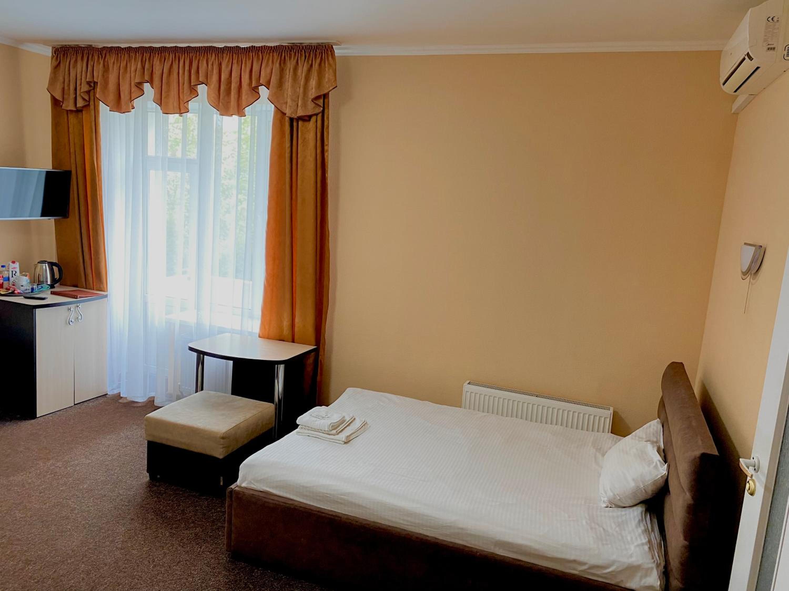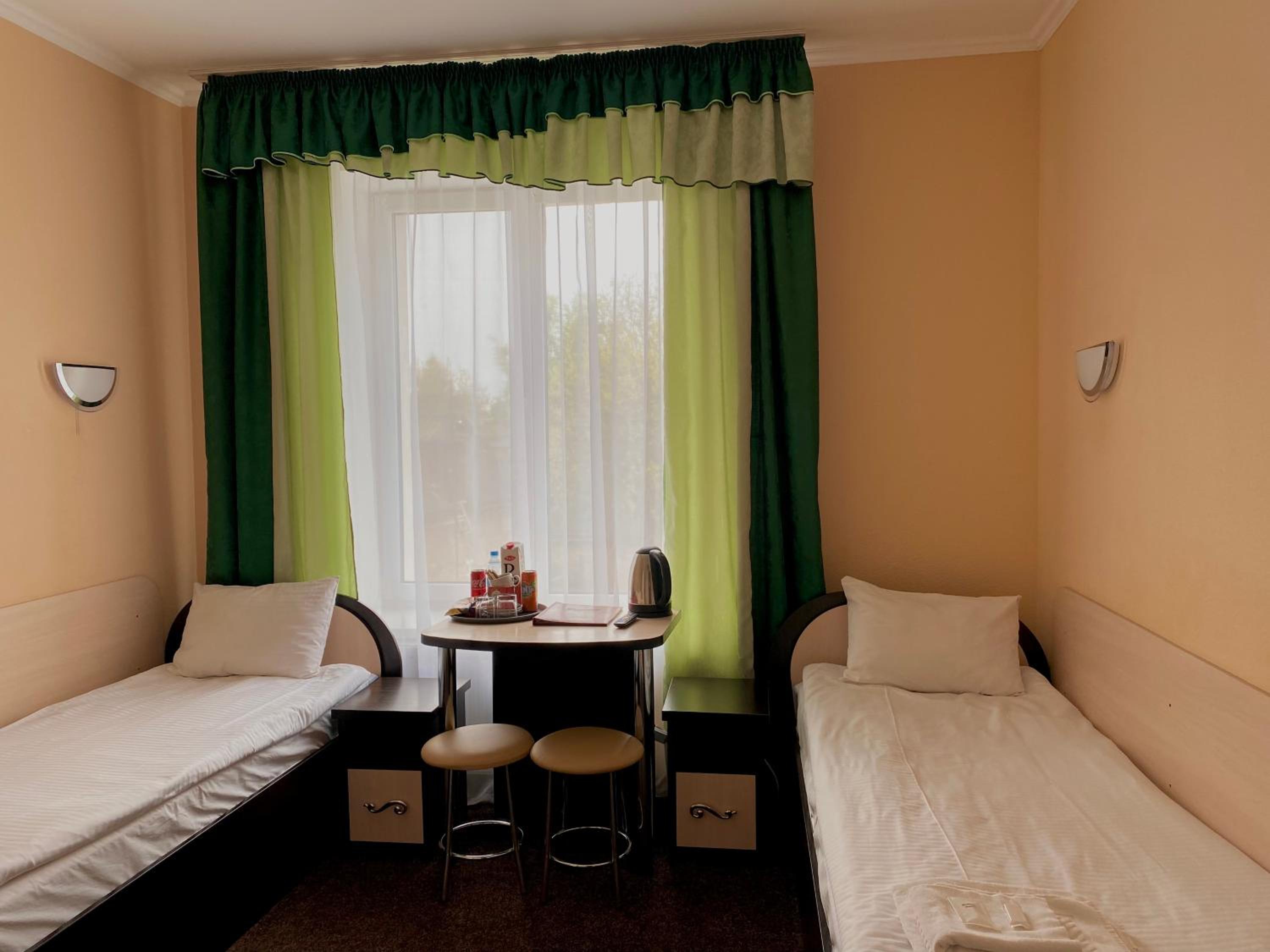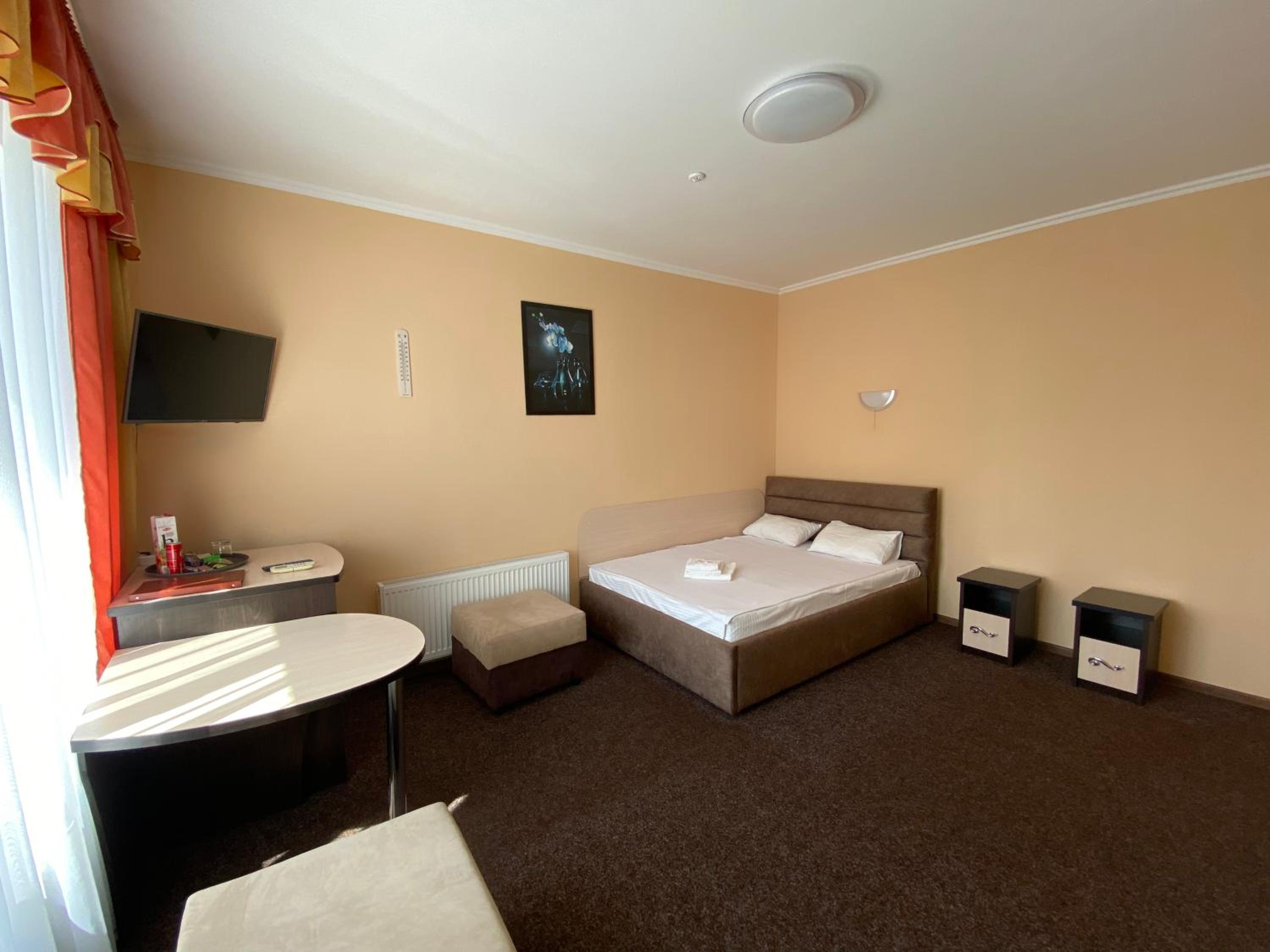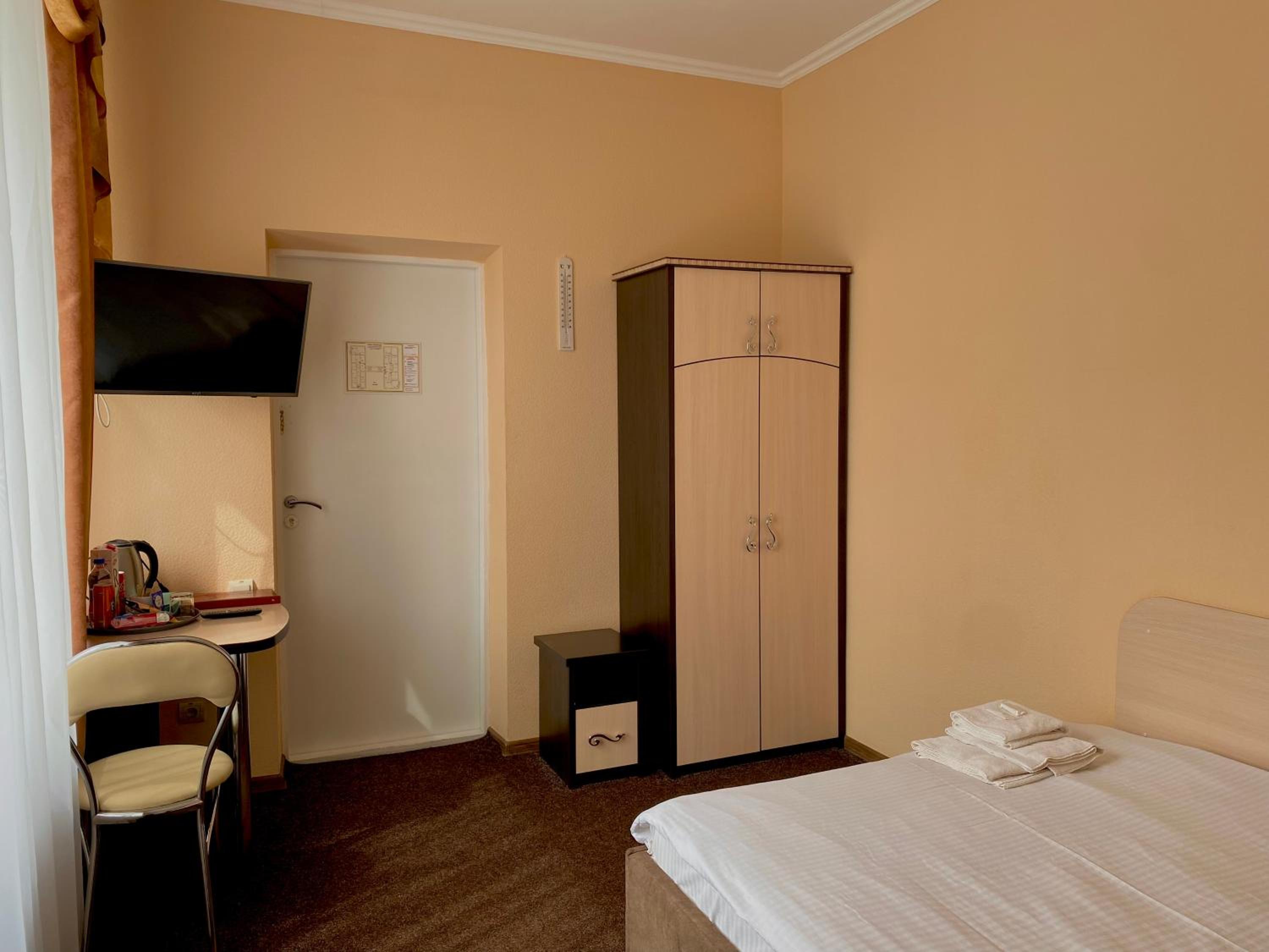 A comfortable situation in Romny, this structure is well organized, has nicely sized rooms and bathrooms, beds and bedding more than adequate for a pleasant stay, and temperature in this season was very comfortable. Good water pressure in the shower and plenty of hot water. The hotel offers half board - both dinner and breakfast are hearty and abundant. Definitely a good option for a stay in this area.