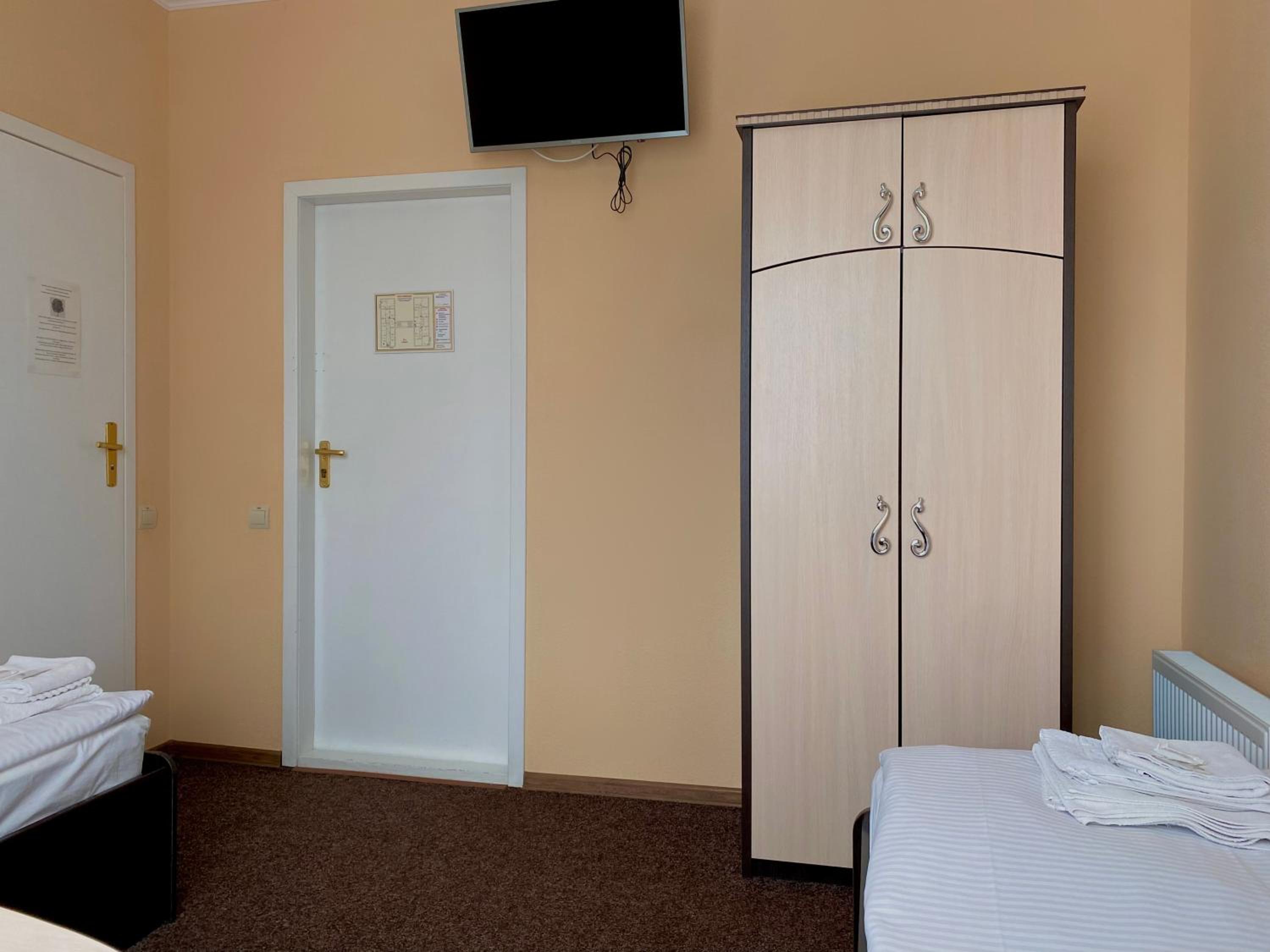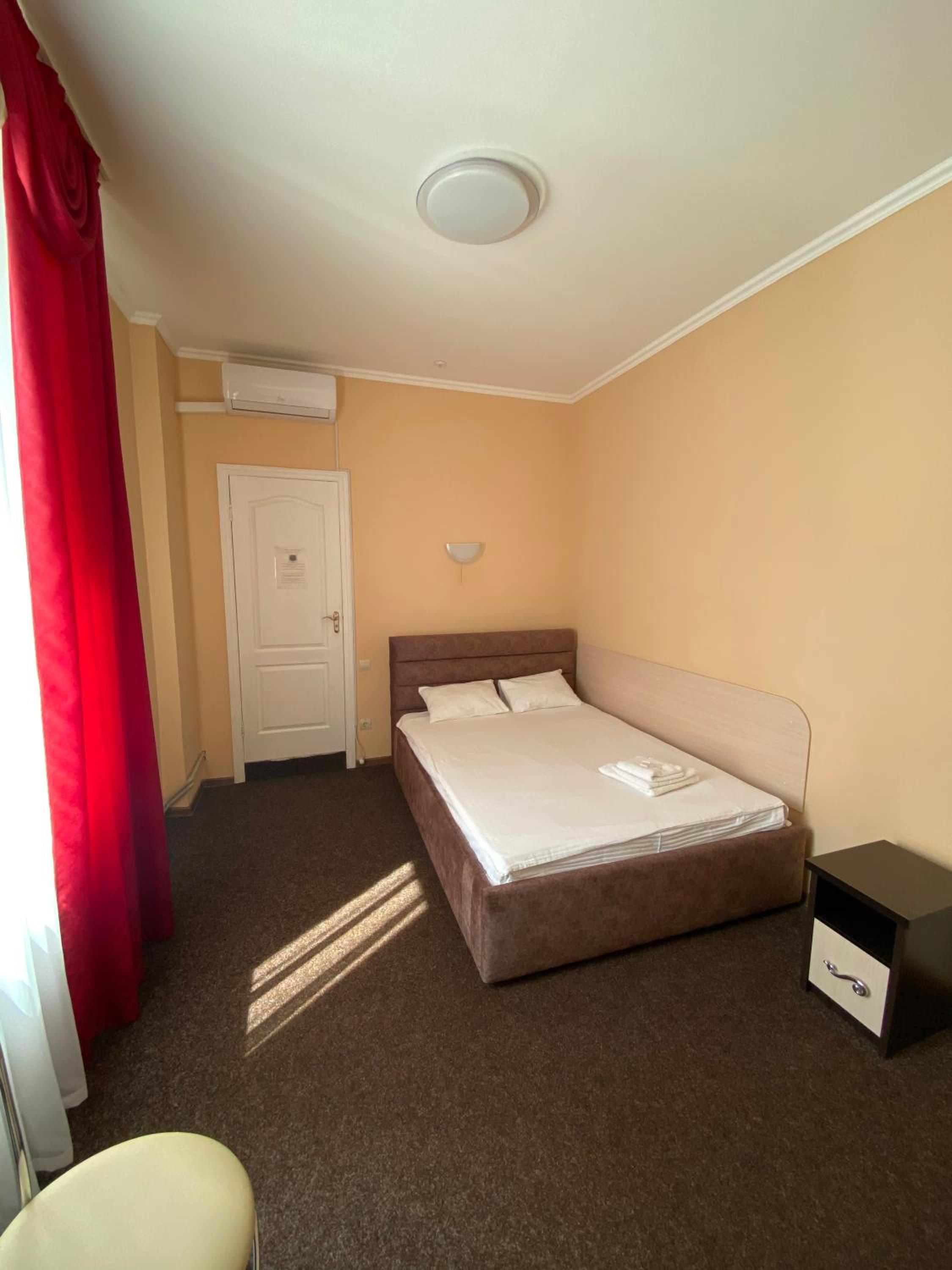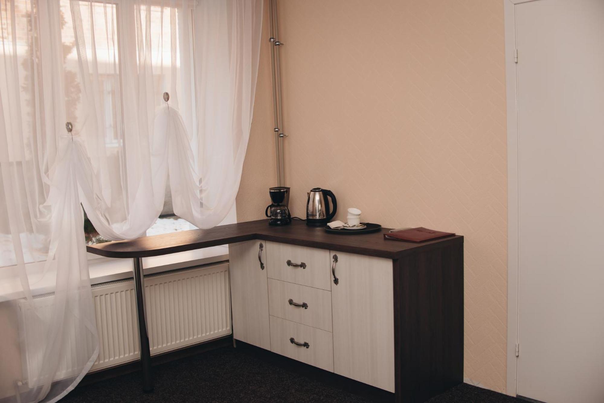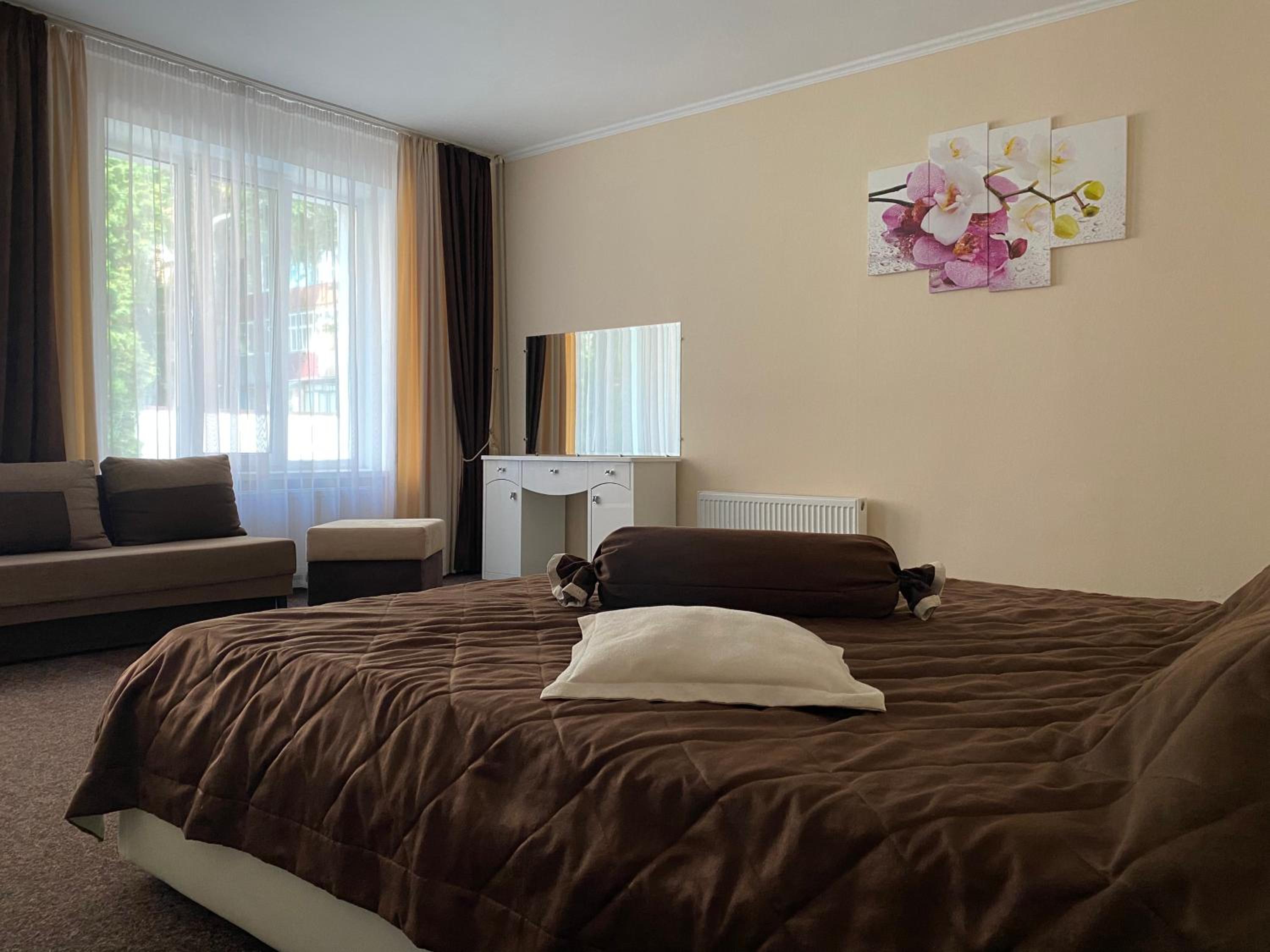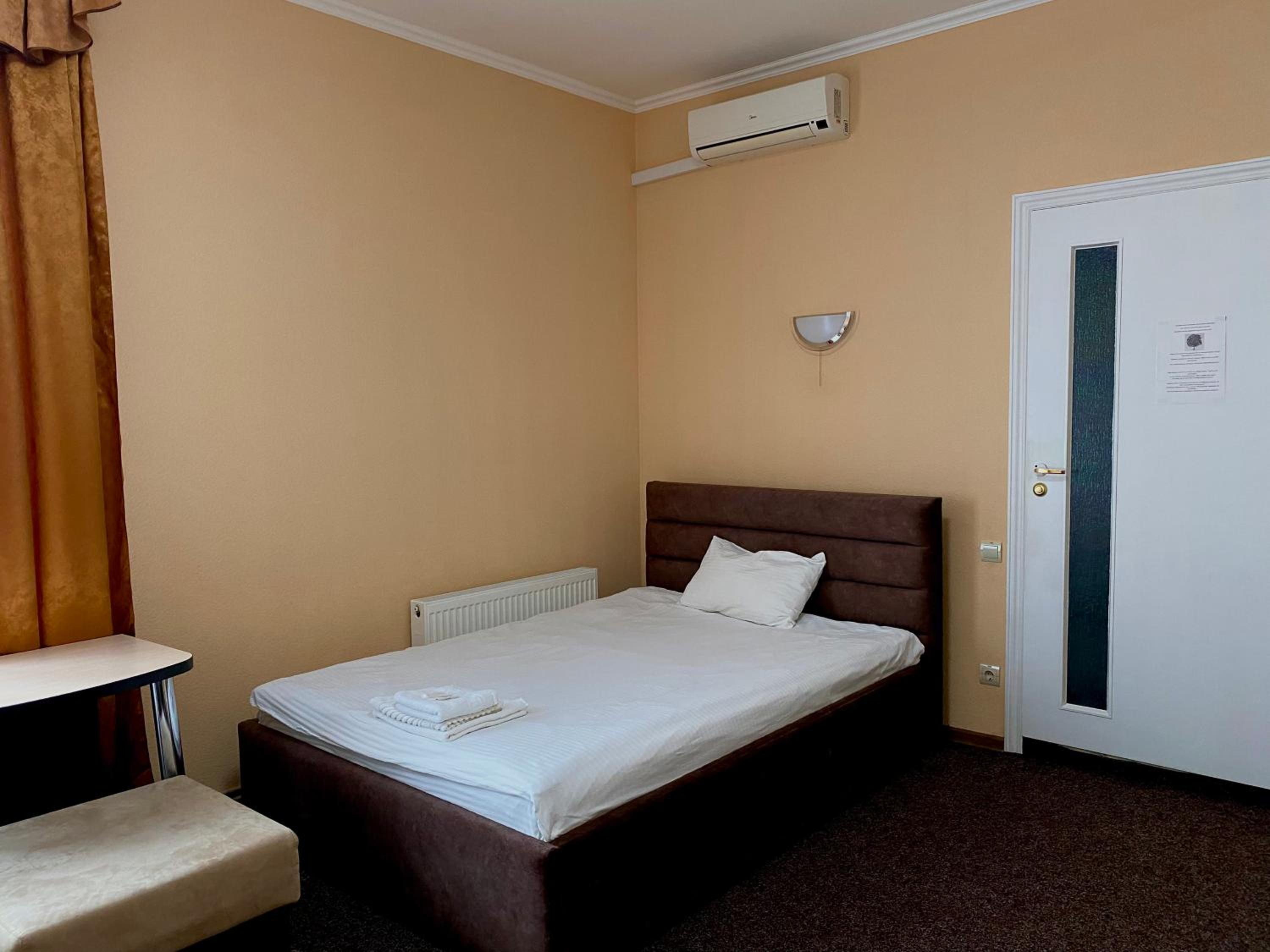 A comfortable situation in Romny, this structure is well organized, has nicely sized rooms and bathrooms, beds and bedding more than adequate for a pleasant stay, and temperature in this season was very comfortable. Good water pressure in the shower and plenty of hot water. The hotel offers half board - both dinner and breakfast are hearty and abundant. Definitely a good option for a stay in this area.