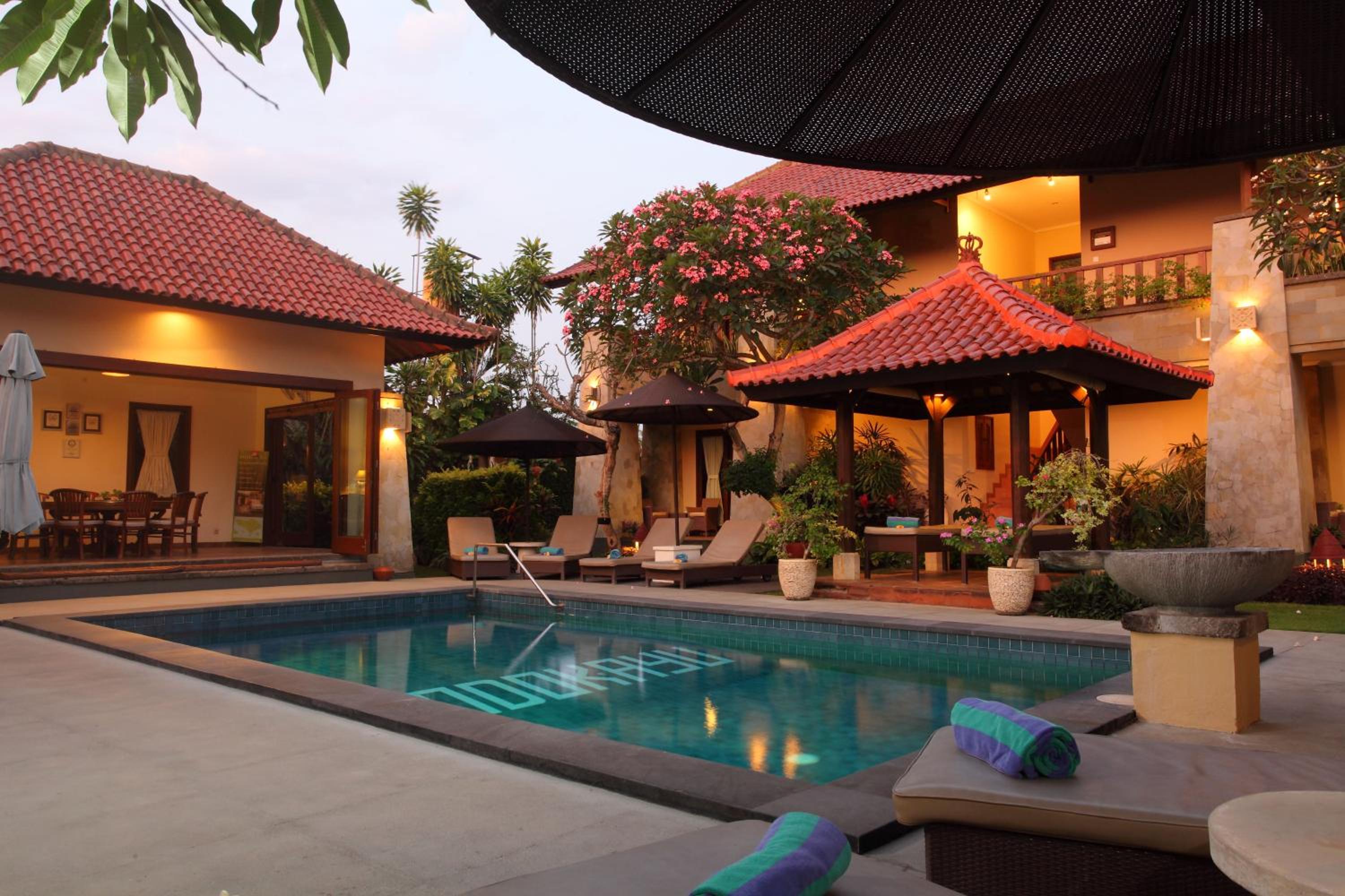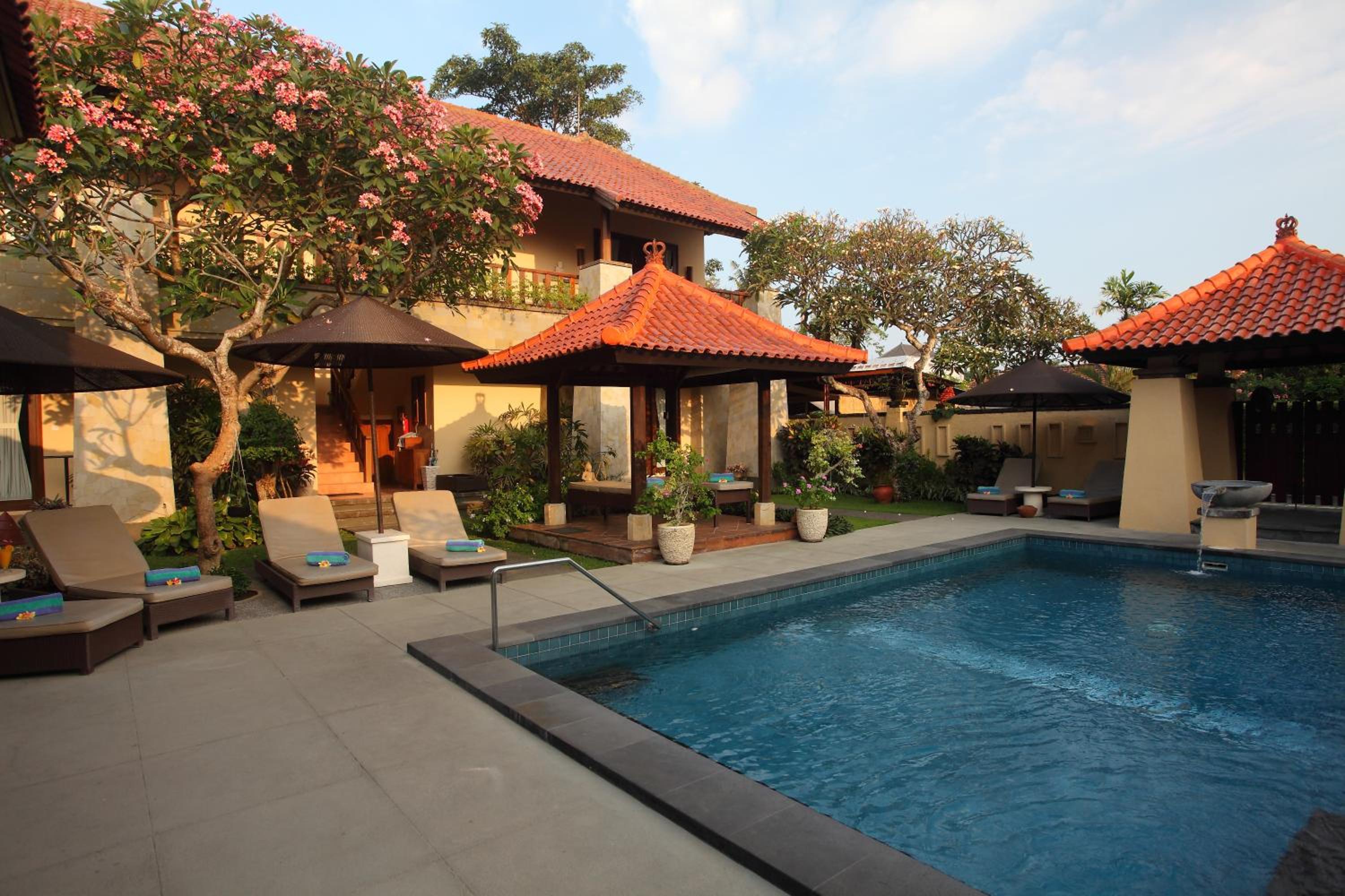 Lovely big clean room with balcony and quiet area with mostly local people. Comfy beds. Good aircon and shower. Not super close to the beach but if it was, it would be more expensive. The gardens and pool were beautiful and the breakfast was great. Staff were beautiful too. It's more independant accommodation (for people who have been to Bali before and don't need help to organise tours, transport, find restaurants, etc.) If you had a scooter it would be perfect. We would definitely stay again.