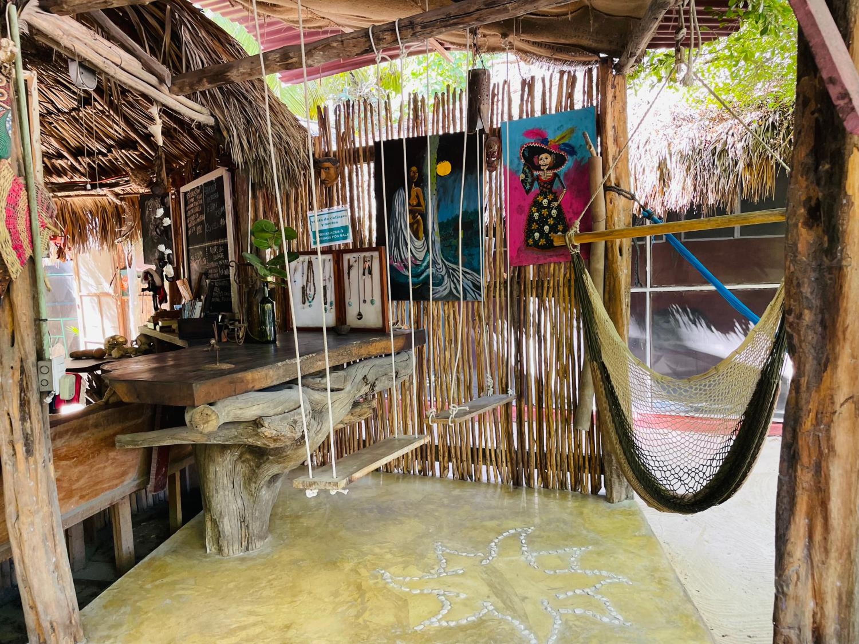 Every single detail of this place is deeply considered and handmade. Less of a tourist establishment and more of a home for Travellers, this place is a magical oasis. Mauricio and Aaron are both artists, and their sculptures, batiks, paintings, and handmade furniture give this place a unique and loving feeling. I wish I had been able to stay longer! There are three sweet dogs who will hang out with you around the grounds or walk you the block and a half to the beach. I enjoyed a wonderful homecooked meal and was able to walk the beach at sunrise in the morning. Good playlists too.... Mauricio is an interesting and welcoming person. I have nothing but divine admiration for this place. Will be returning.