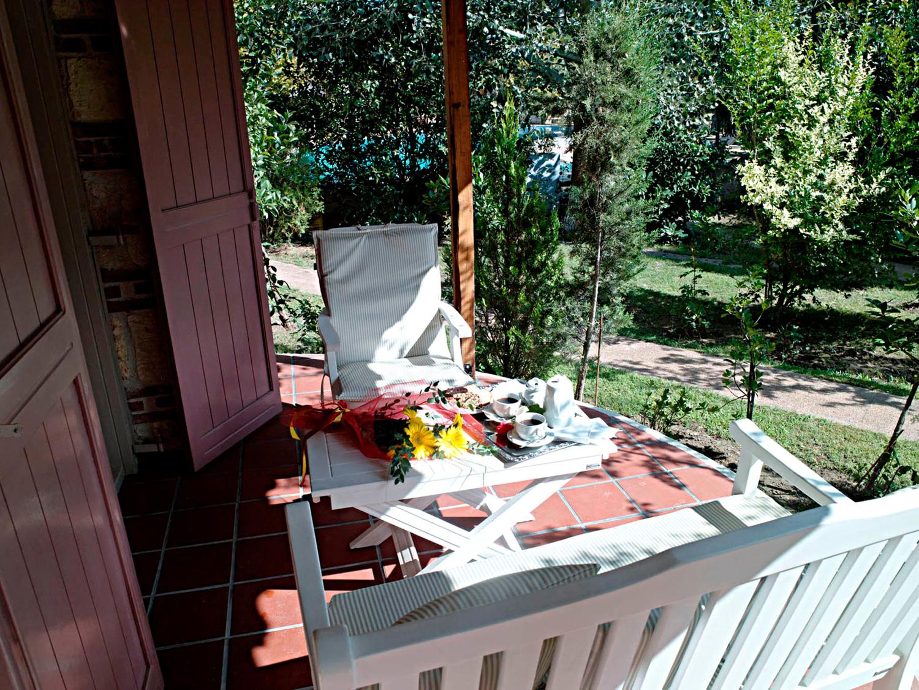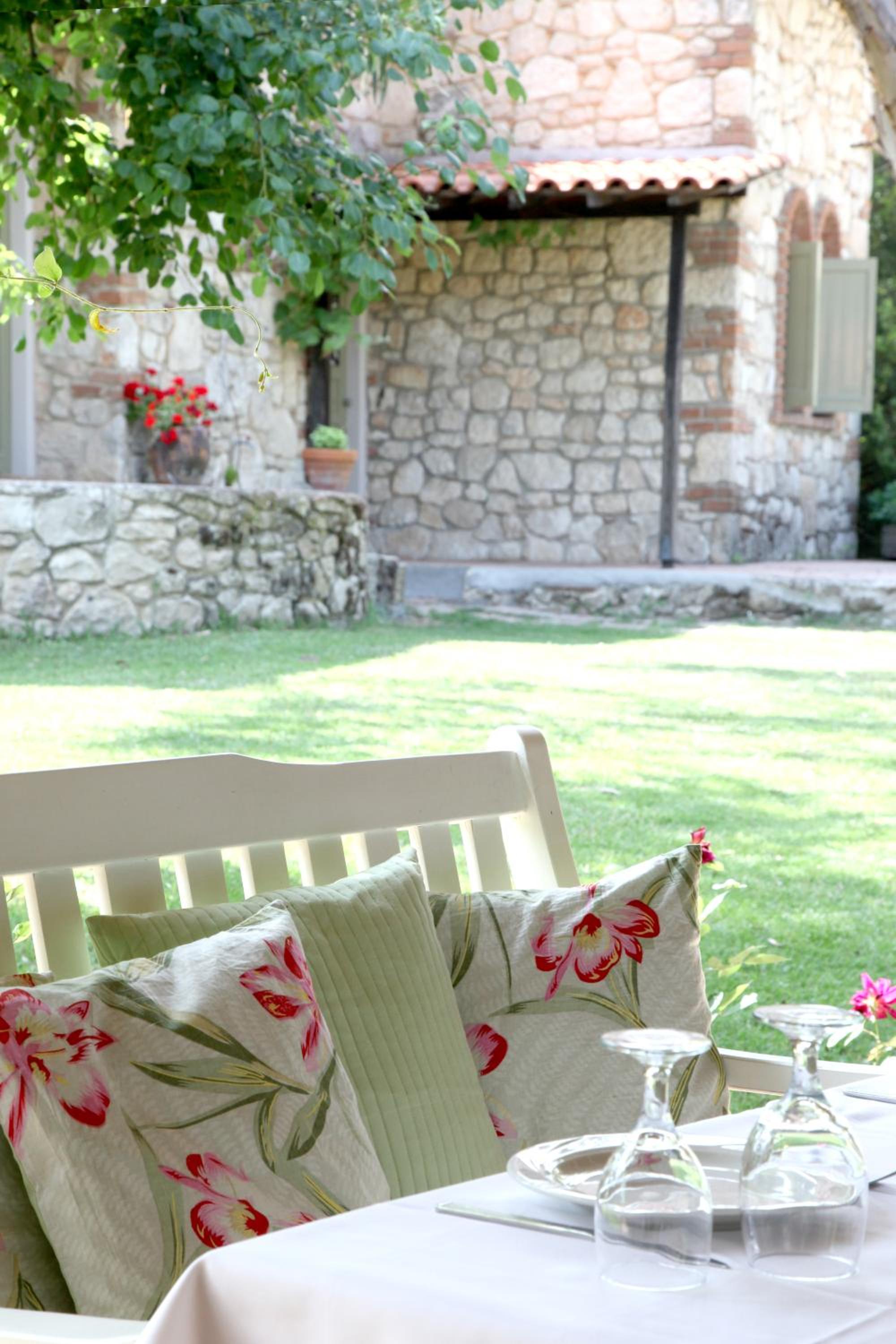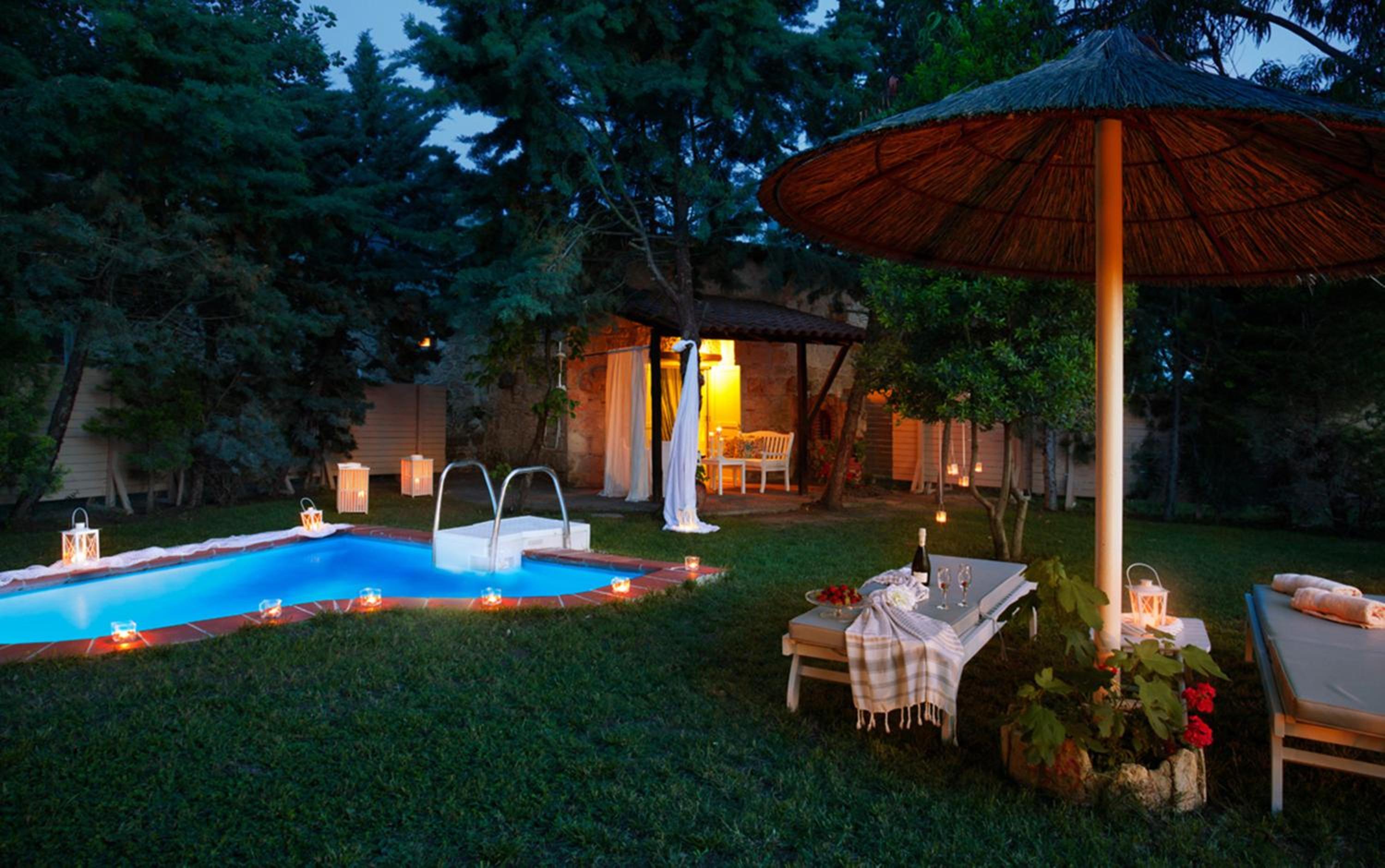 Secluded Gardens and Eco-Friendly Construction: Nestled among gardens with olive and fruit trees, this stone and wood hotel blends seamlessly with nature.