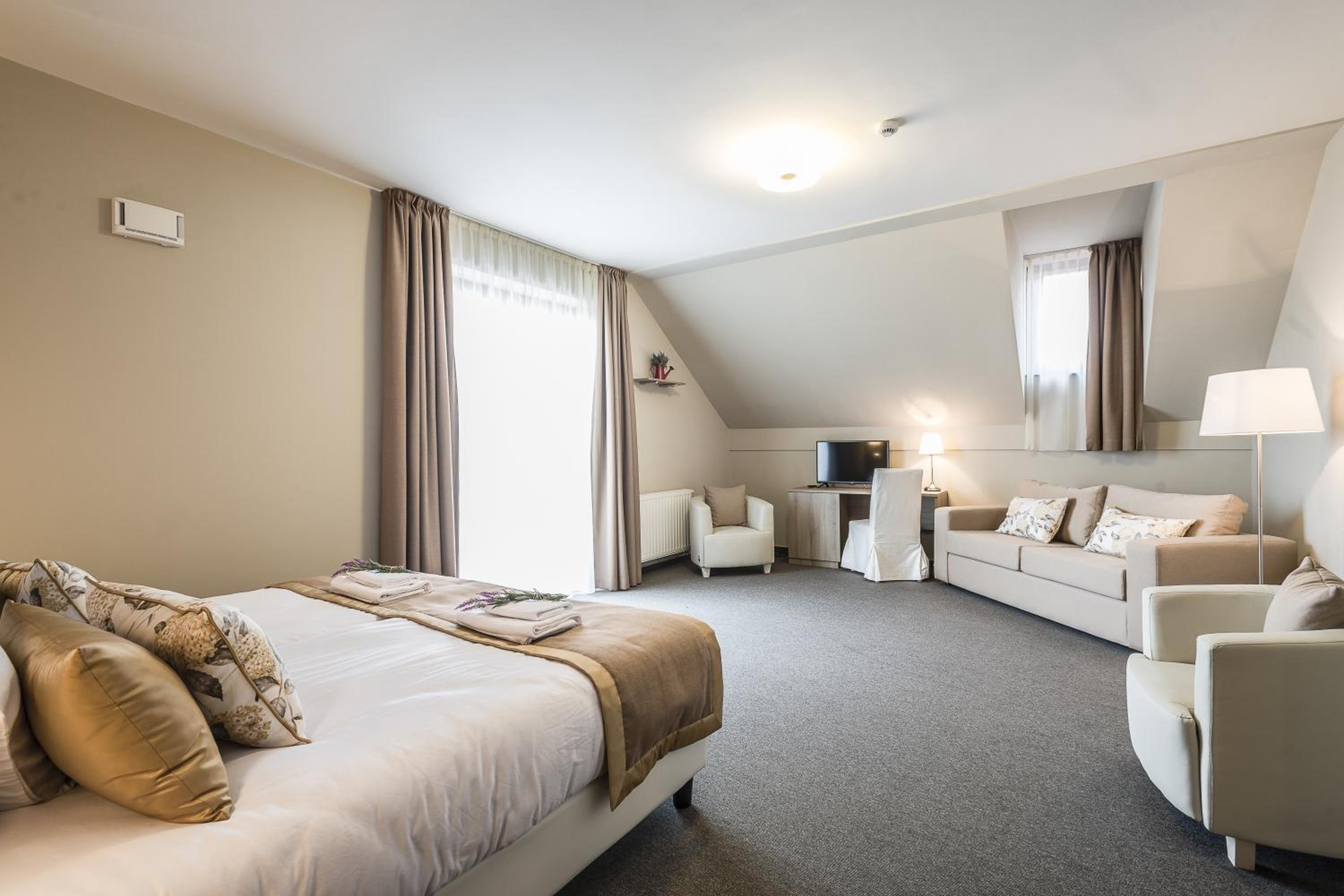 Levendula Hotel in Algyő, just 11 km from Szeged, offers a blend of comfort and elegance. Indulge in the on-site restaurant, free WiFi, and children's playground. Each air-conditioned room features a flat-screen TV, private bathroom, and some even boast a balcony.